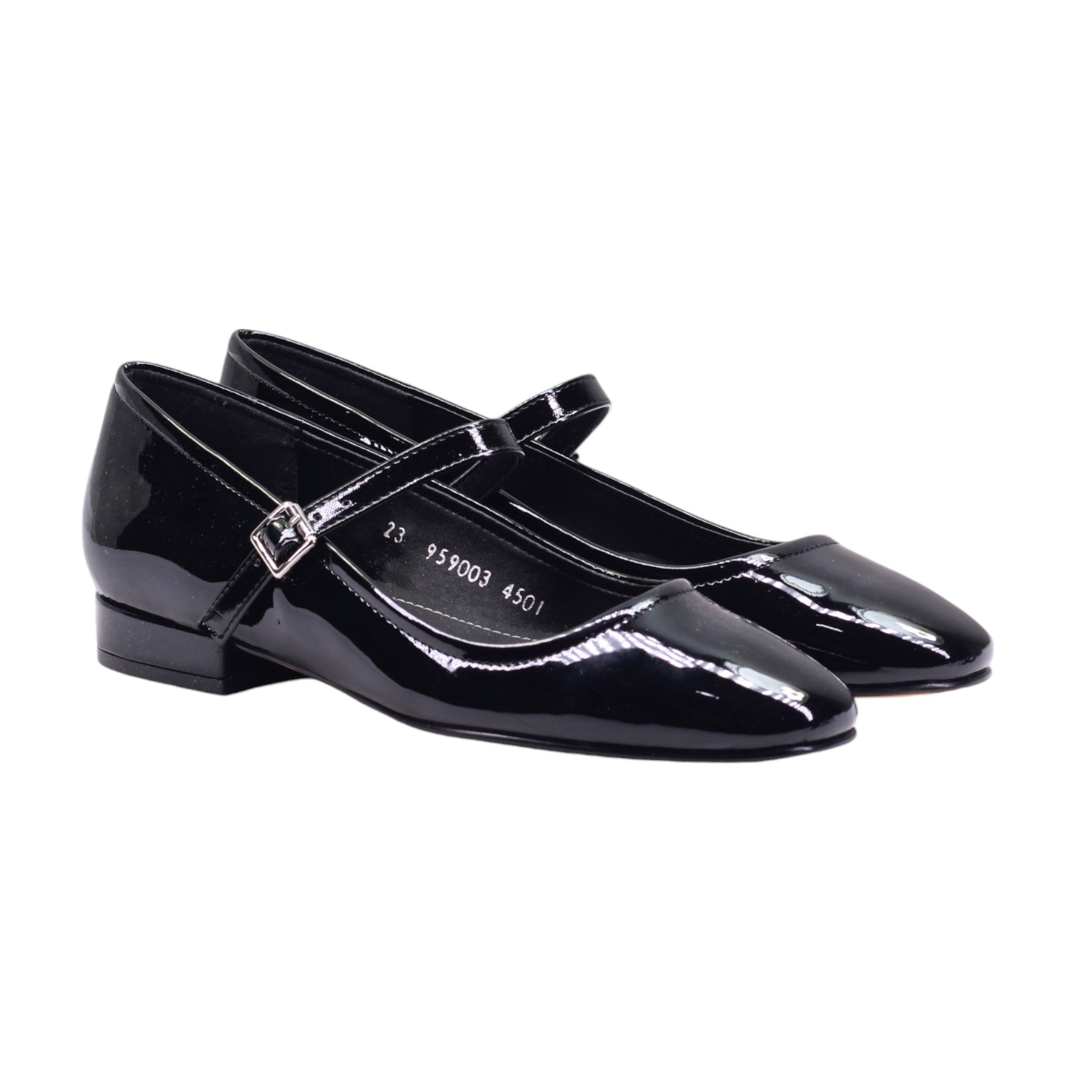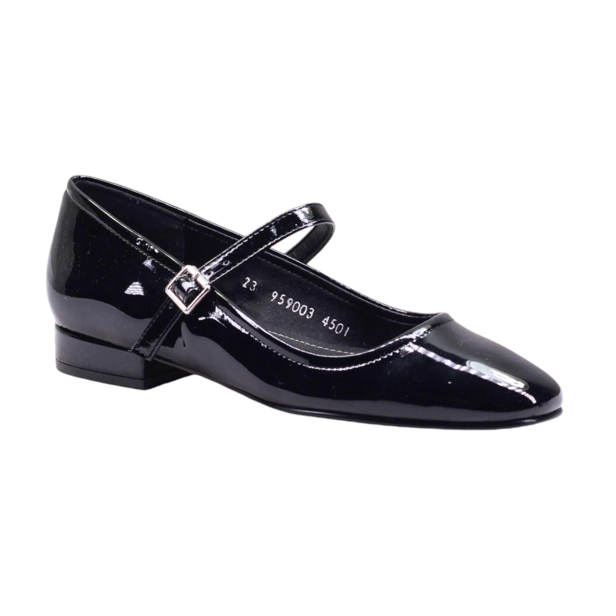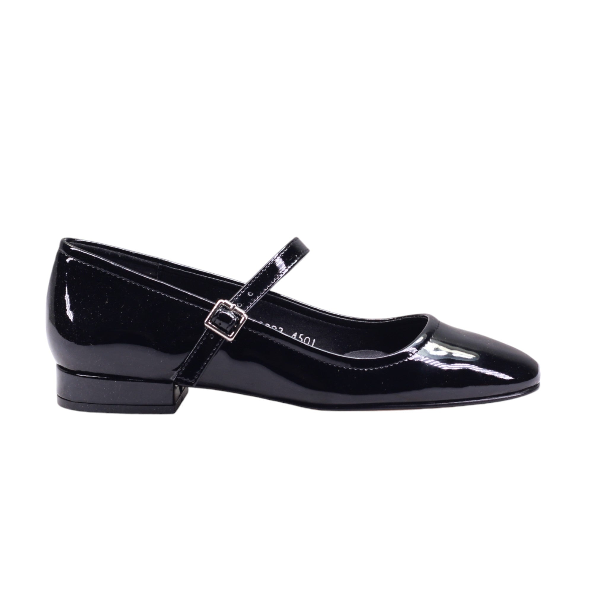 Mocasín de tacón bajo y tira ajustable con hebilla