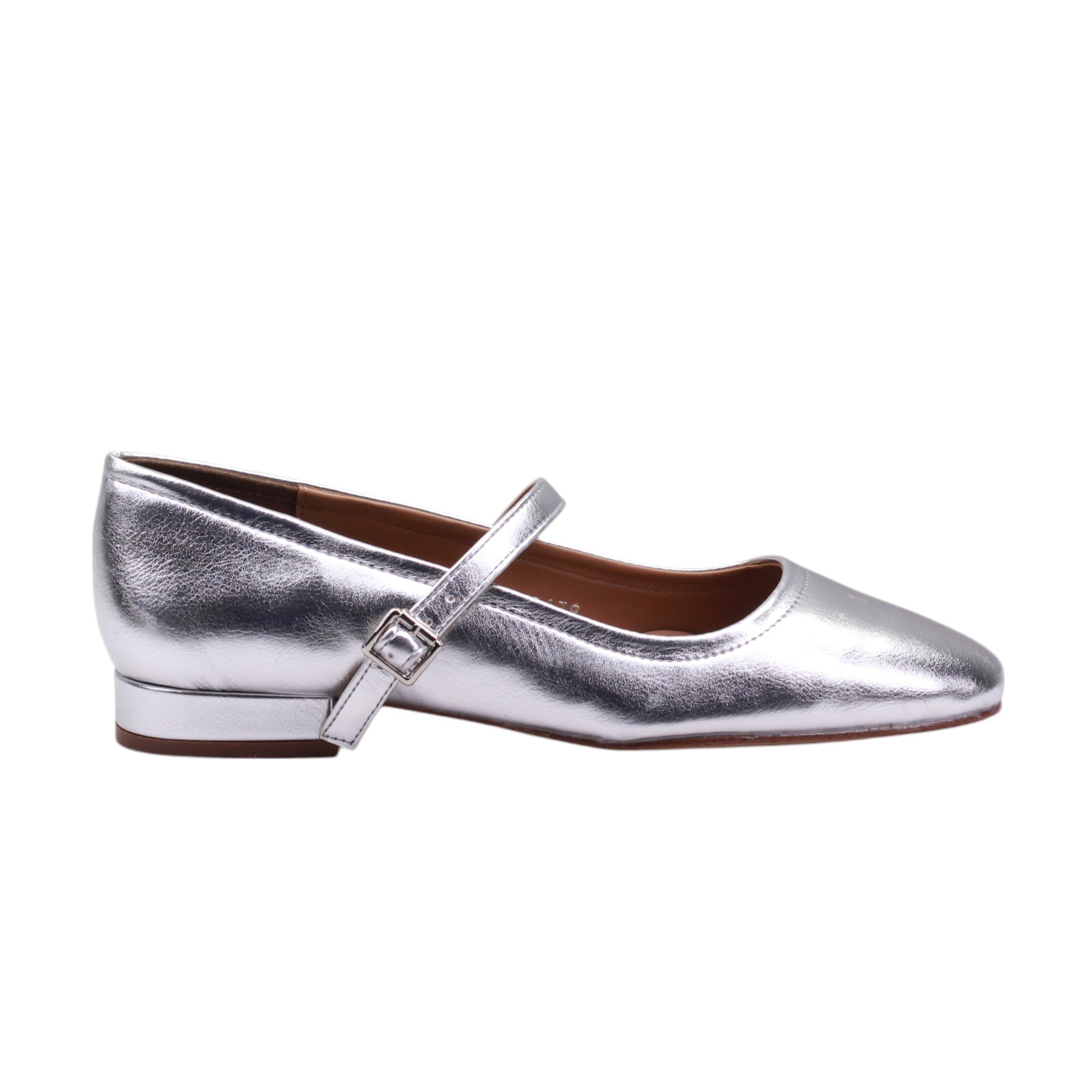Calzado para dama marca Gillio en colores plata y negro. Este modelo de tacón bajo está diseñado con una altura de 2.00 cm, perfecto para un uso cotidiano. Su acabado de piel lisa le da un toque elegante y su tira delgada con hebilla asegura un ajuste cómodo. Un calzado versátil que combina estilo y comodidad.
