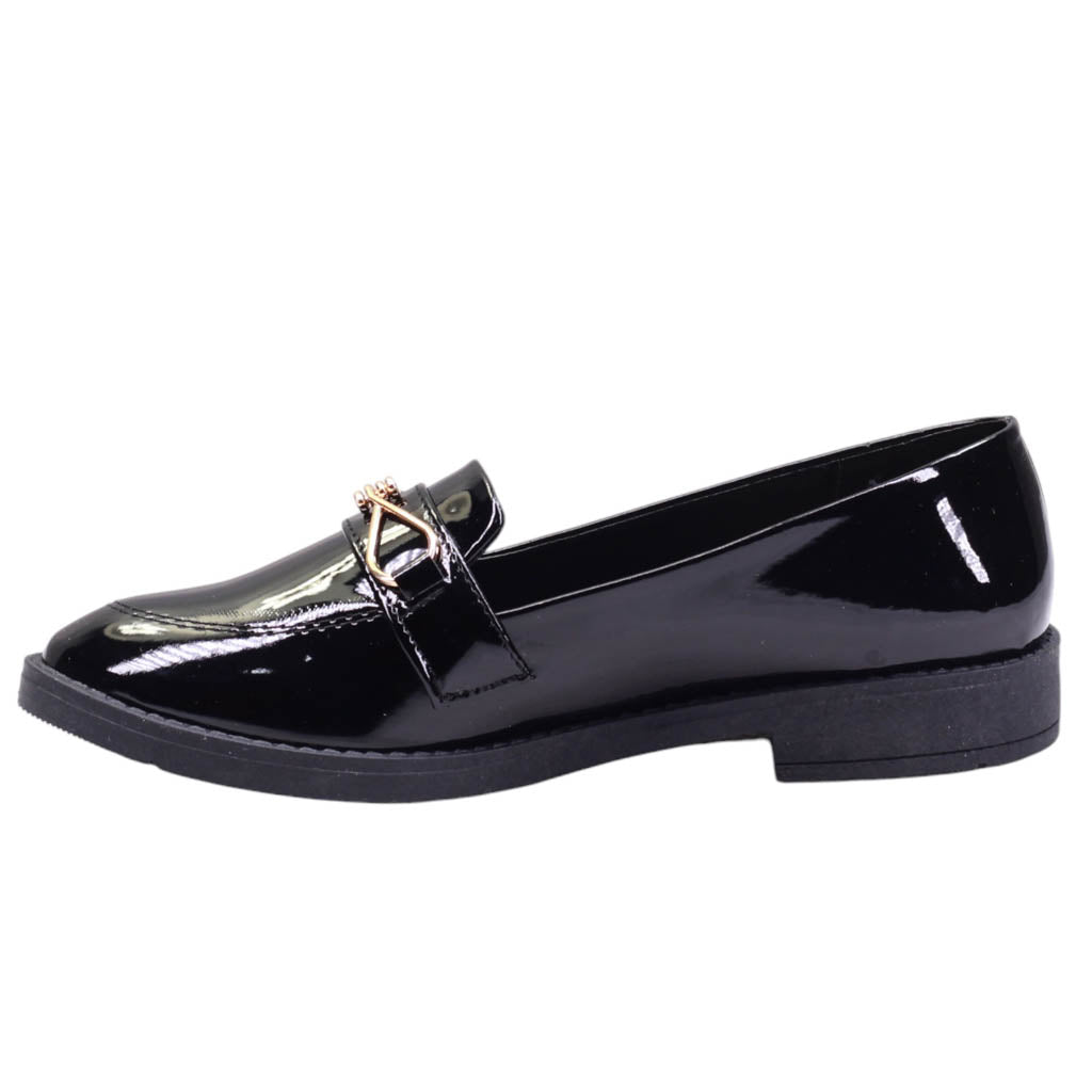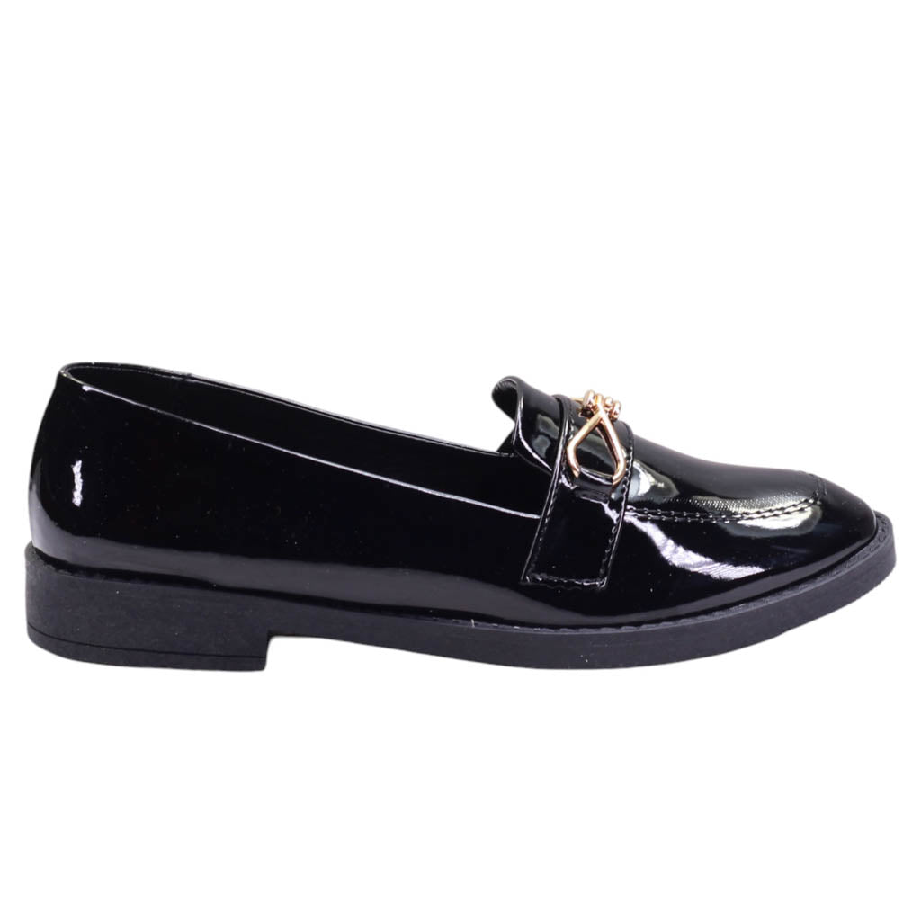 Mocasín para dama con adorno frontal y terminado en charol