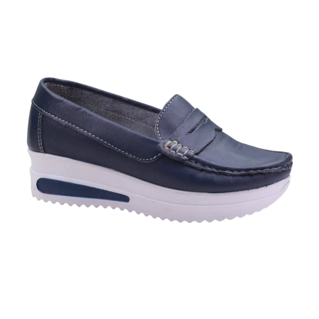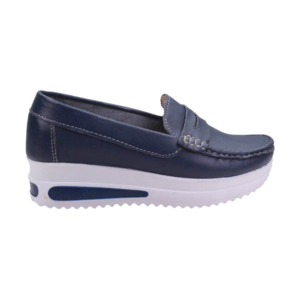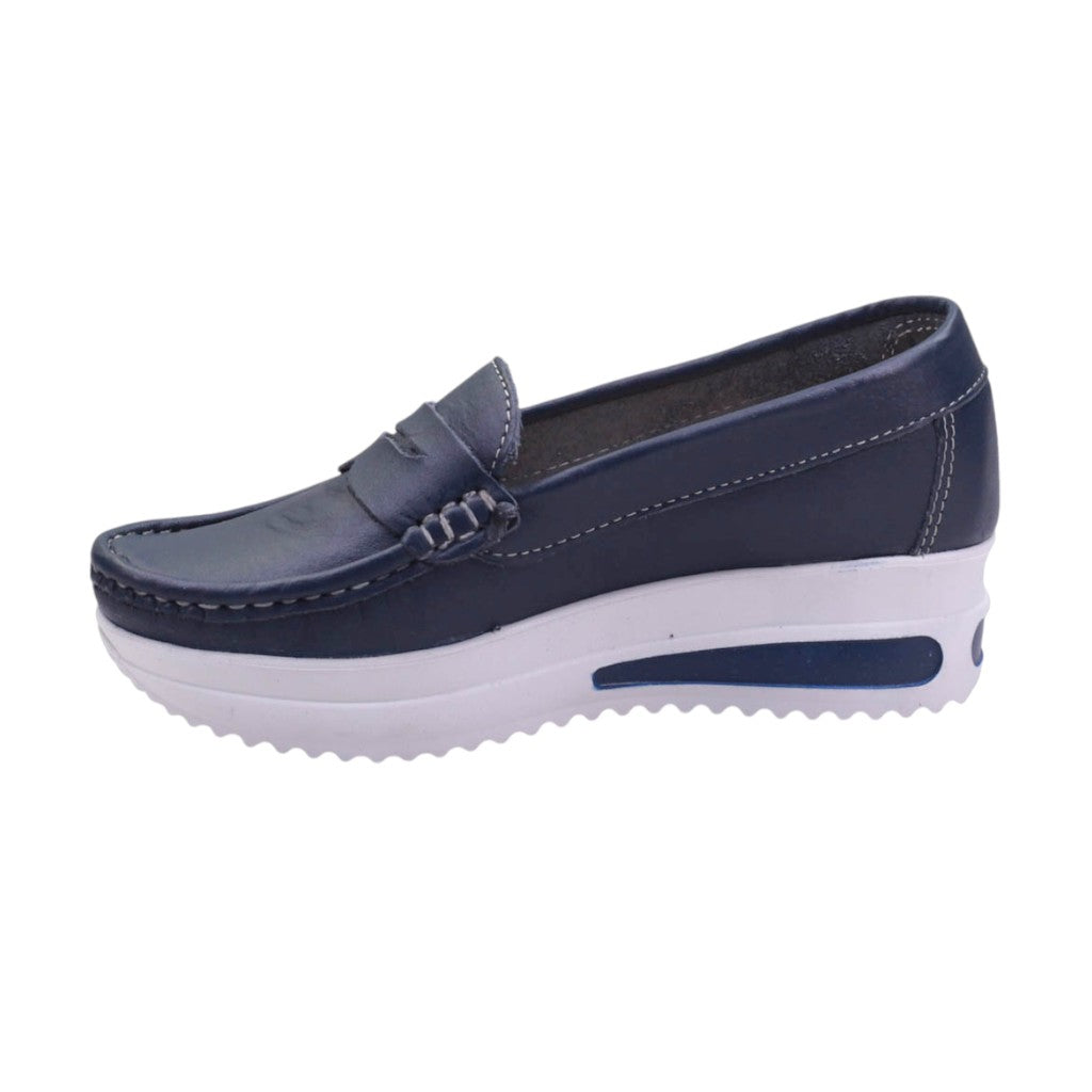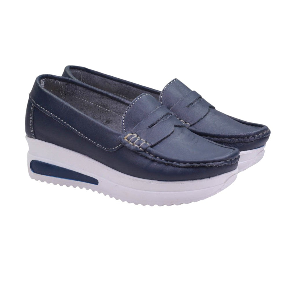 Mocasines de marca Esencia de Mujer en colores marino y oro. Estos mocasines son la elección perfecta para las mujeres que buscan un calzado que combine estilo y comodidad en cada paso.