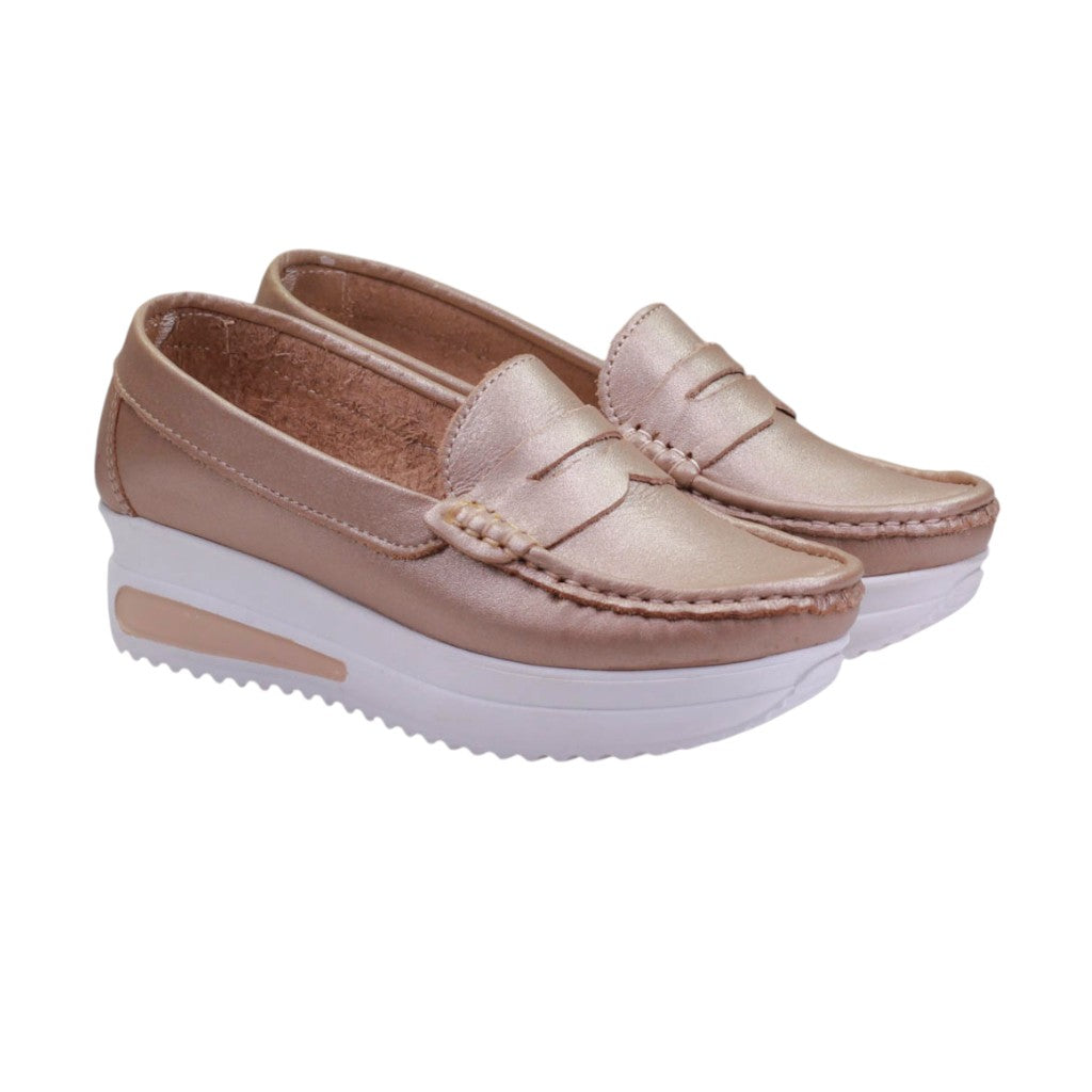 Mocasín para dama de suela blanca medio-alta