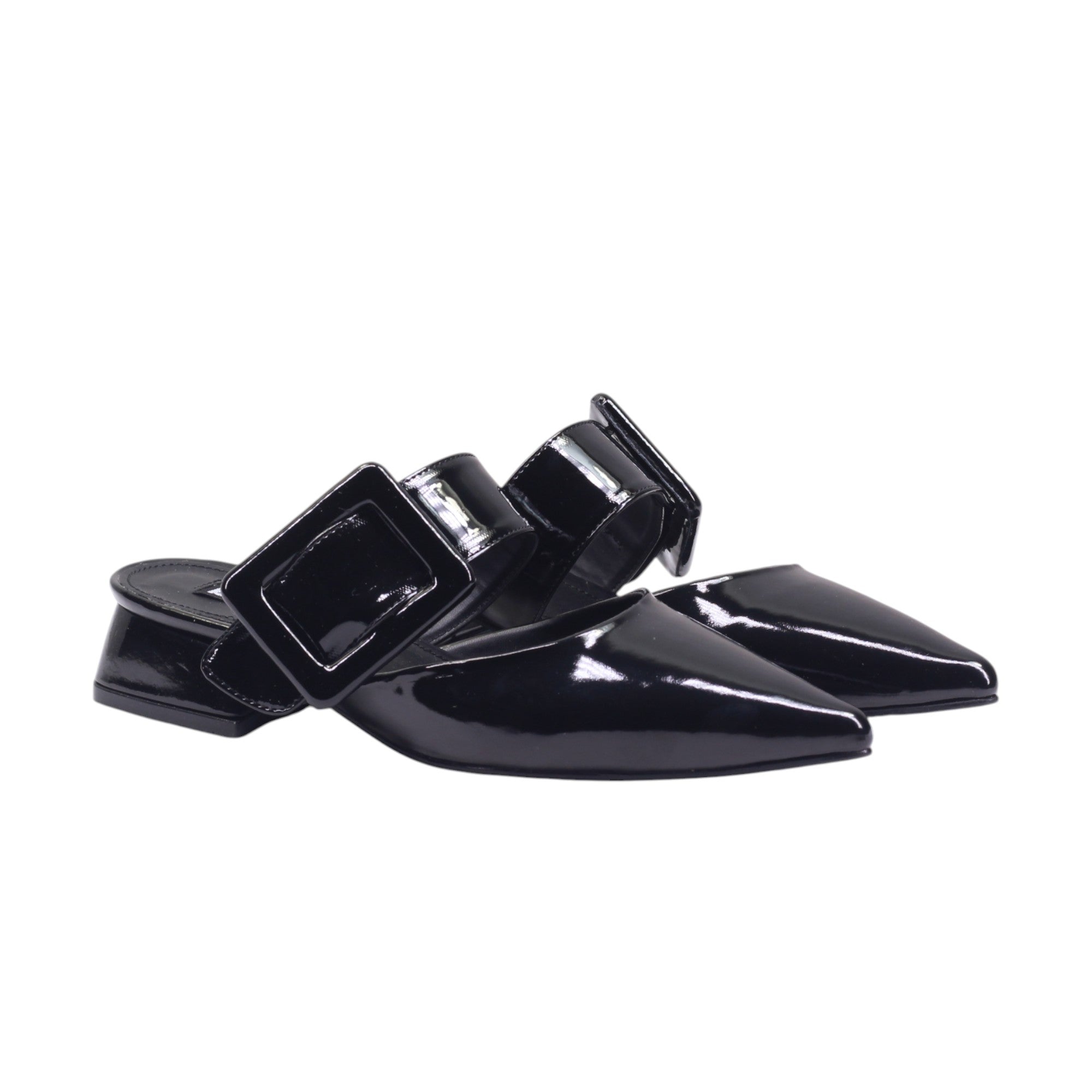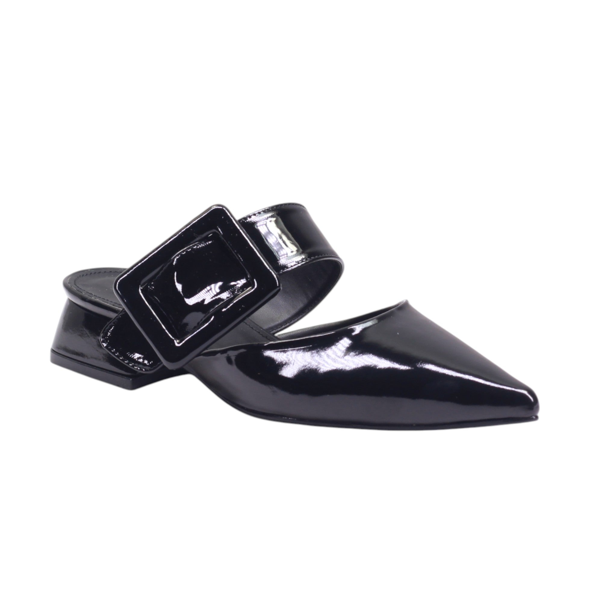 Mule destalonado con broche decorativo y acabado brillante