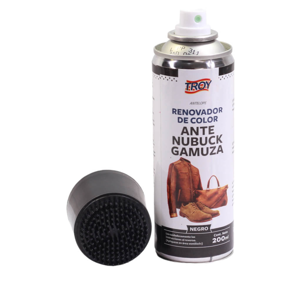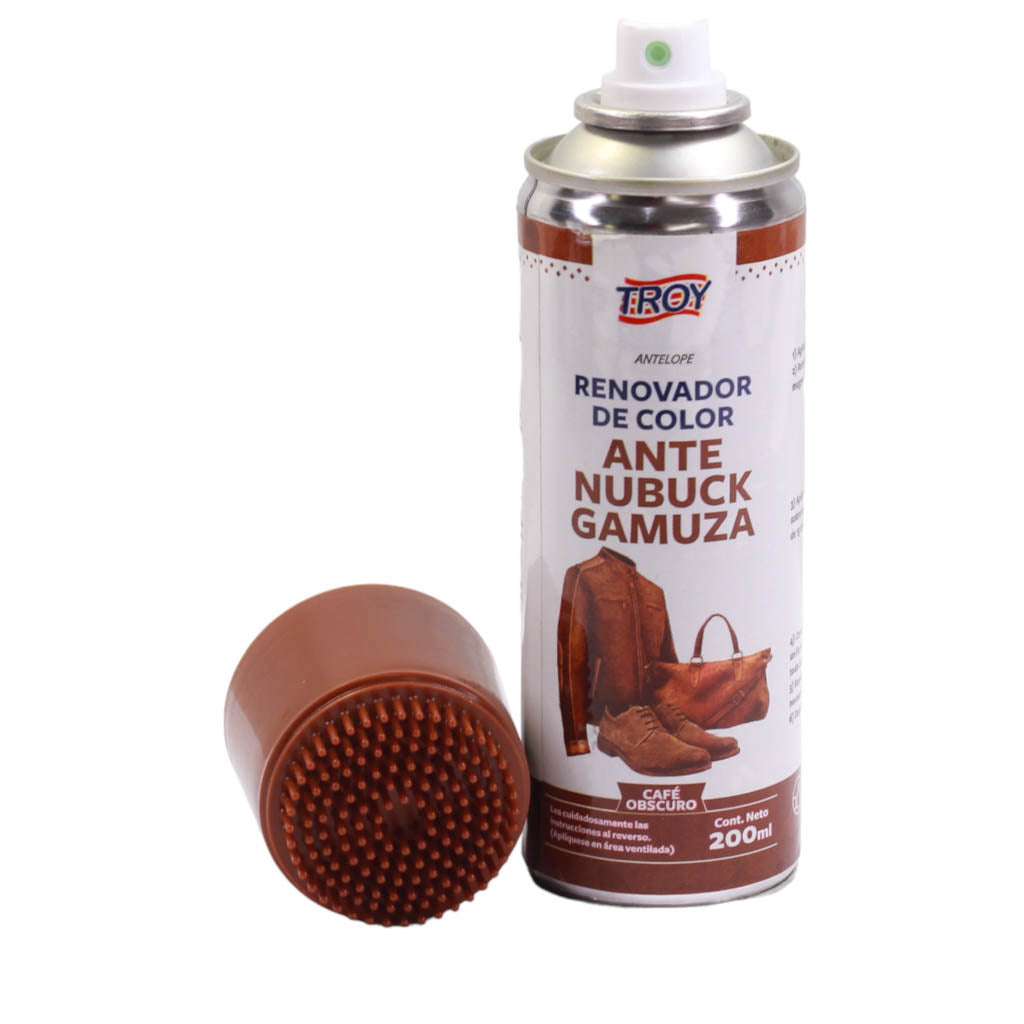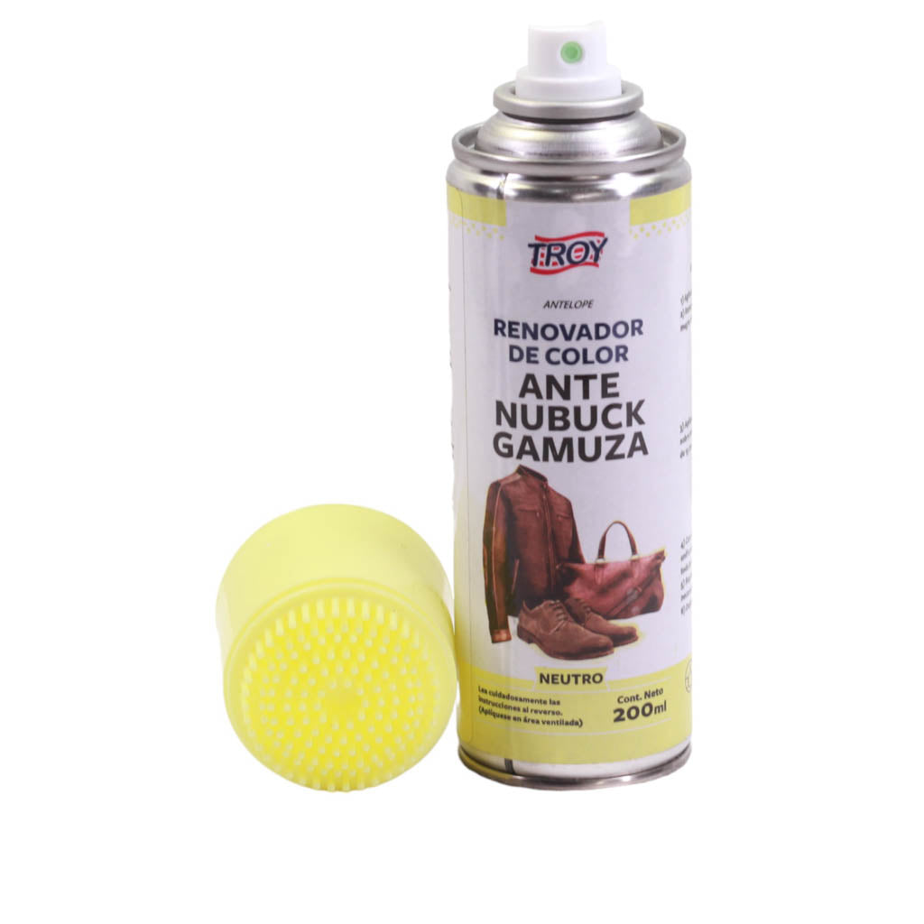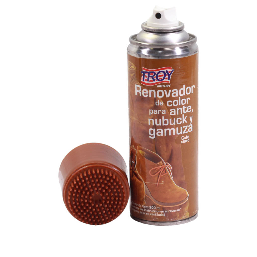 Renovador para ante, nubuck y gamuza marca Troy. Está diseñado específicamente para renovar el color original de tus prendas y calzados.