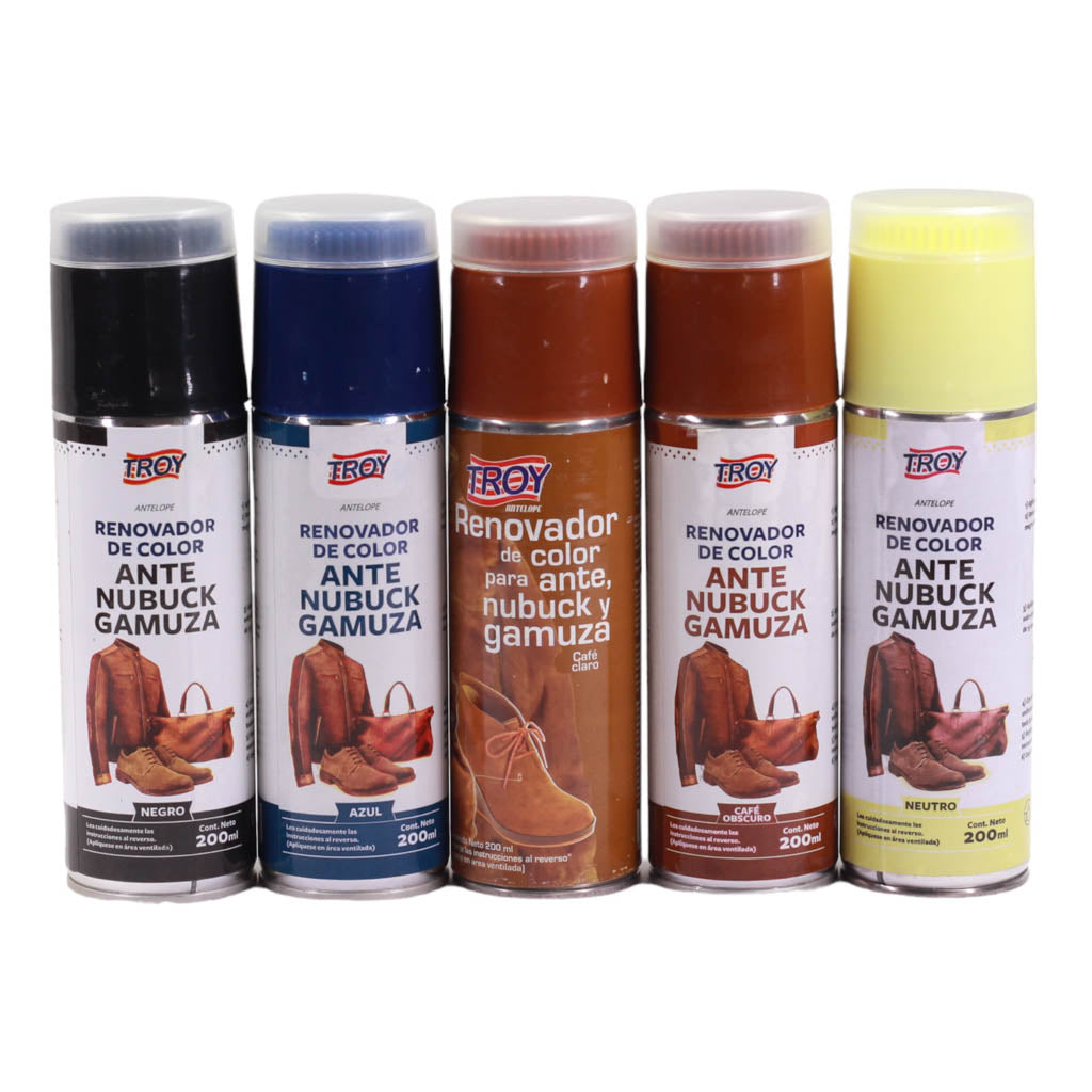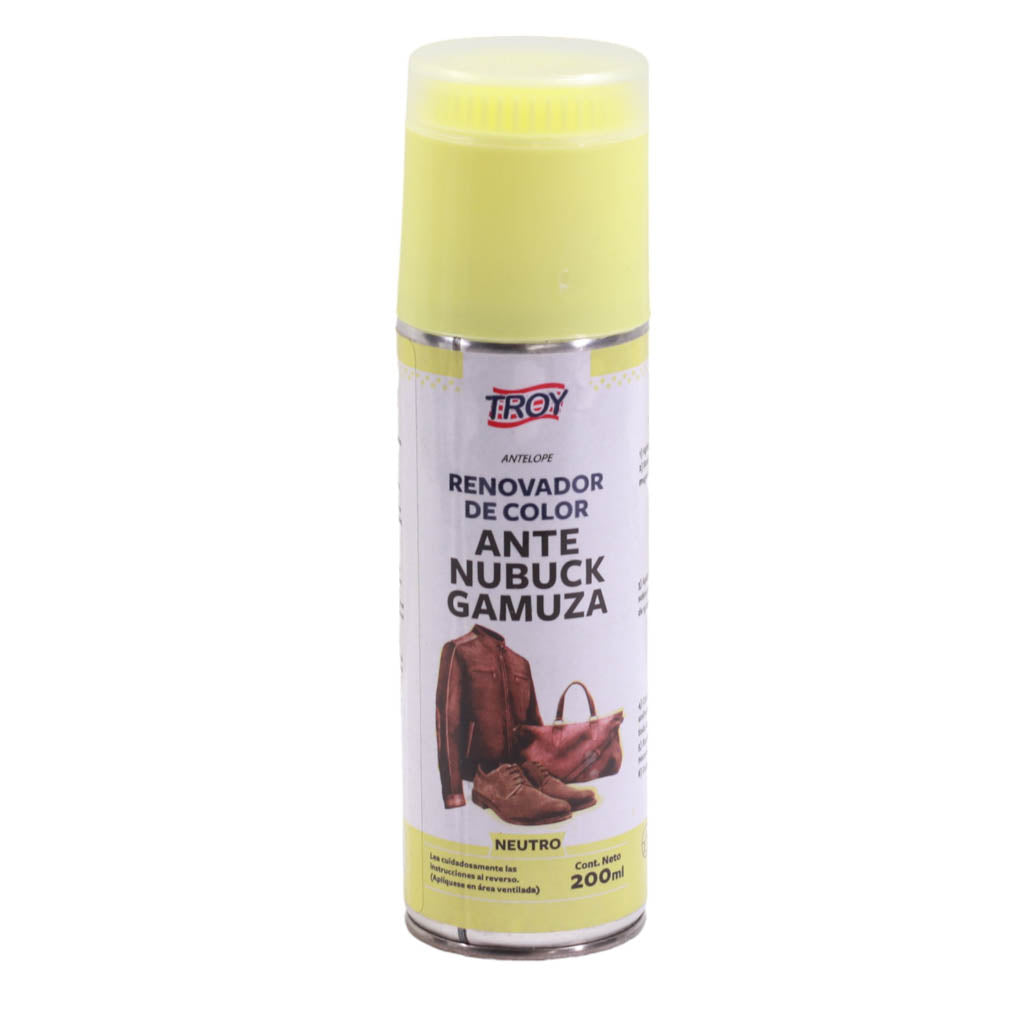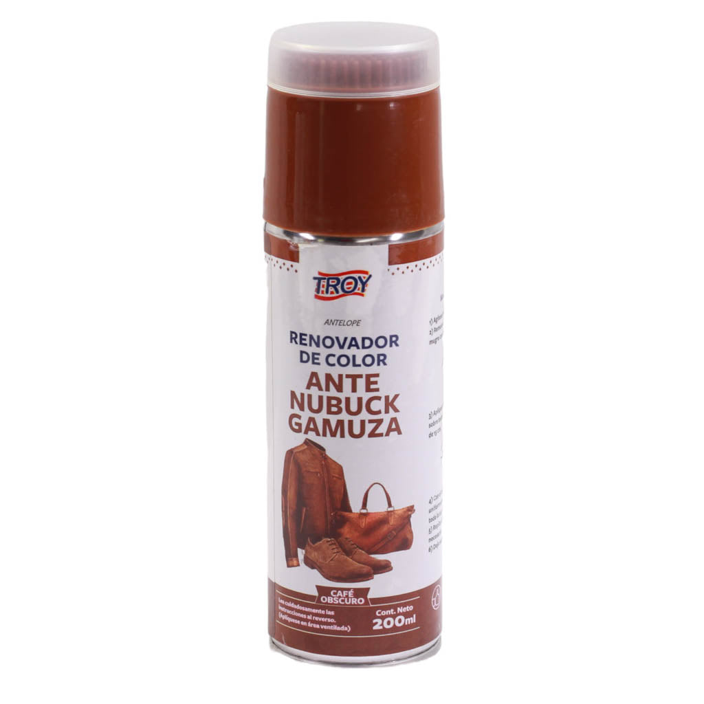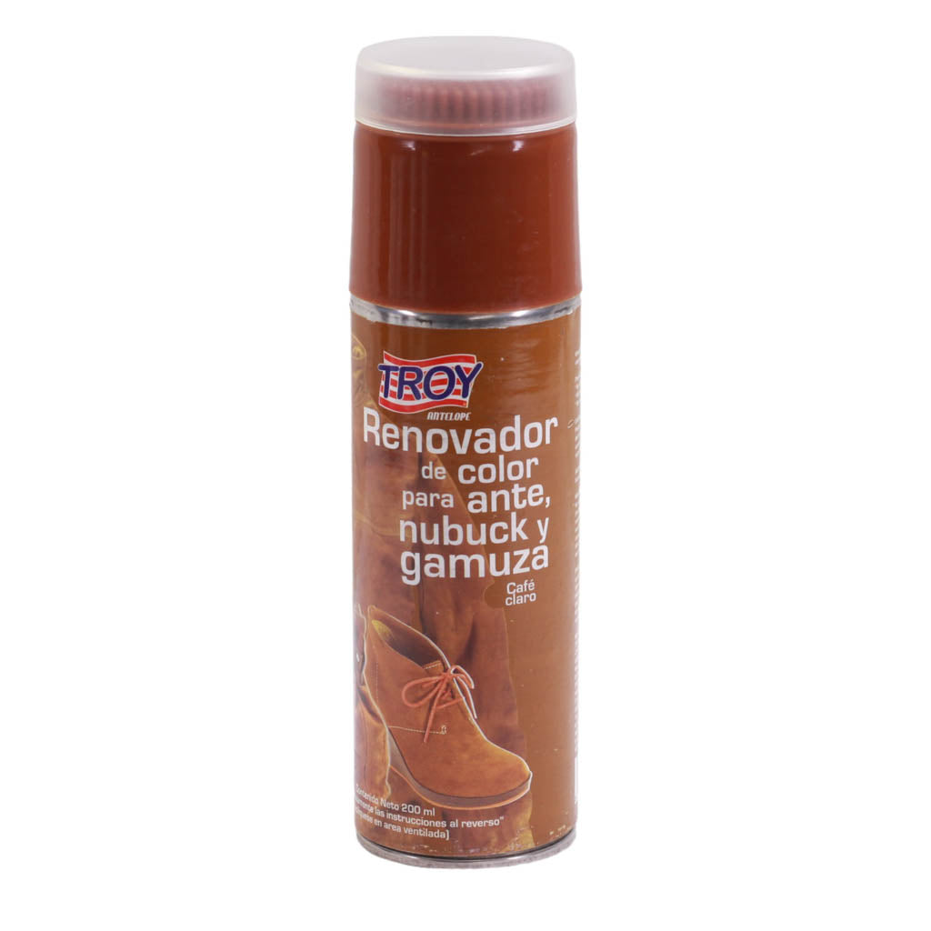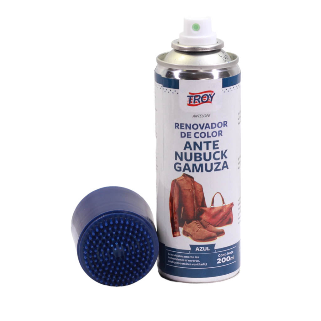 Renovador para ante, nubuck y gamuza marca Troy. Está diseñado específicamente para renovar el color original de tus prendas y calzados.