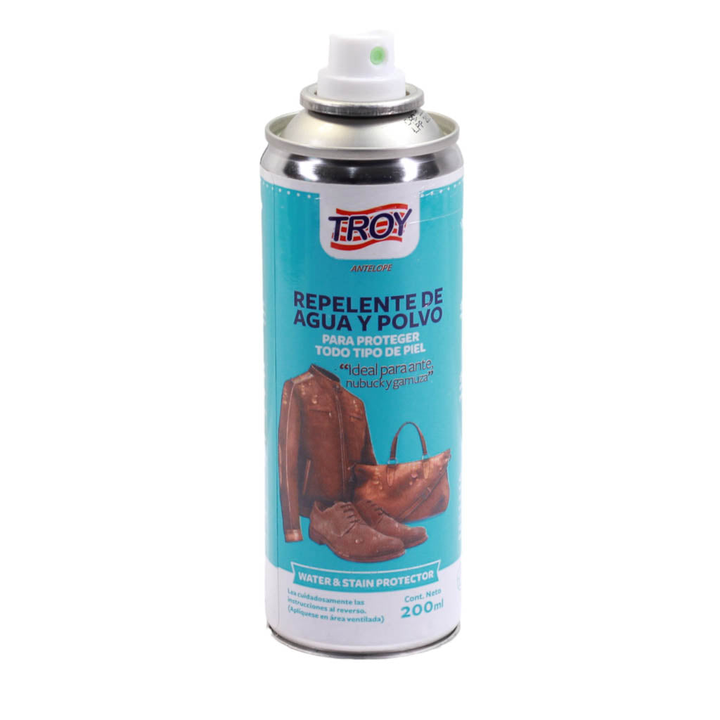 Repelente contra agua y polvo marca Troy. Protege tus zapatos, especialmente aquellos hechos de piel, gamuza o ante. Al aplicarlo, crea una capa invisible que no altera la textura ni cierra los poros naturales de la piel.