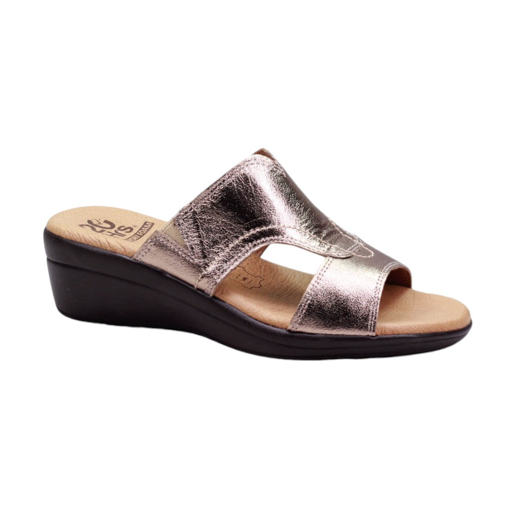 Sandalia para dama marca 20 Horas en colores seda y café. Disfruta de la comodidad y el estilo con las sandalias ideales para mujeres. Diseñadas con una plantilla acojinada para un soporte increíble y una plataforma de 5.00 cm para mayor altura y descanso en tus pies.