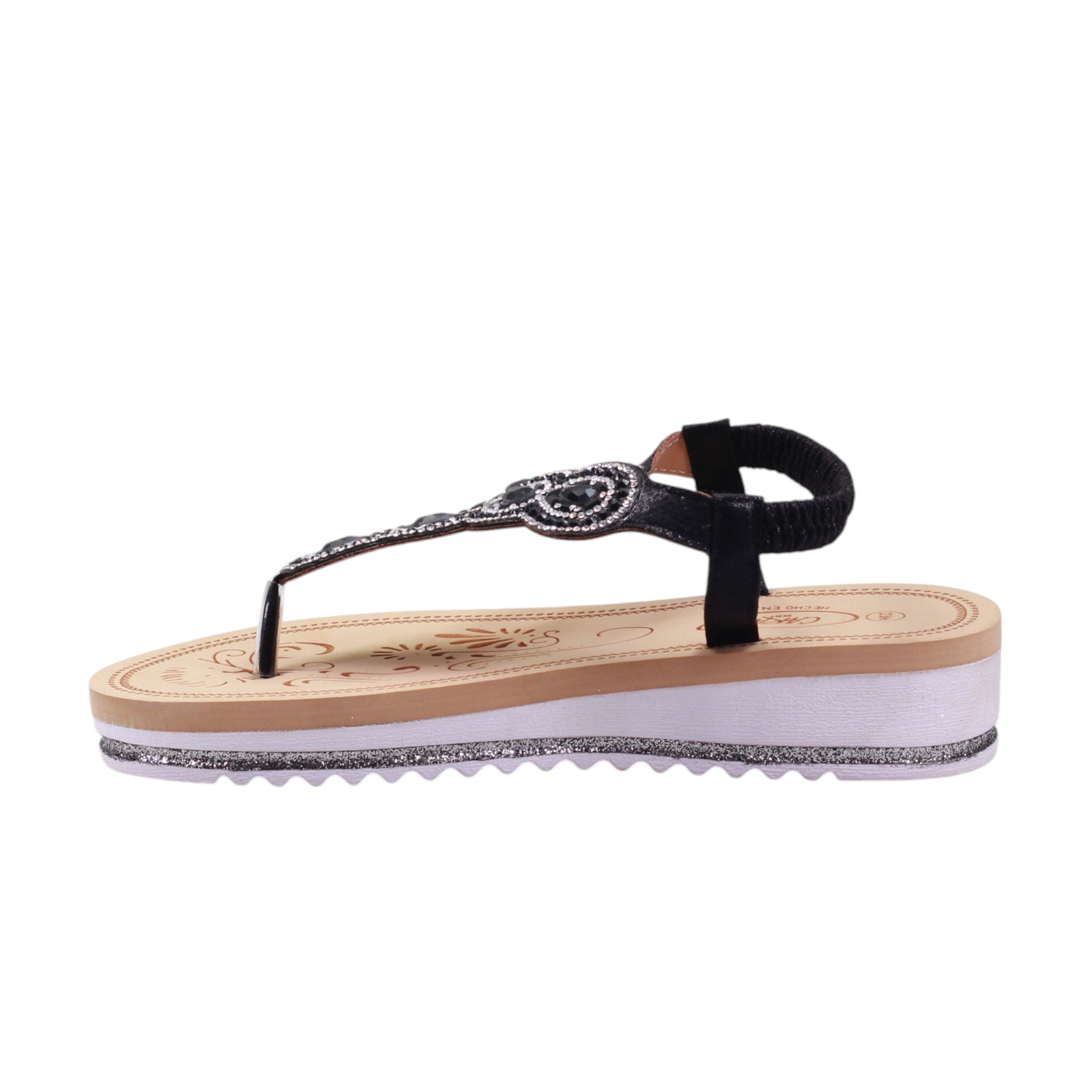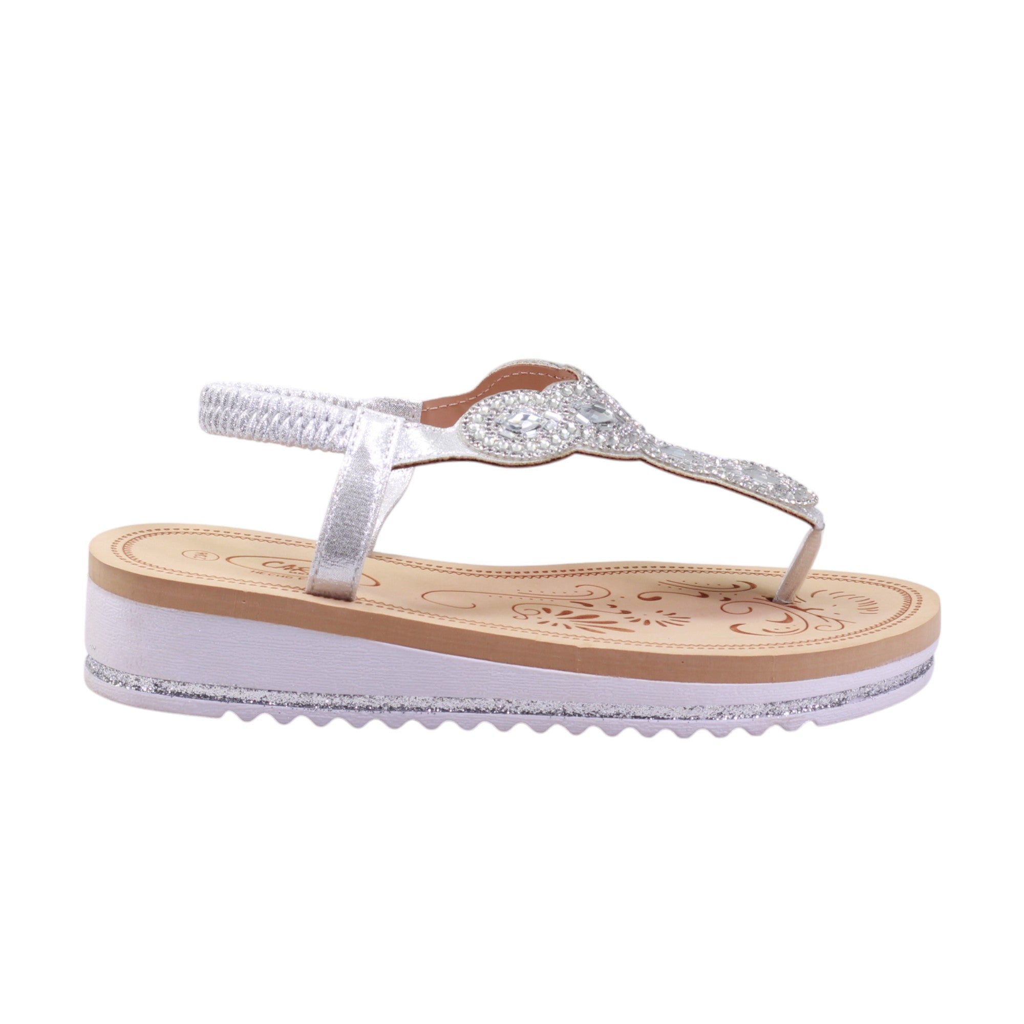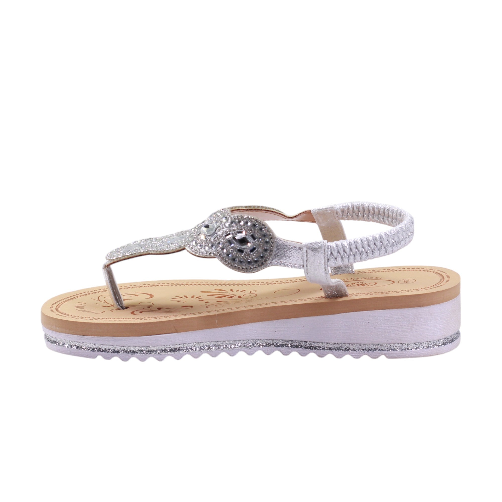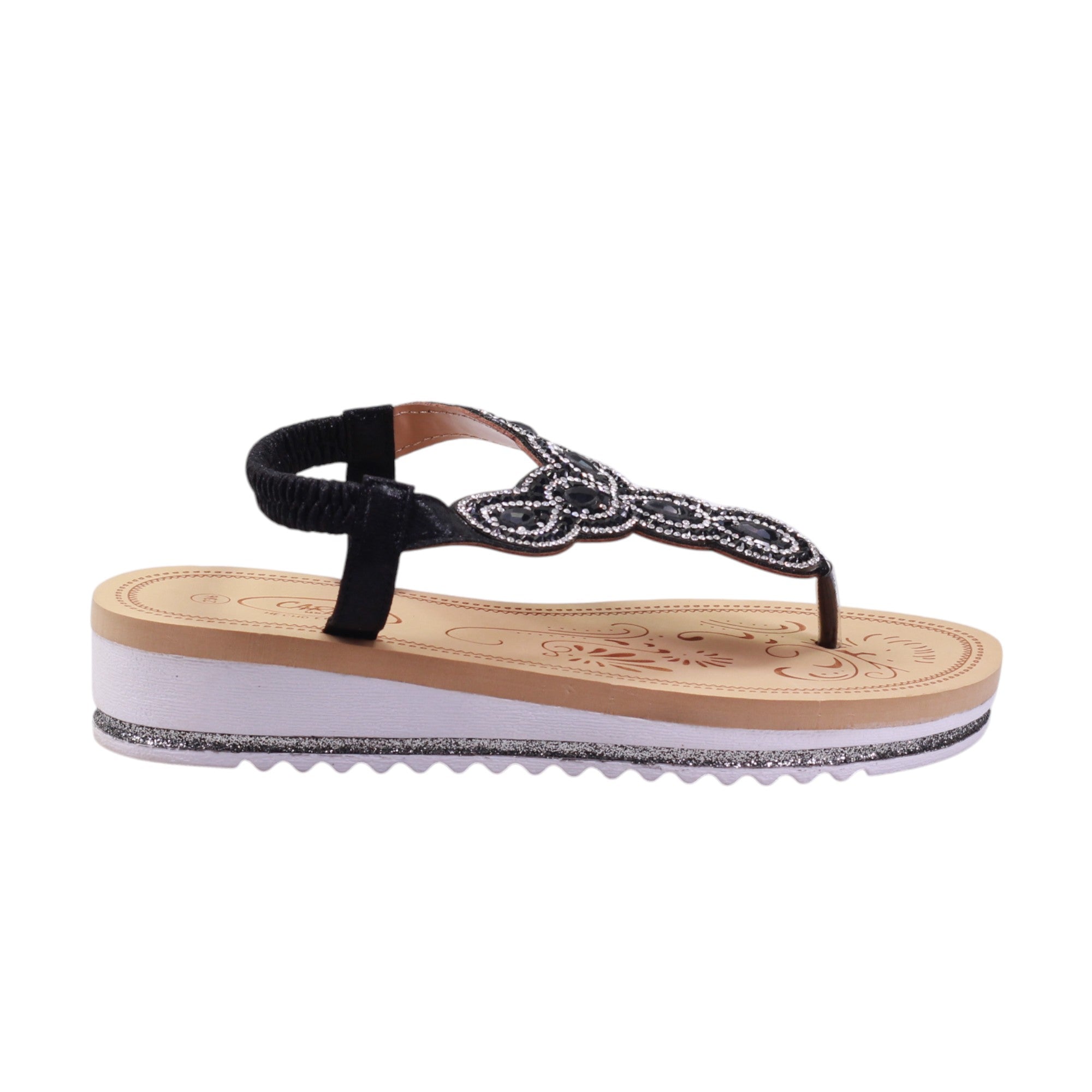 Sandalia casual con pedrería artificial y tira elástica trasera