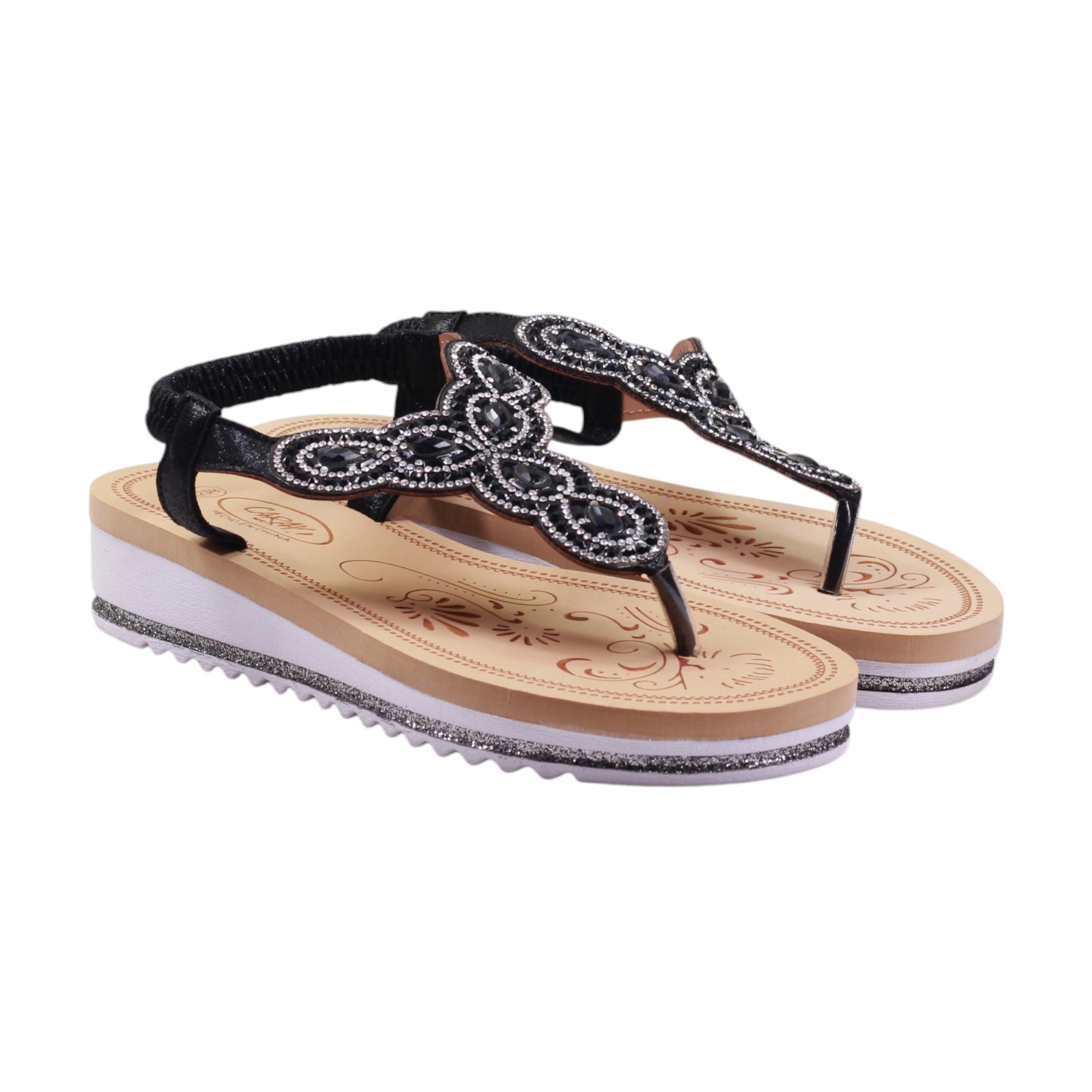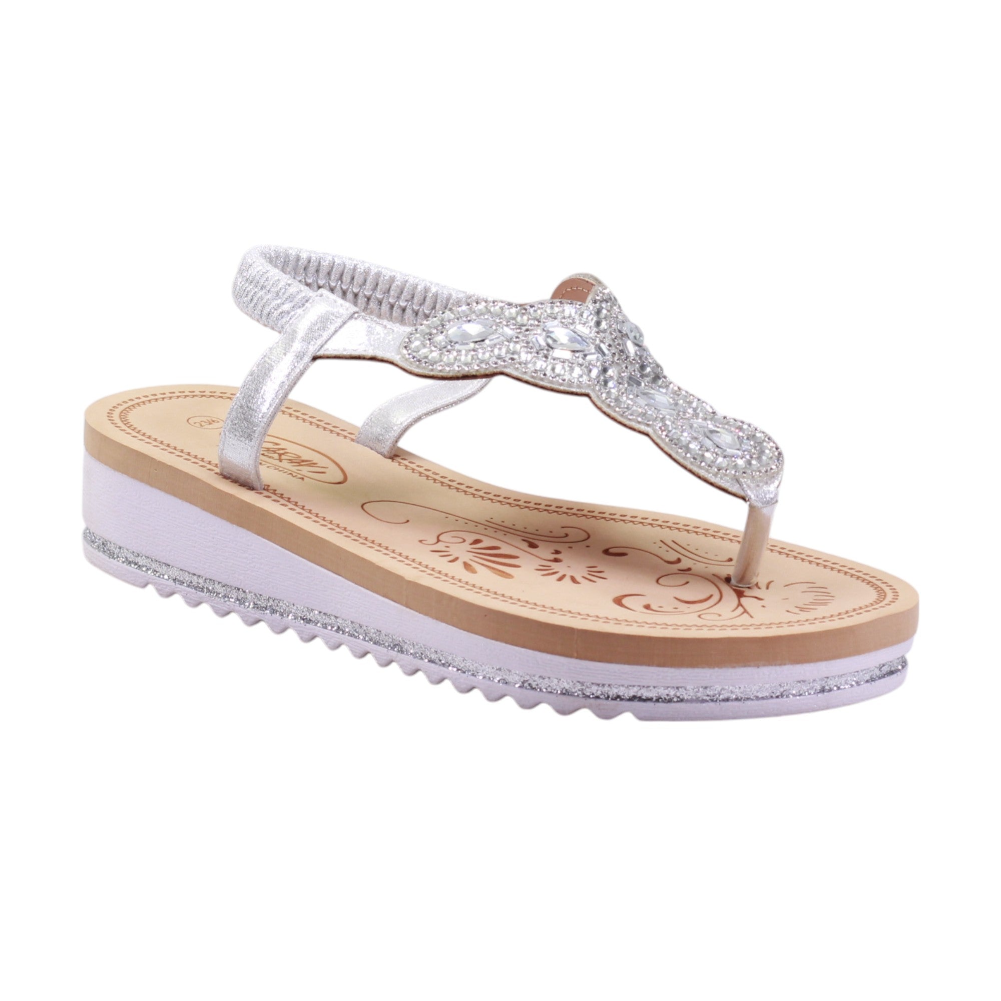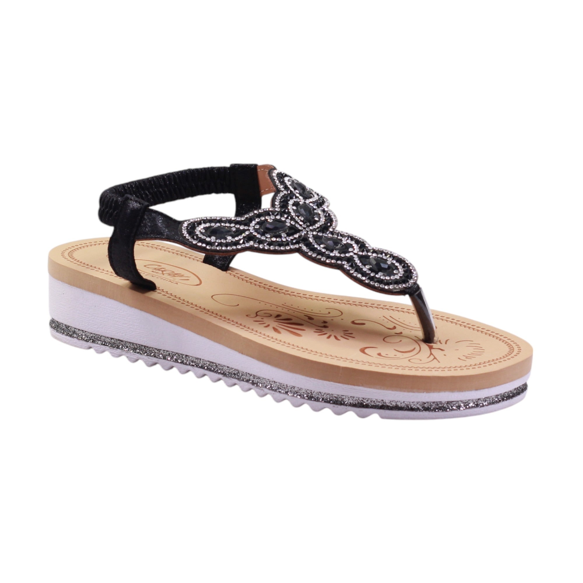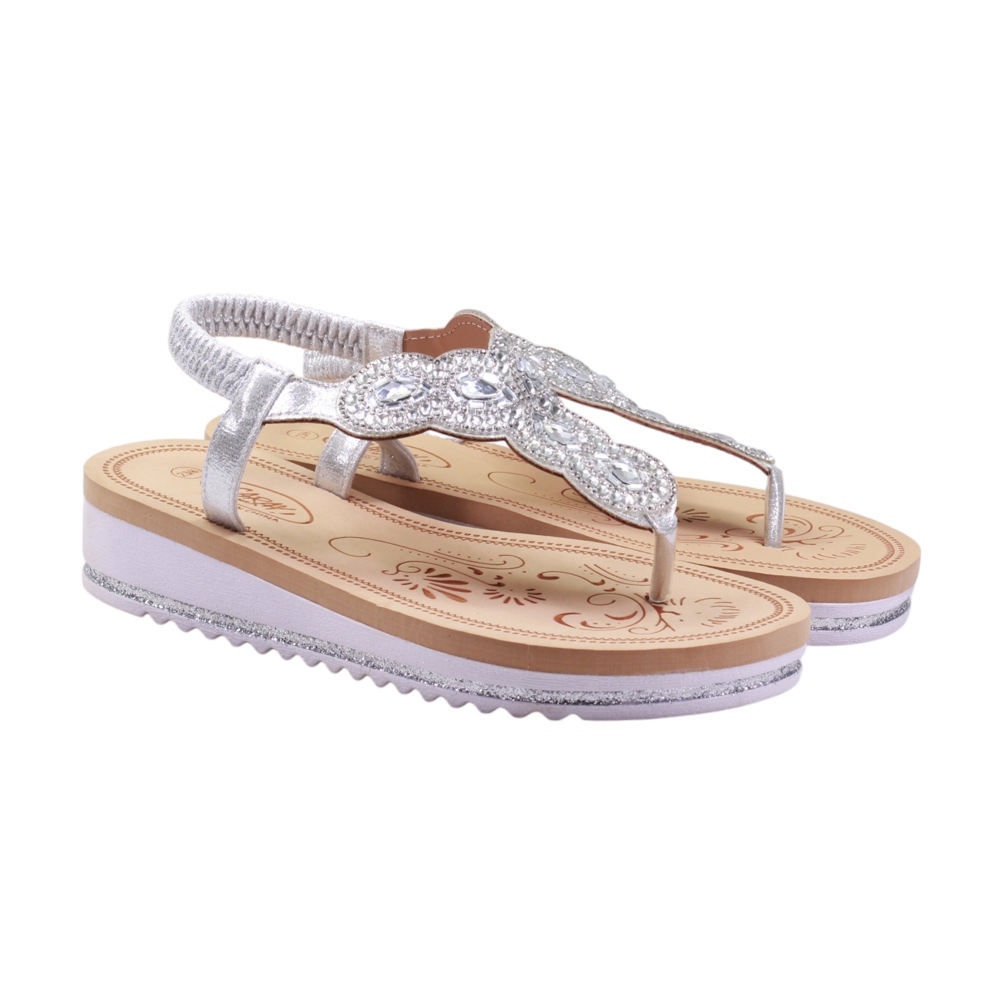 Sandalia casual con pedrería artificial y tira elástica trasera
