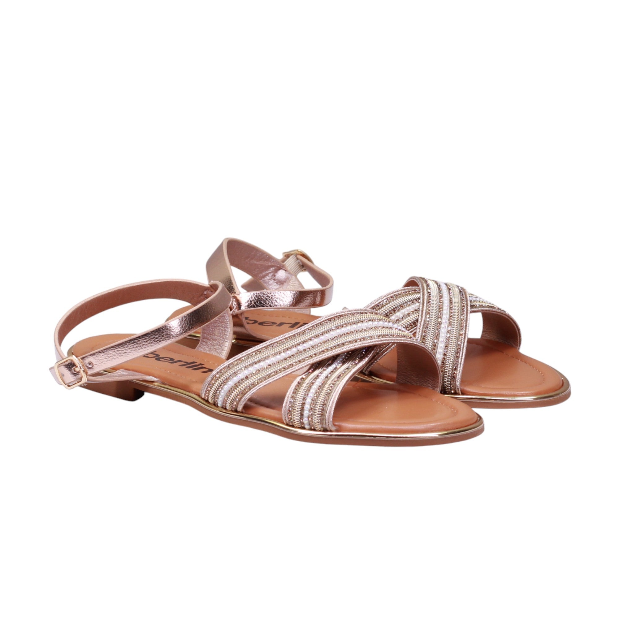 Sandalia casual de tiras cruzadas con pedrería artificial