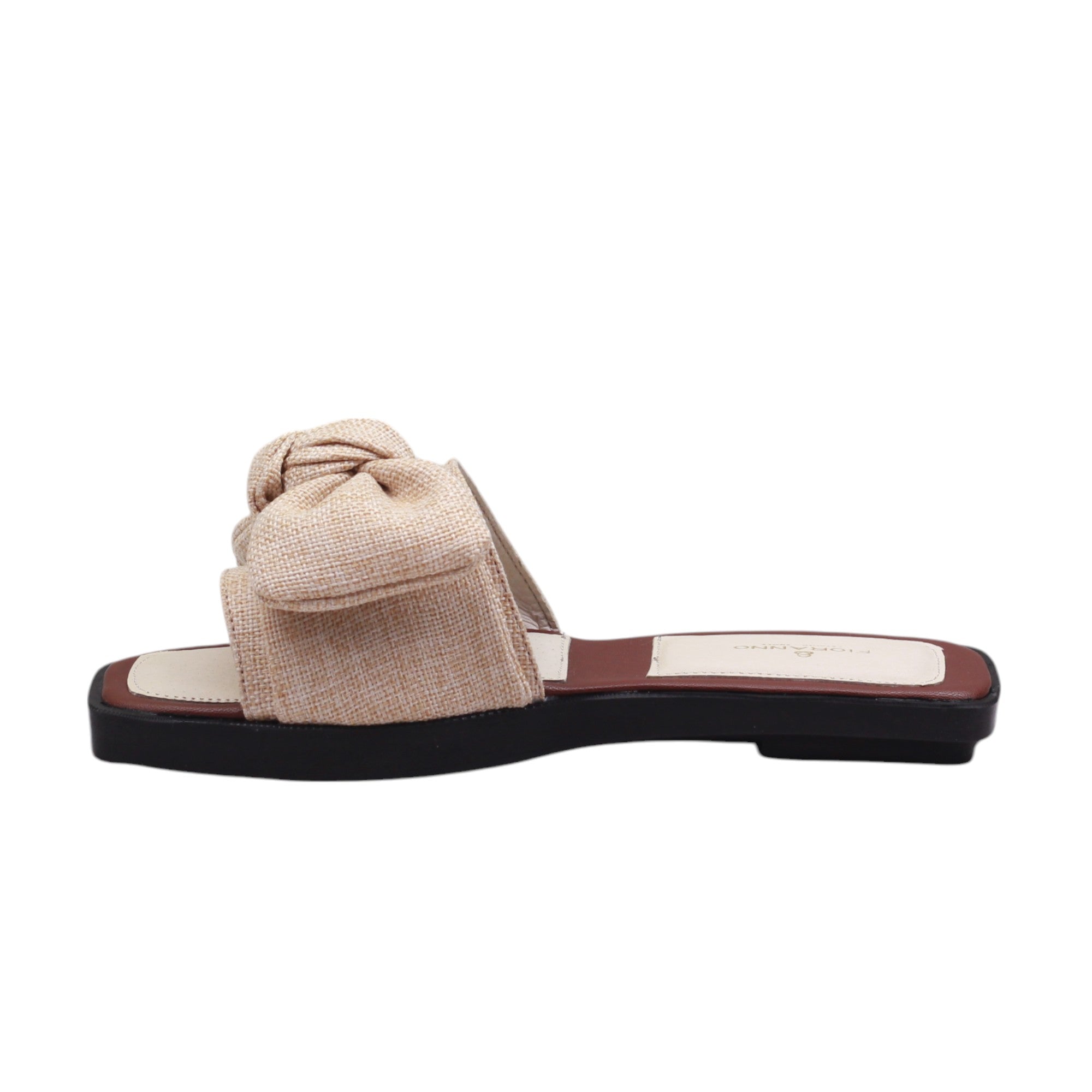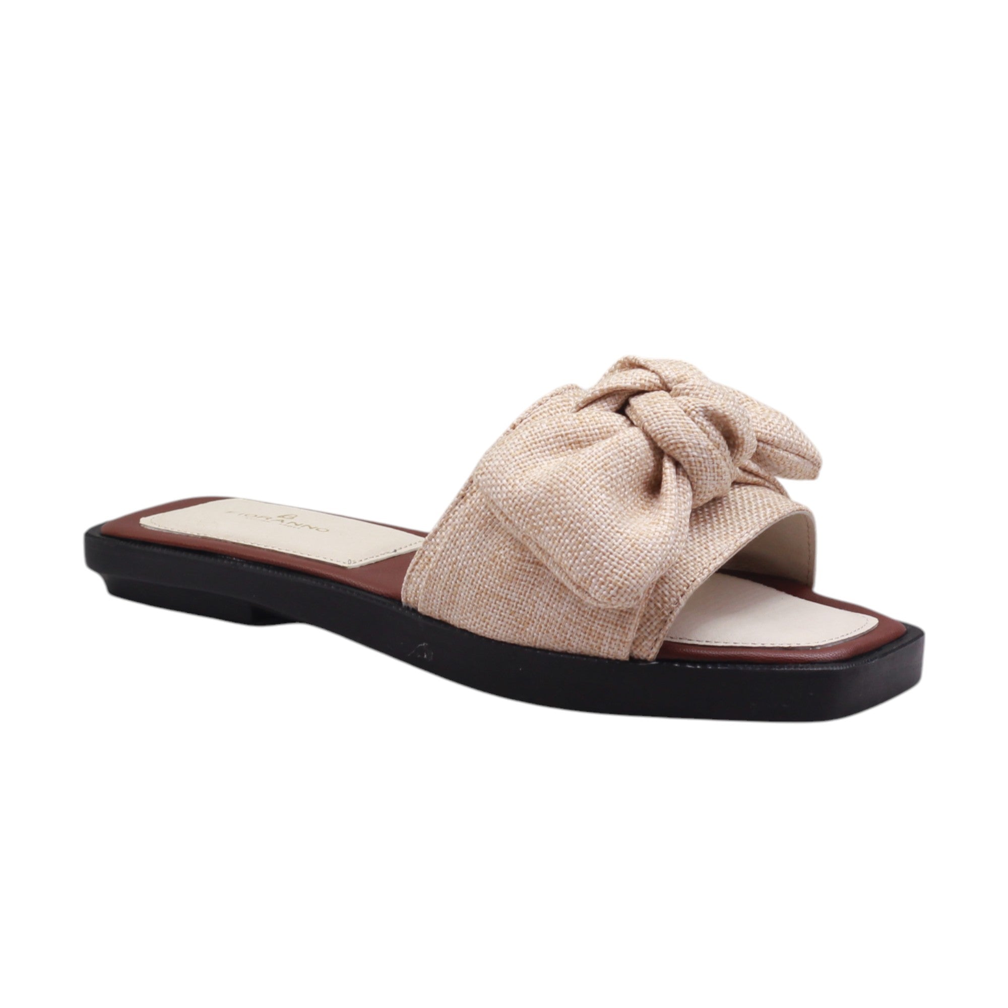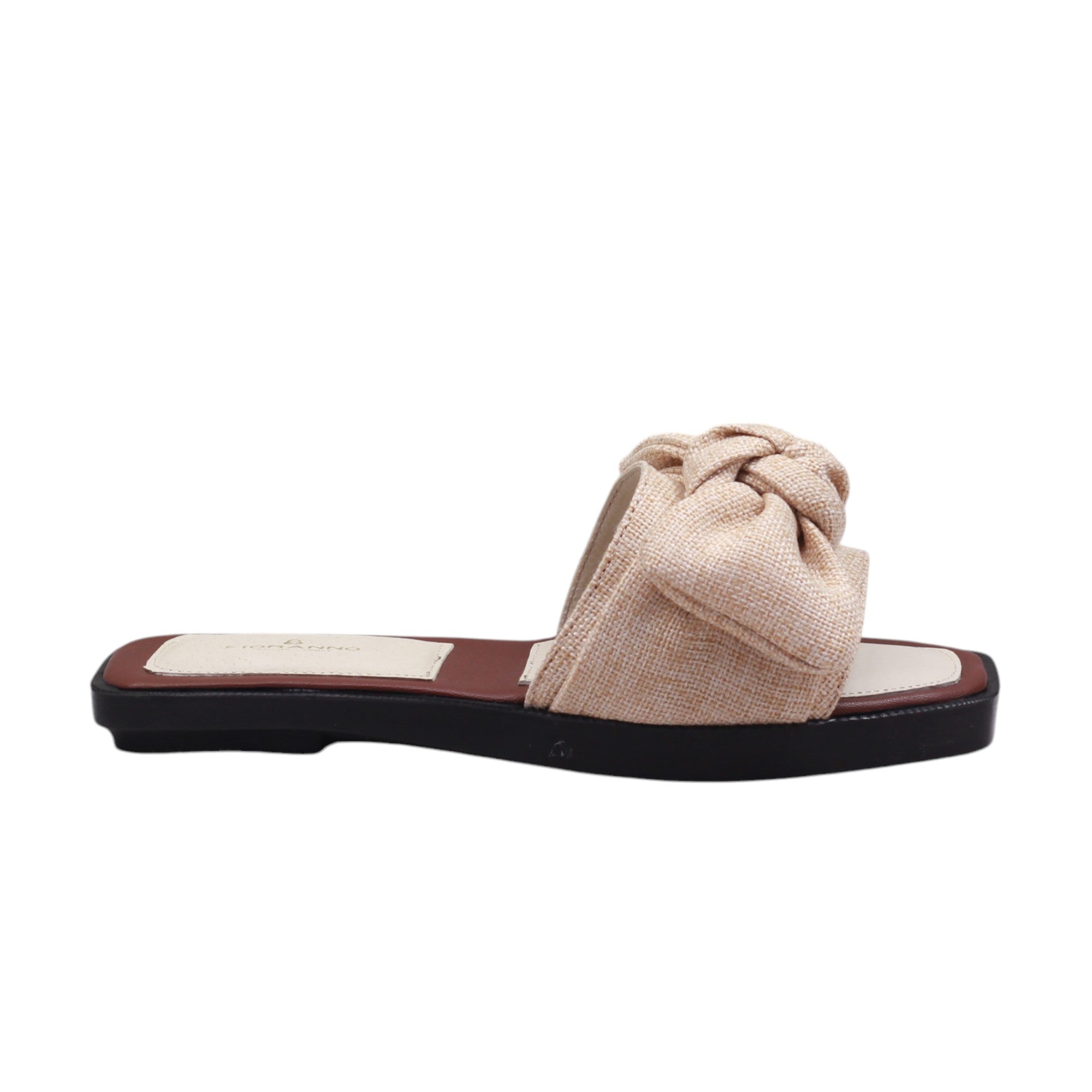 Sandalia para dama marca Fioranno en color natural. Este modelo cuenta con terminado en textil adornado con moño grande y tacón bajo. Además, su plantilla brinda una sensación de comodidad al caminar.