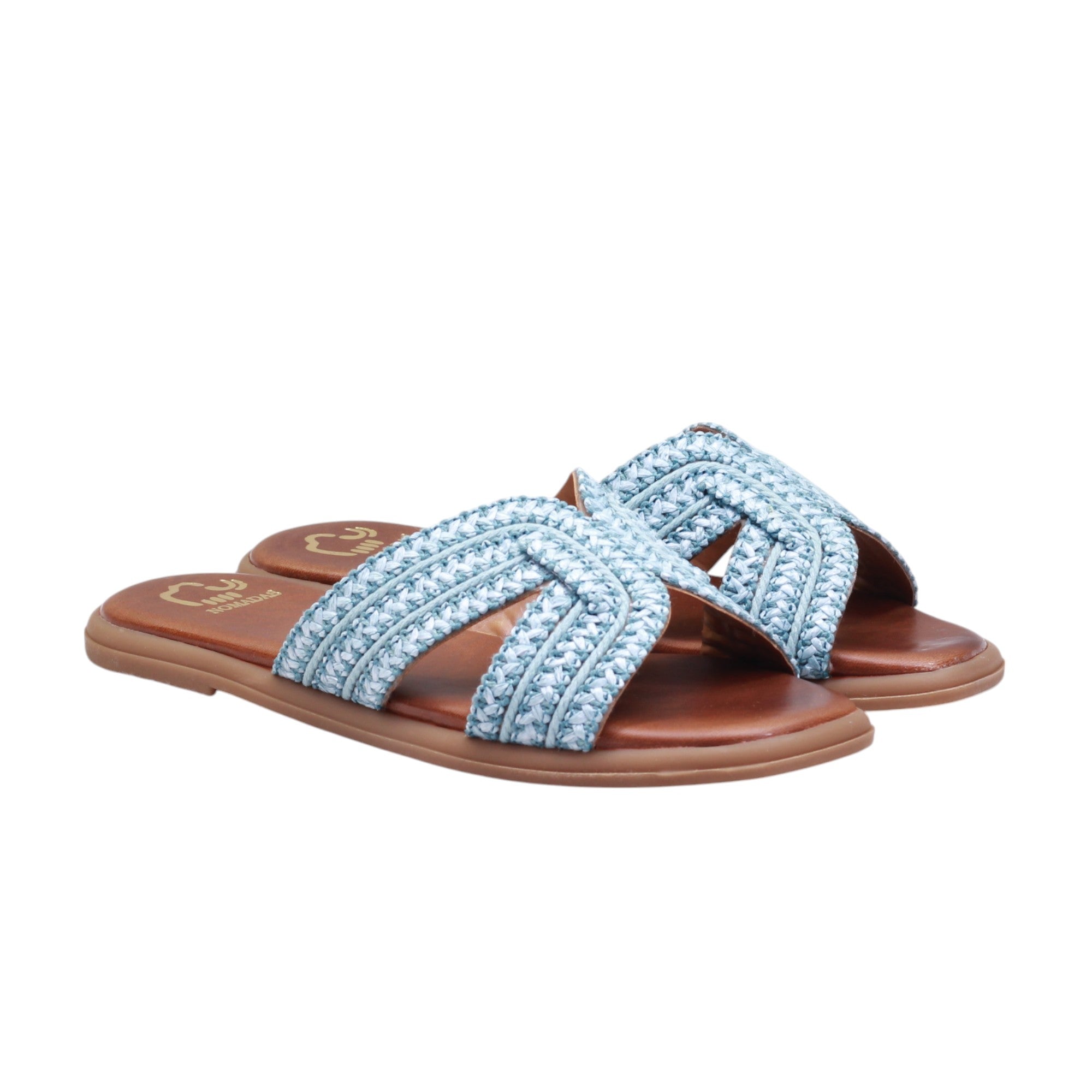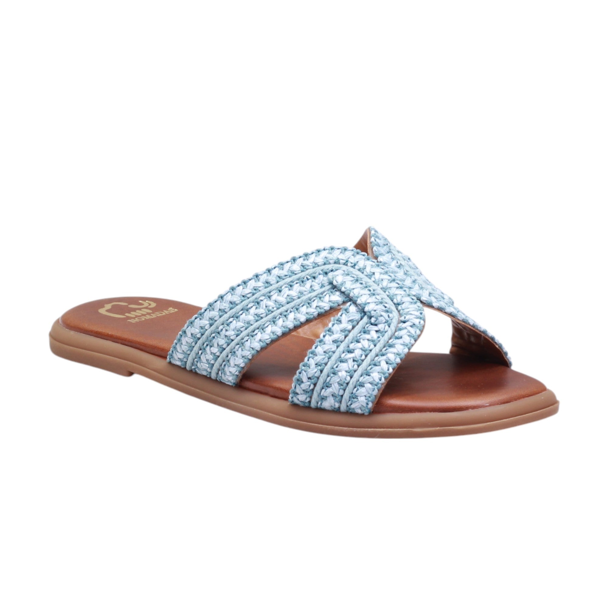 Sandalia para dama  marca Nomadas en color azul.  Este modelo casual es ligero y está confeccionado con tejido en el corte. Perfecto para usar en casa o para salidas casuales, proporciona estilo y comodidad. ¡Una opción ideal para cualquier ocasión!