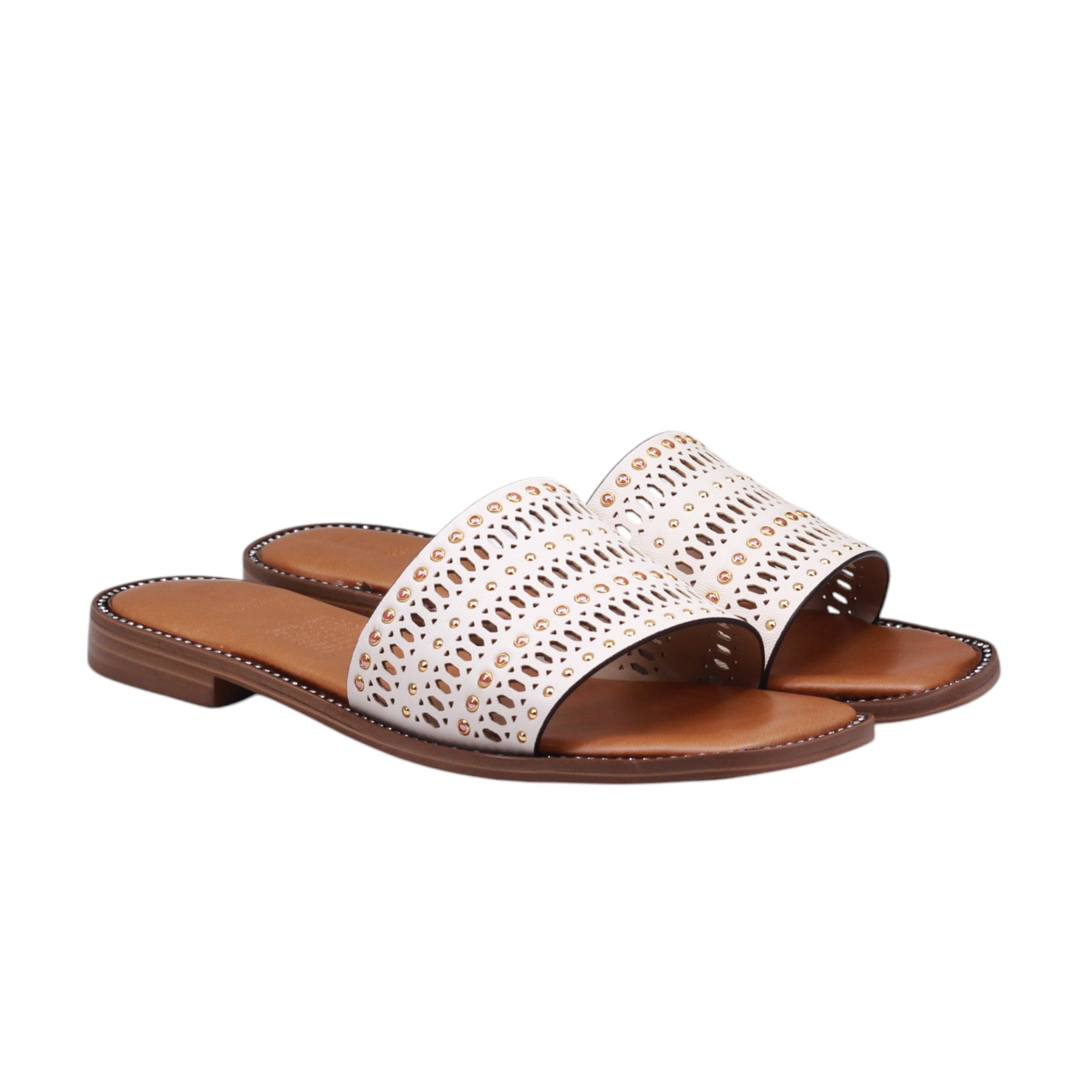 Sandalia para dama con adornos circulares en el empeine