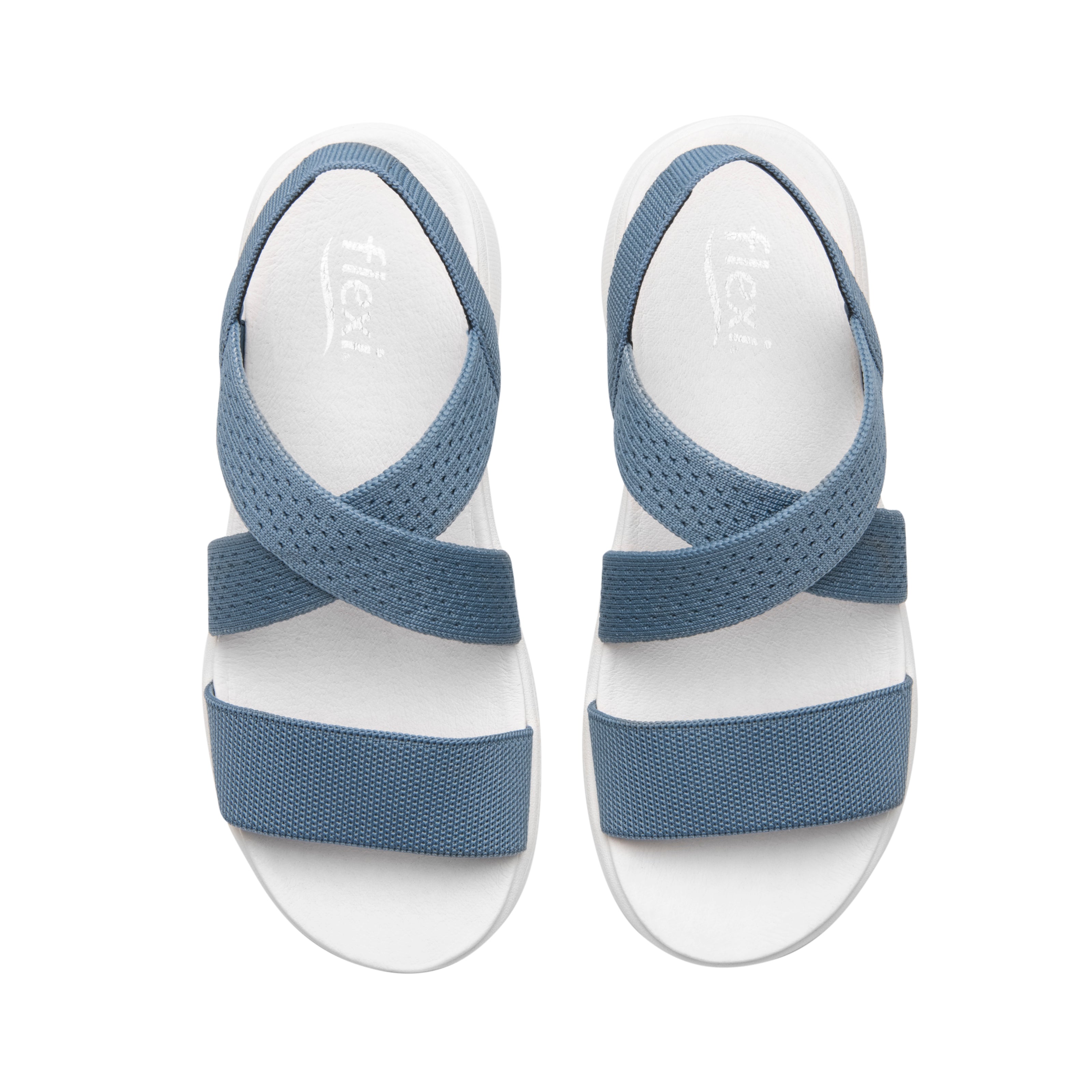 Sandalia para dama marca Flexi en color azul. Esta sandalia para dama está diseñada con un suave textil para mayor comodidad. La plantilla de piel de cerdo proporciona un toque de lujo, mientras que las tiras cruzadas y la tira trasera brindan un excelente soporte. Con una plataforma de 5.00 cm, ofrece una elevación elegante y cómoda para tus pies.