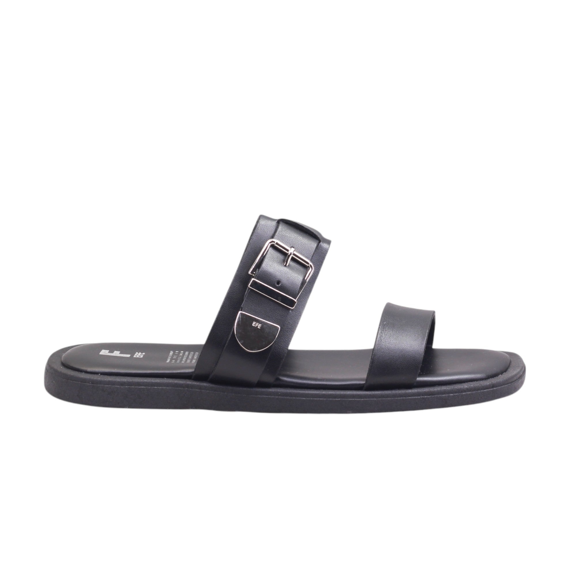 Sandalia para dama marca Efe en color negro. Modelo que cuenta con diseño de doble tiras, cuenta con plantilla cómoda, lo cual lo hace aún más atractivo a la vista. Este tipo de sandalia es ideal para cualquier ocasión casual.