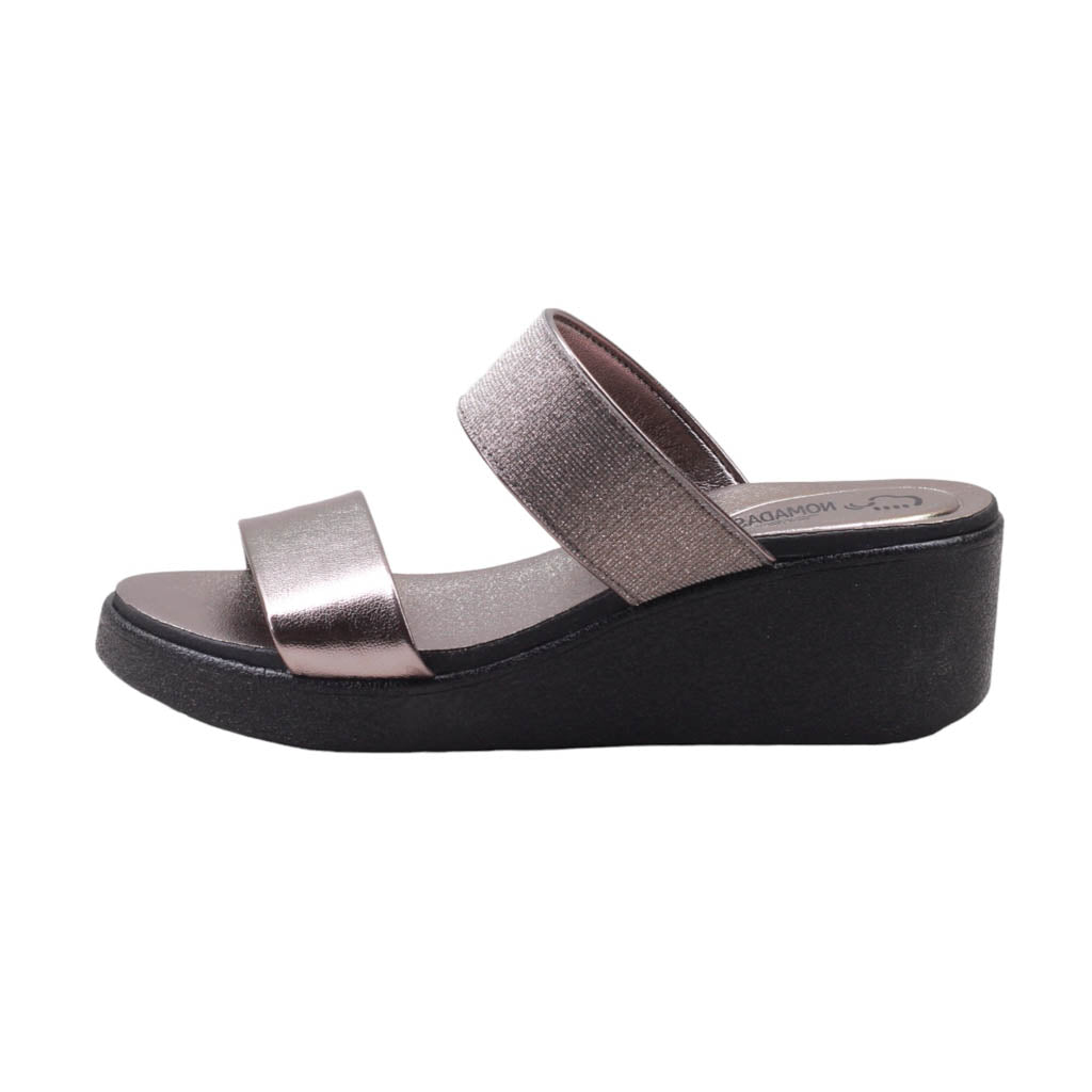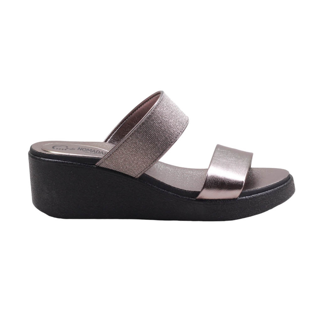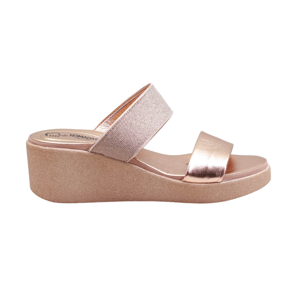 Sandalia para dama marca Nomadas en colores inox y oro rosado. diseñada para realzar tu estilo con un toque de sofisticación.