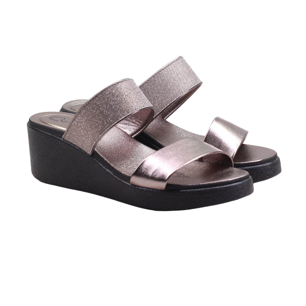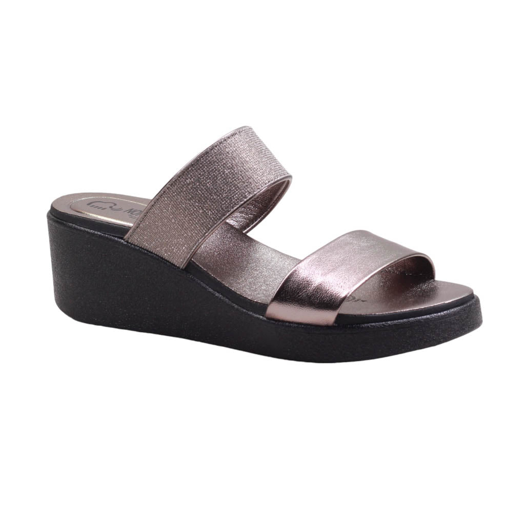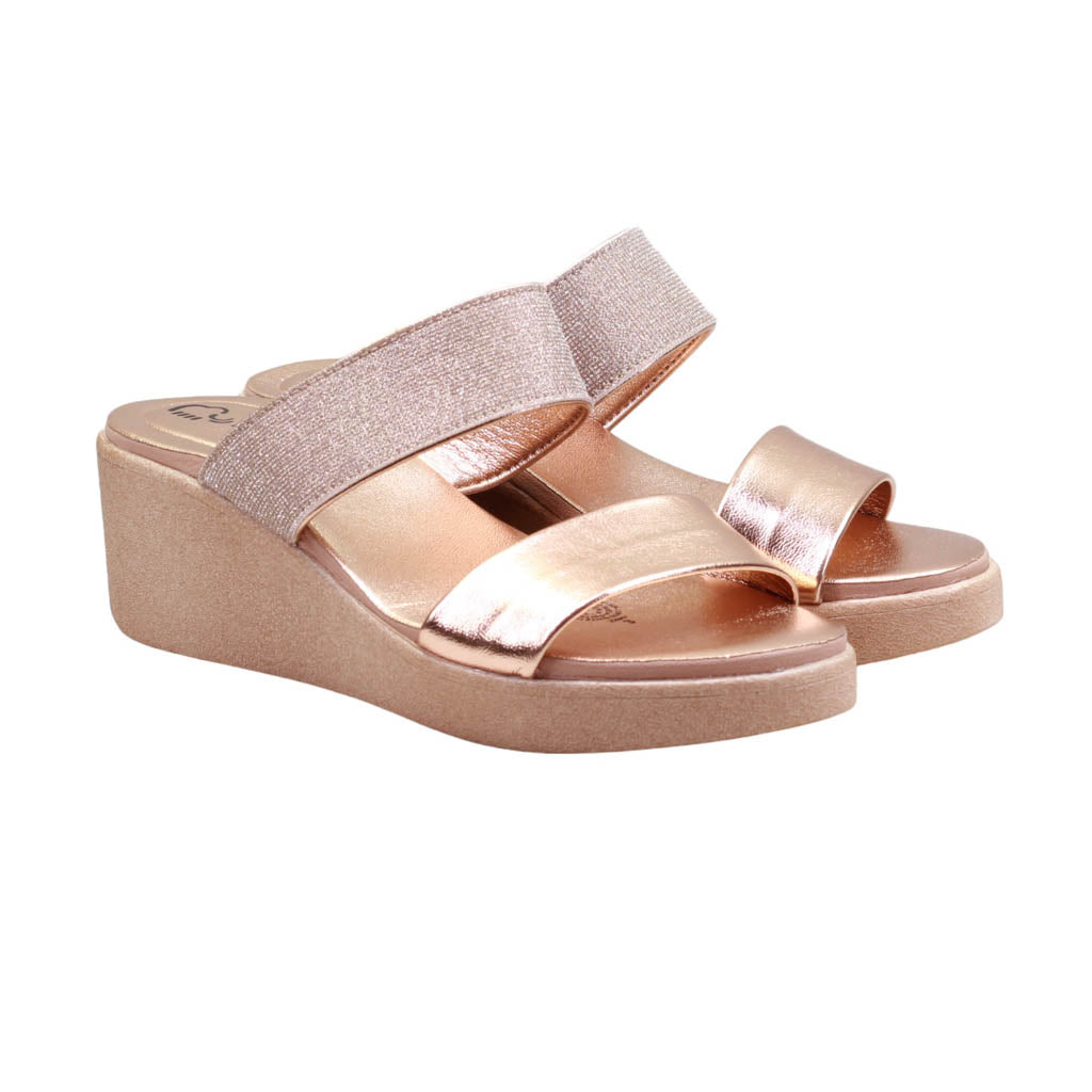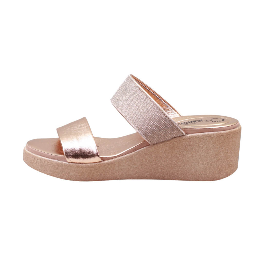 Sandalia para dama marca Nomadas en colores inox y oro rosado. diseñada para realzar tu estilo con un toque de sofisticación.