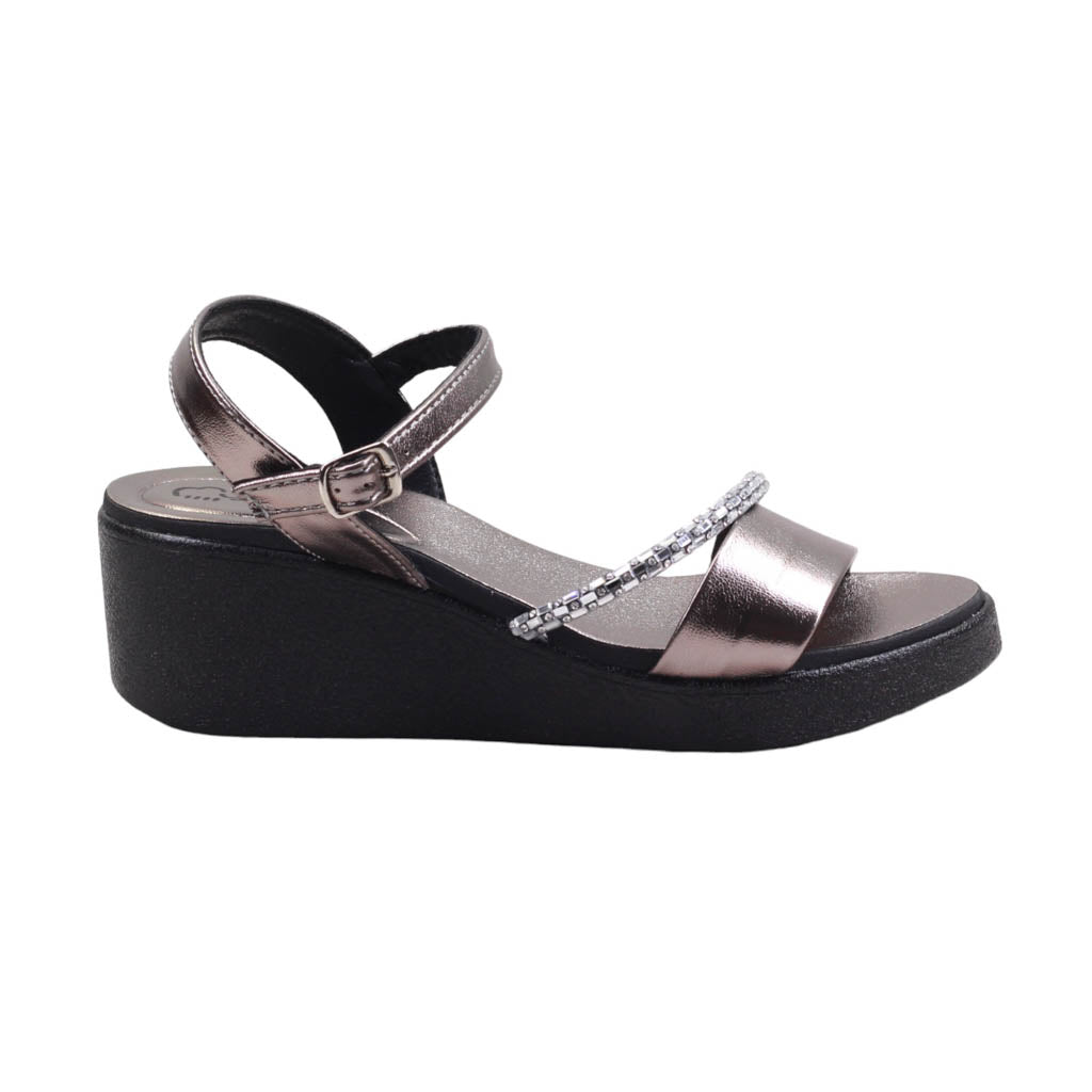 Esta plataforma con altura de 5.00 cm y doble tira delgada en diagonal con pedrería, tiene una plantilla de confort que brinda comodidad durante todo el día. Con su diseño moderno y ergonómico, este modelo es ideal para aquellas personas que buscan un calzado versátil y cómodo sin sacrificar estilo.