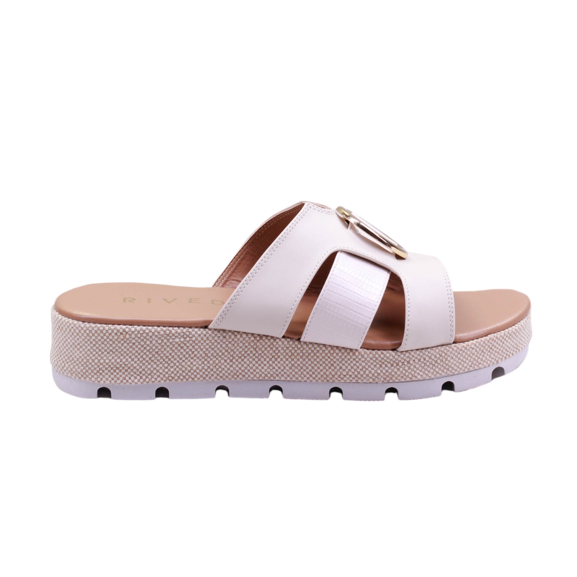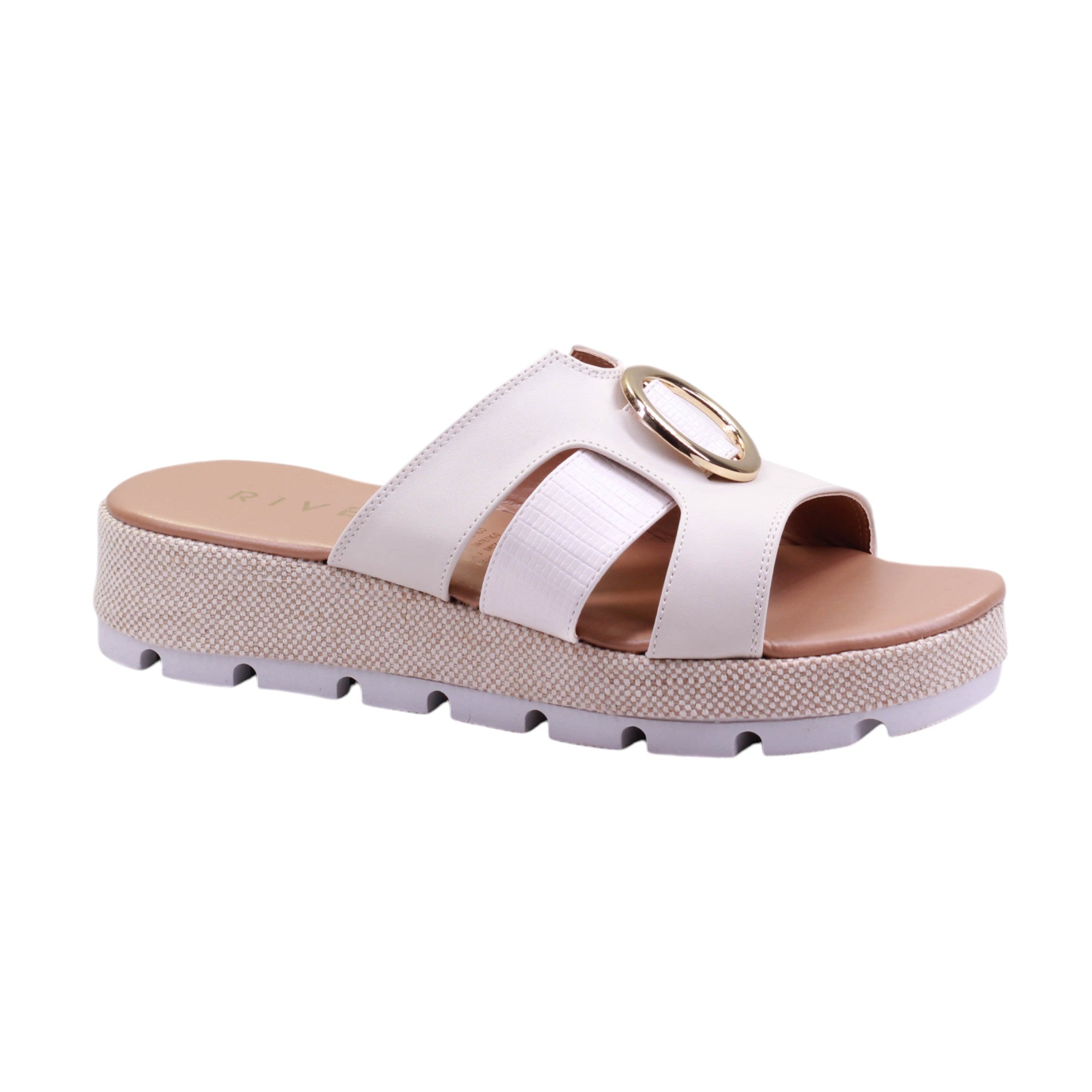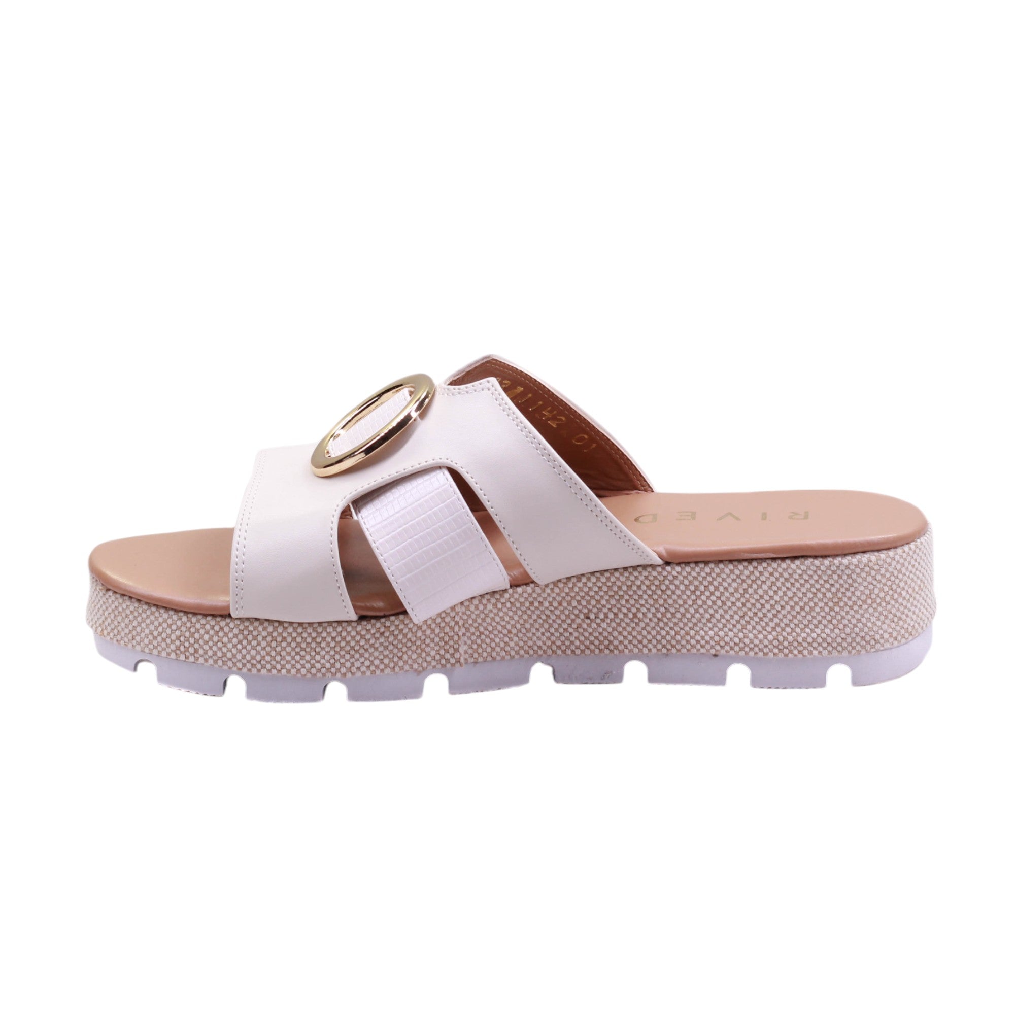 Sandalias cómodas, se ven muy bien. El color es como un beige muy sutil casi blanco, pero no es blanco.