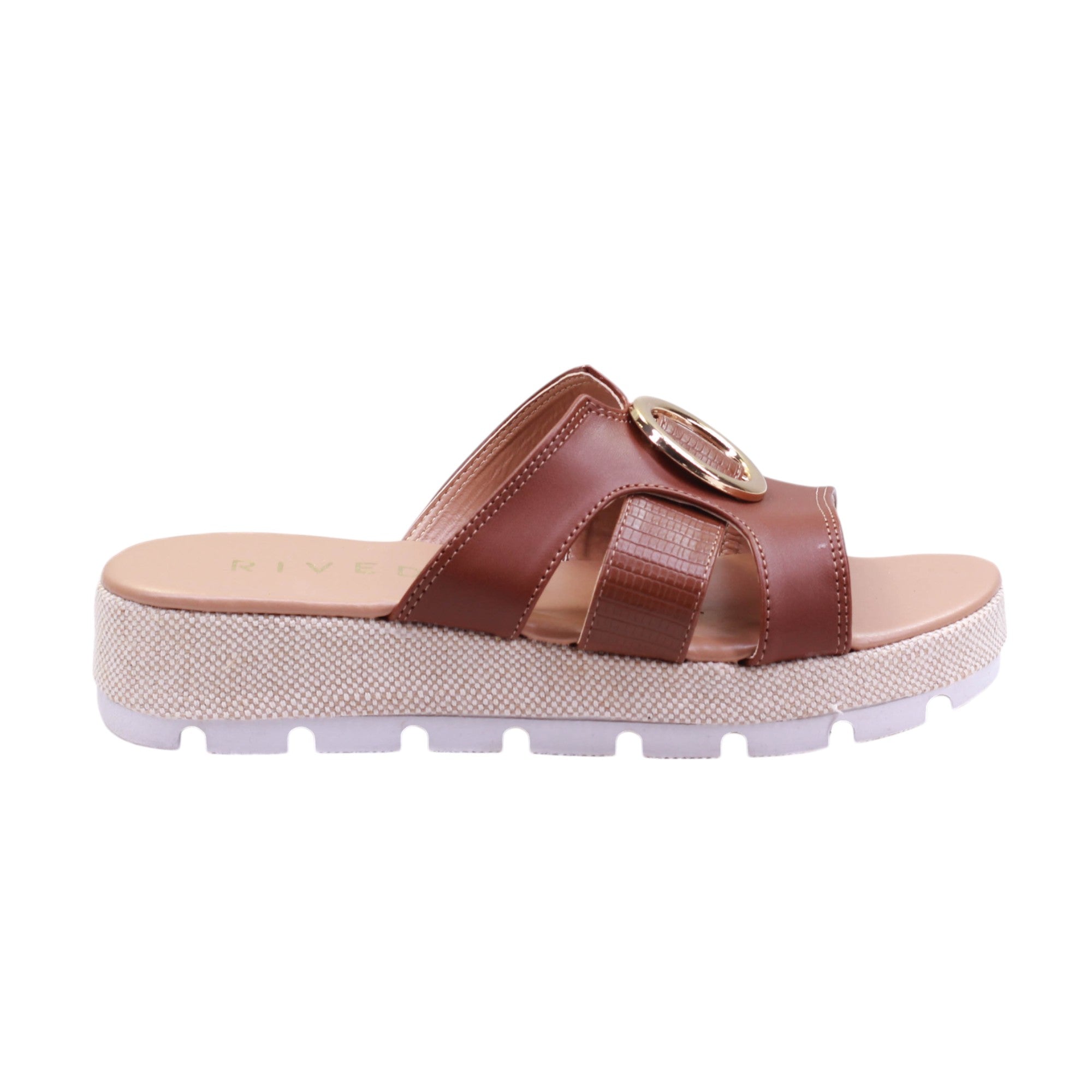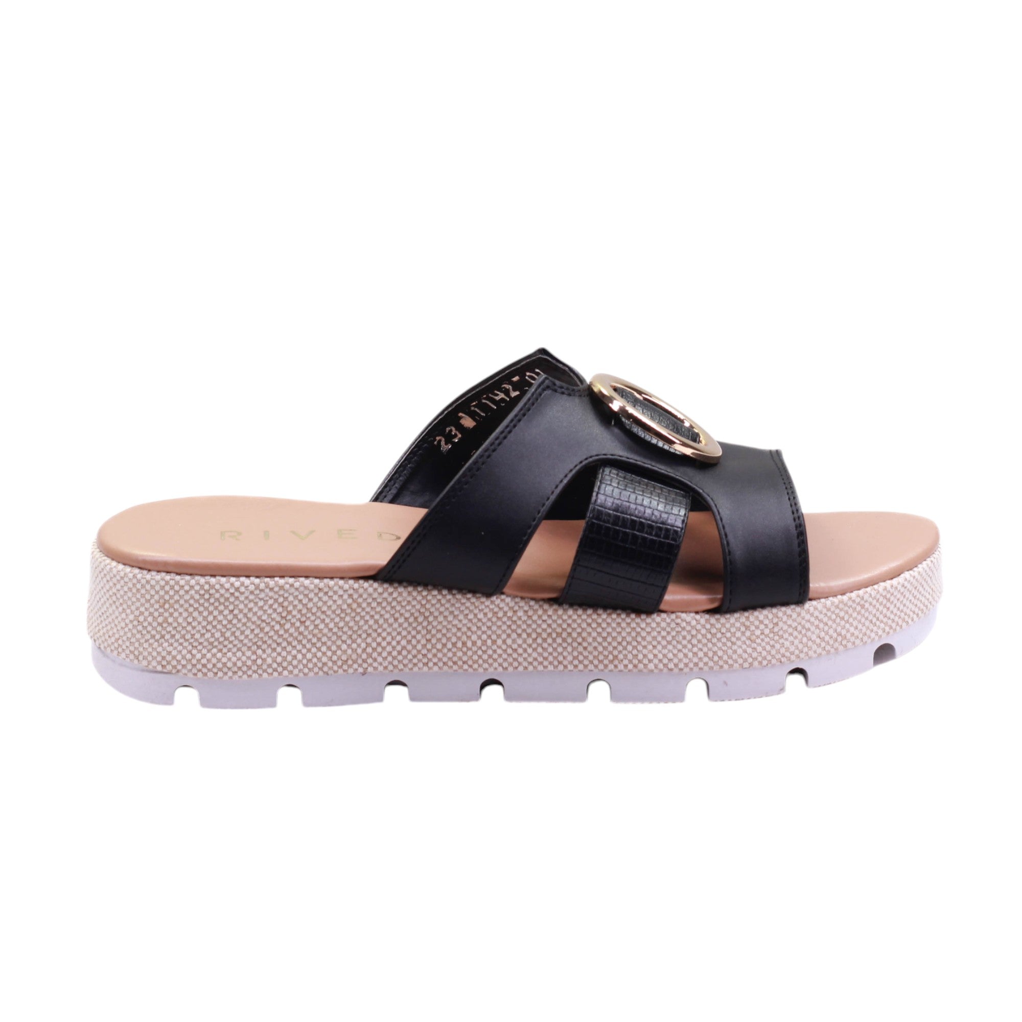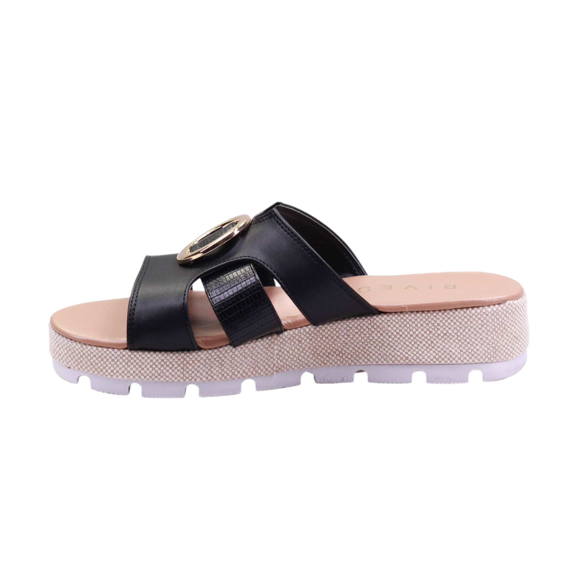 Sandalia para dama marca Rivedy en colores Late, maquillaje, negro y tan, diseño clásico en tiras con novedosa plataforma, con este tipo de calzado estarás en tendencia y lucirás increíble en toda ocasión.