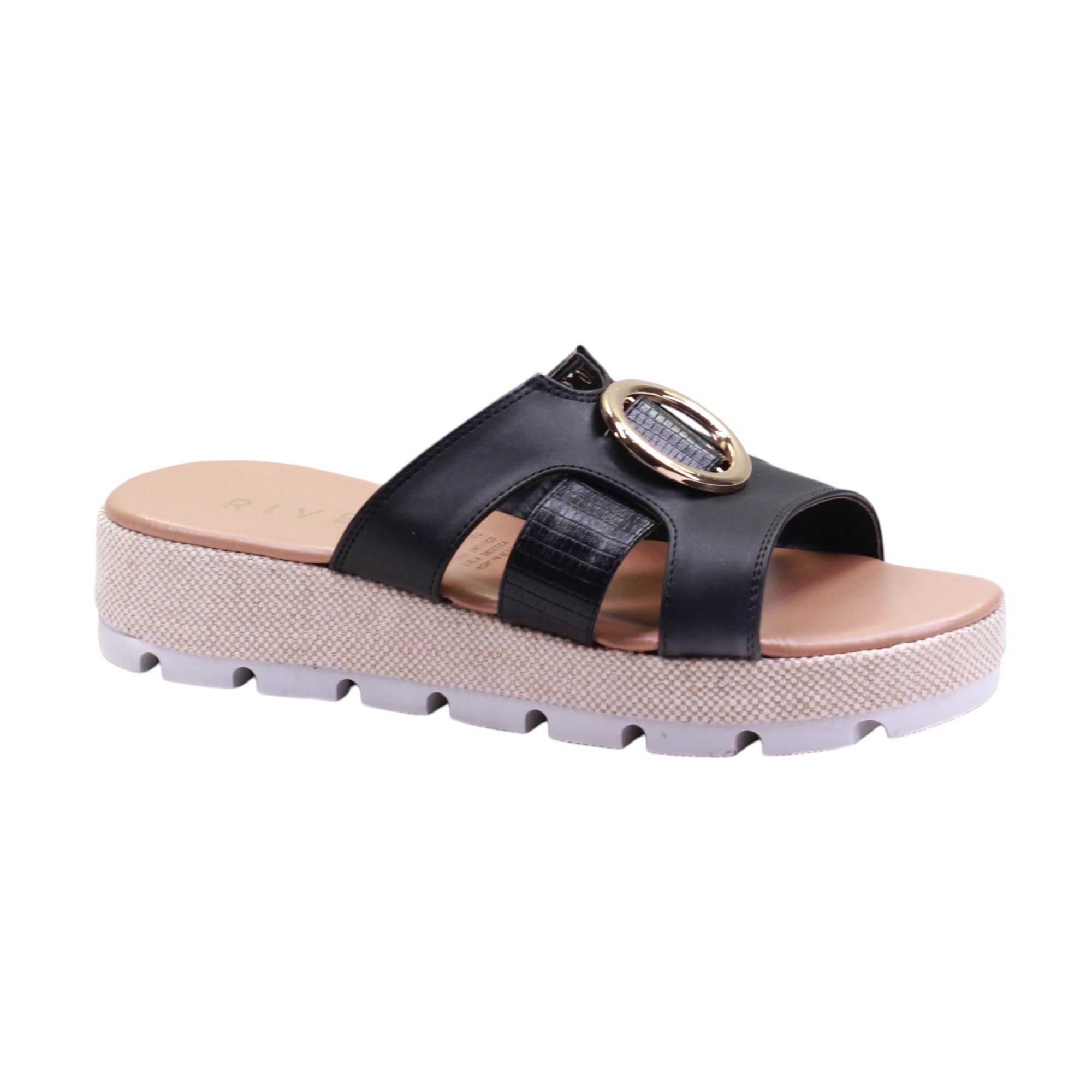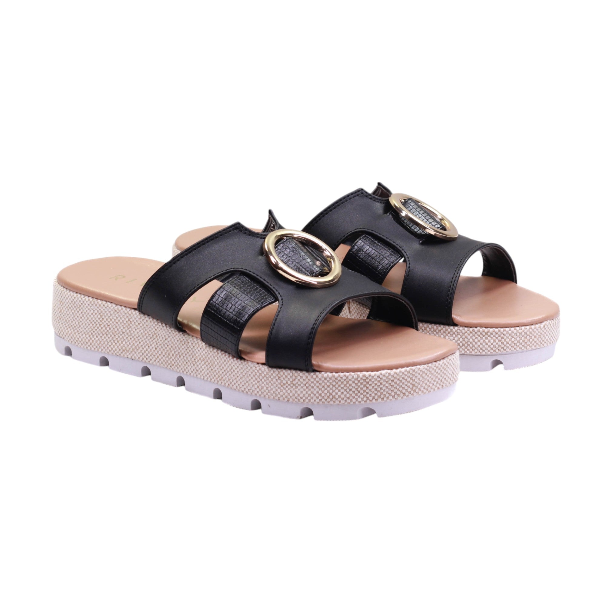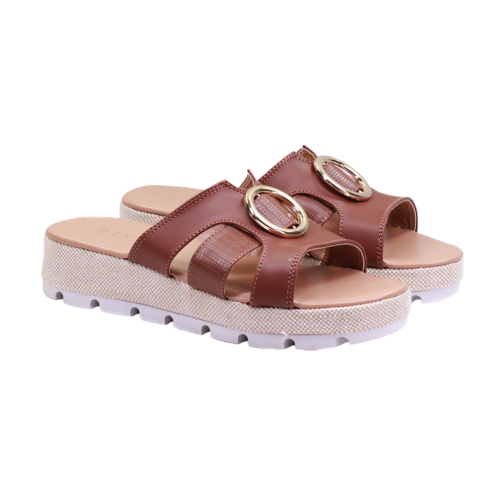 Sandalia para dama marca Rivedy en colores Late, maquillaje, negro y tan, diseño clásico en tiras con novedosa plataforma, con este tipo de calzado estarás en tendencia y lucirás increíble en toda ocasión.