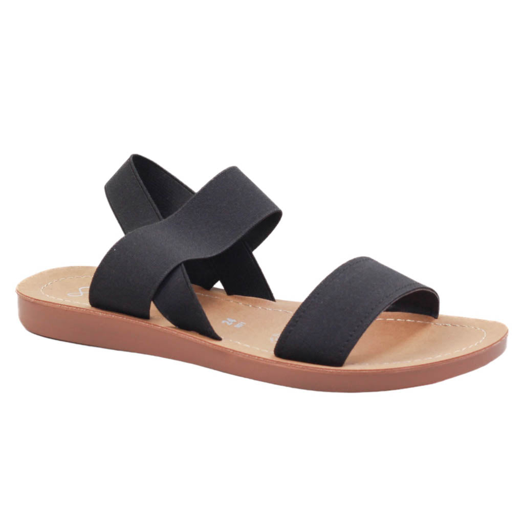 Sandalia para dama marca TMY en colores negro. Diseño de tiras elásticas y suela ergonómica para un aspecto atractivo. Su ligera plataforma permitirá que esté cómoda a cada paso.