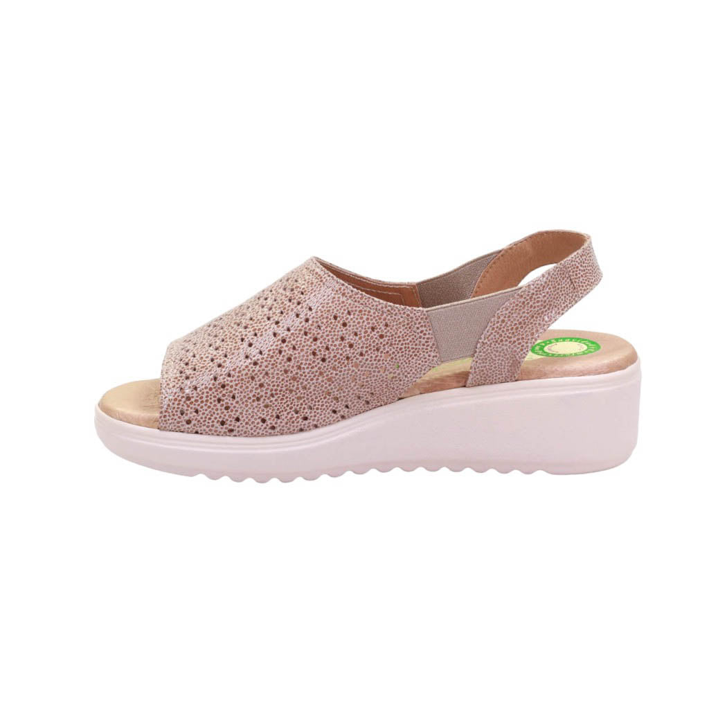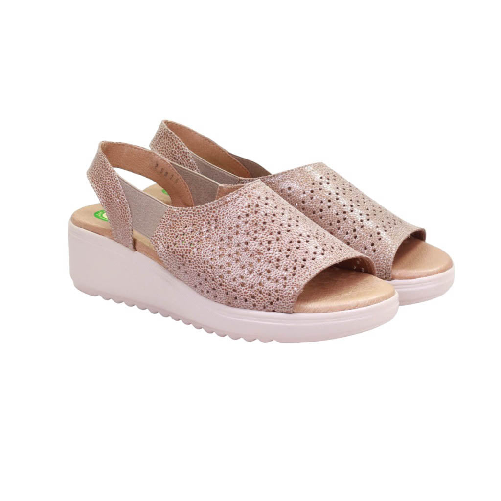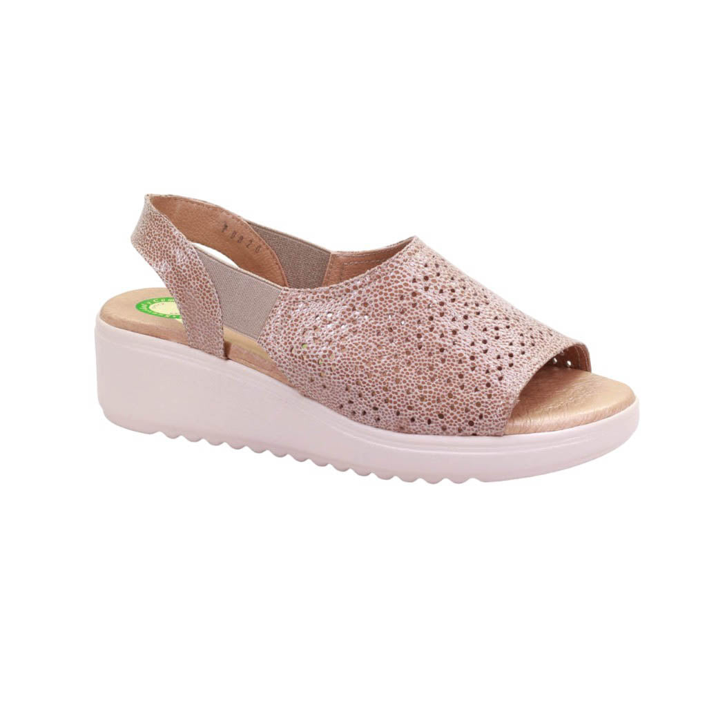 Sandalia para dama marca Capricho en color maquillaje. Este modelo cuenta con un ajuste trasero para una mayor comodidad, así como con elásticos laterales que proporcionan un ajuste personalizado. Además, su plantilla acojinada brinda una mayor amortiguación y su corte con perforaciones permite una adecuada transpiración del pie. Disfruta de un calzado funcional y cómodo con este modelo.
