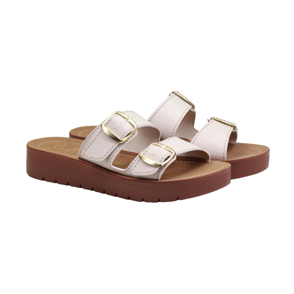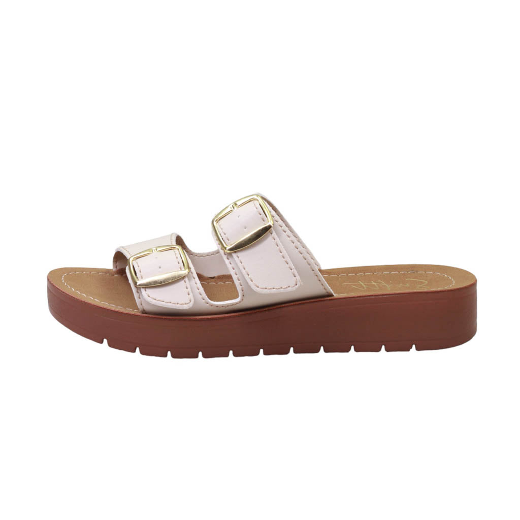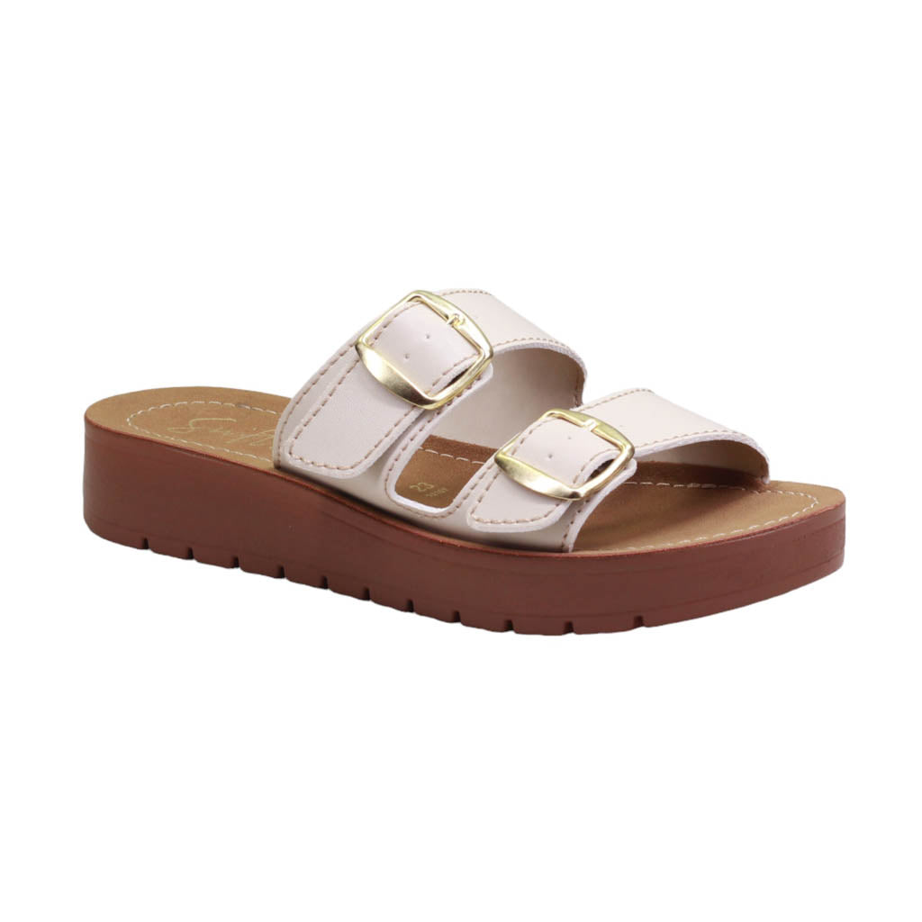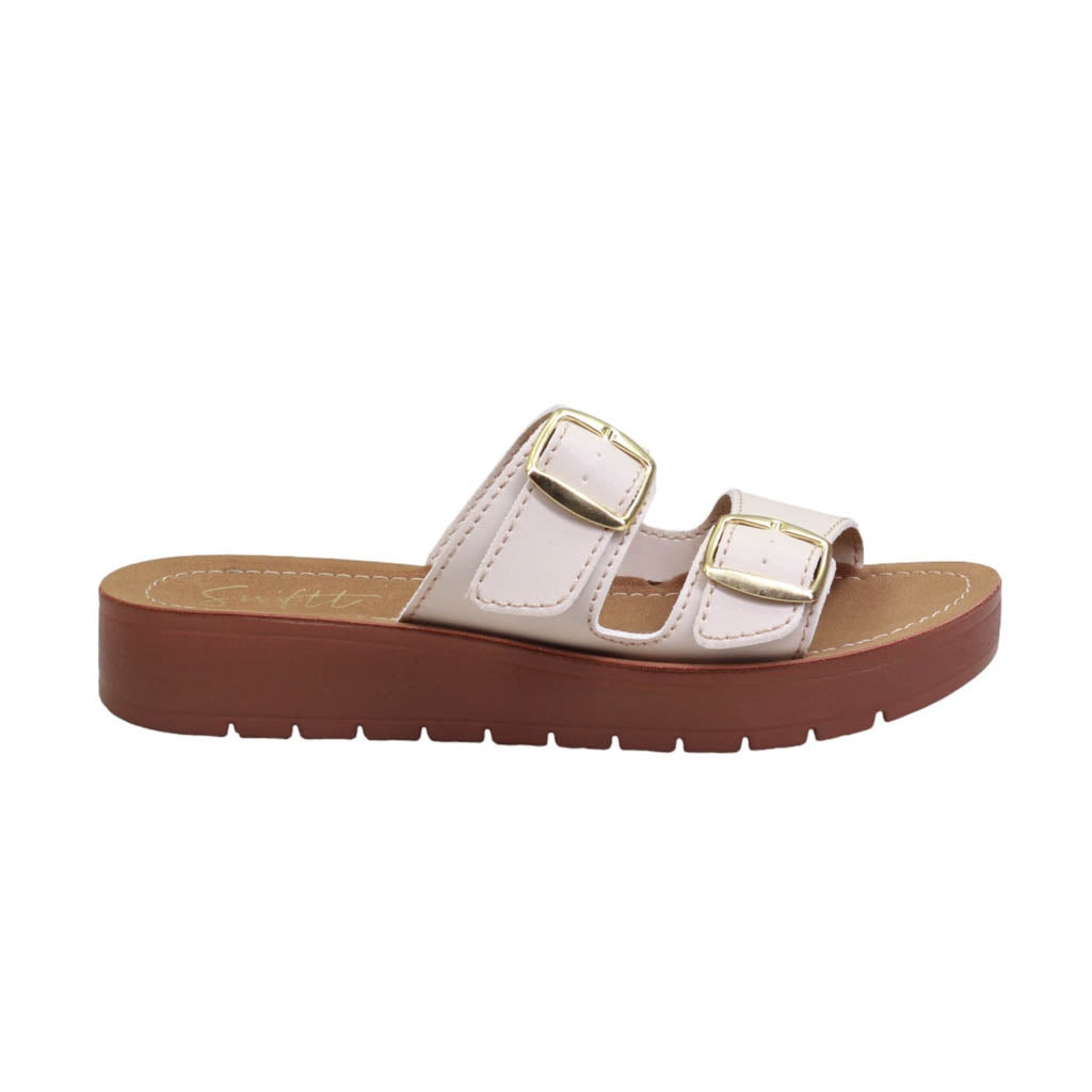 Sandalia de media plataforma con doble tira ancha con hebilla
