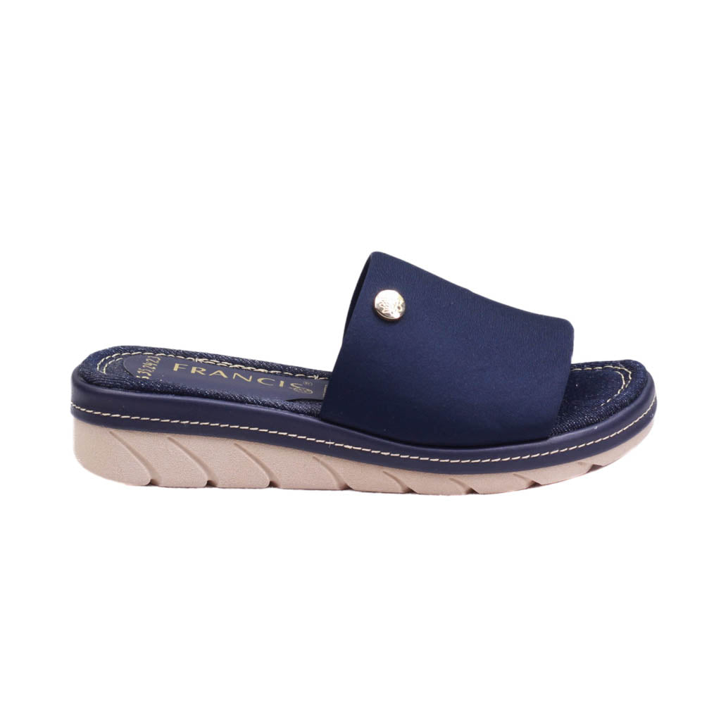Sandalia para dama marca Francis en colores café y marino. Bonito diseño con plantilla de confort, este modelo se destaca por su acabado en materiales suaves y plataforma media para esas caminatas del día a día.