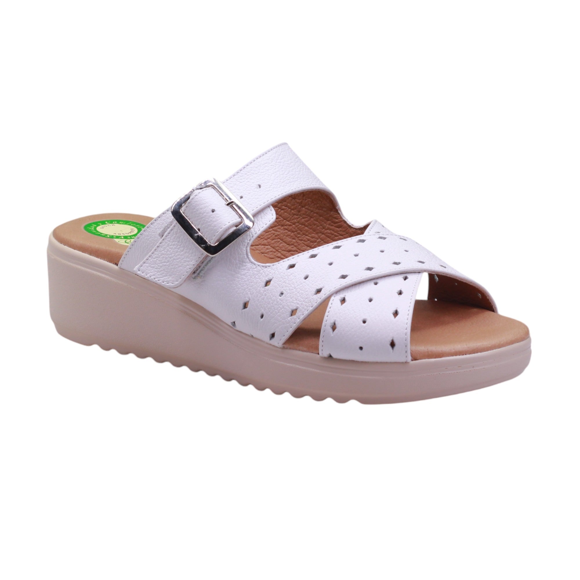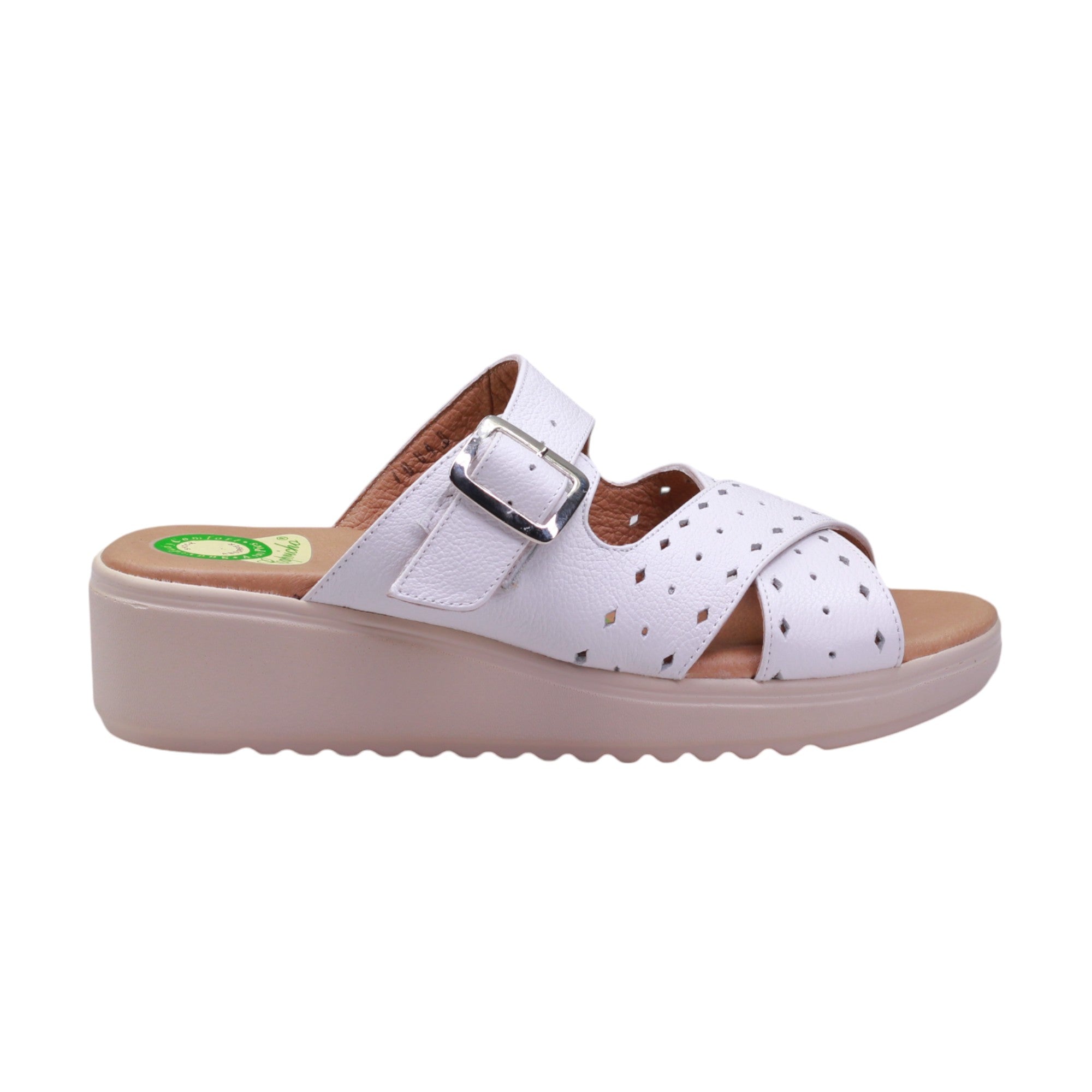 Sandalias cómodas, se ven muy bien. El color es como un beige muy sutil casi blanco, pero no es blanco.