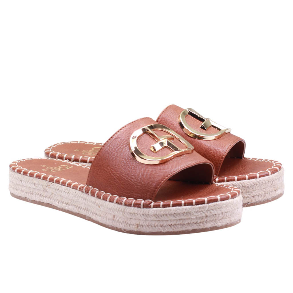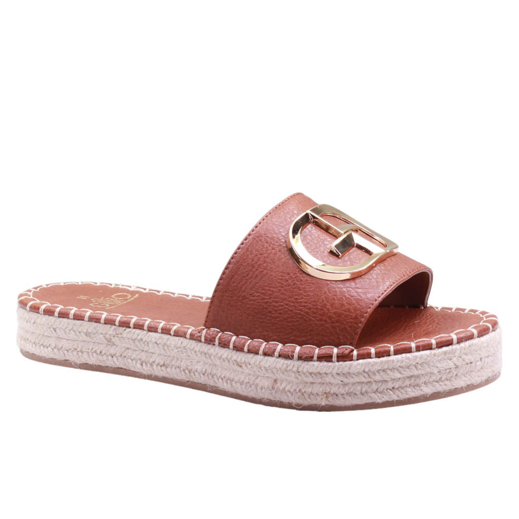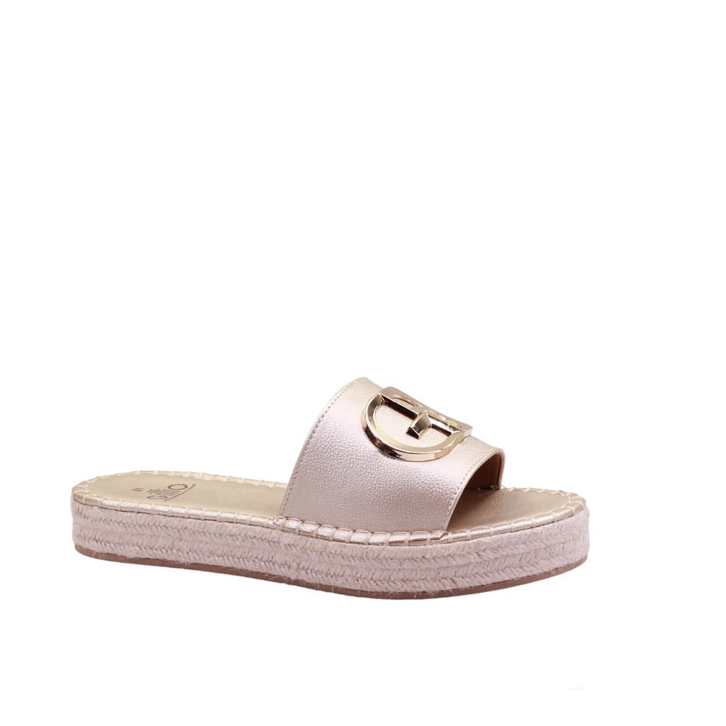 Sandalia de plataforma corrida para dama con tejido y adorno en el corte