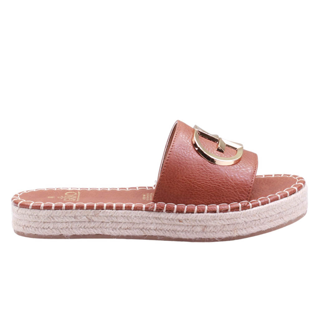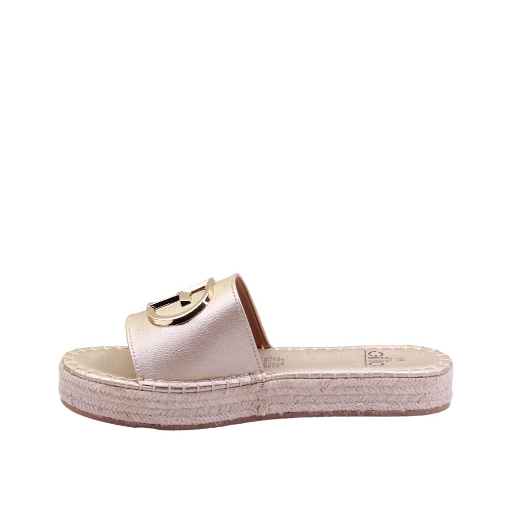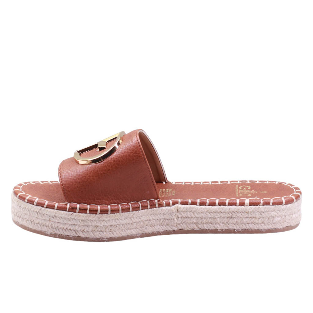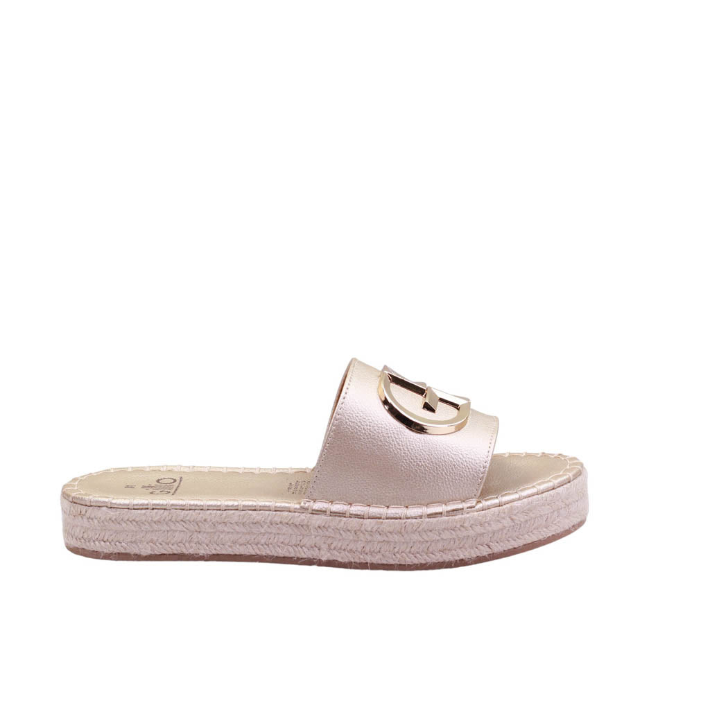 Sandalia de plataforma corrida para dama con tejido y adorno en el corte