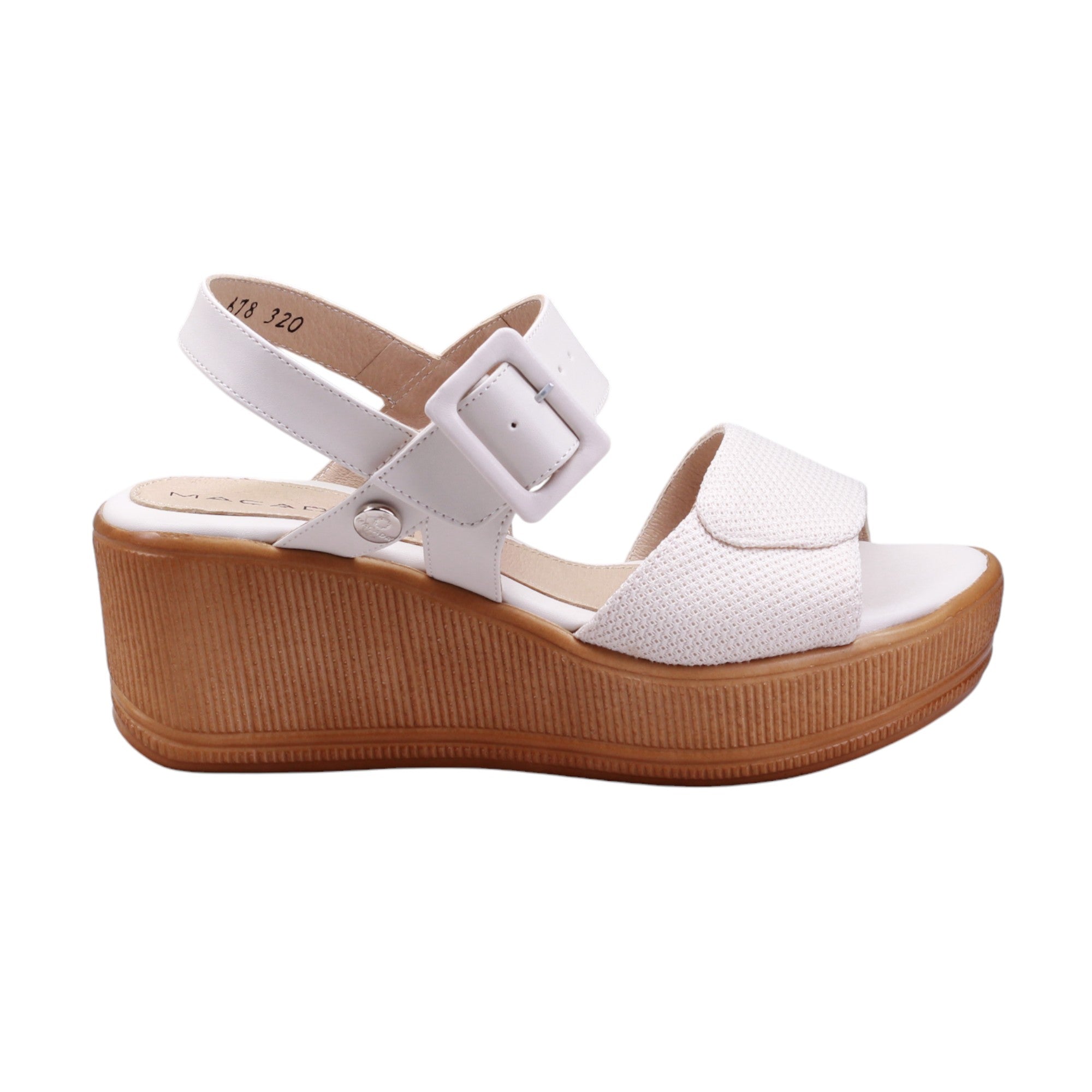Plataforma para dama marca Macada en color late. Este modelo de plataforma cuenta con un elegante grabado y una altura de 6.00 cm que brinda mayor estabilidad y comodidad. Su ajuste al tobillo con hebilla permite un calce perfecto, mientras que su tira en piel artificial con grabado le da un toque sofisticado a tu look.