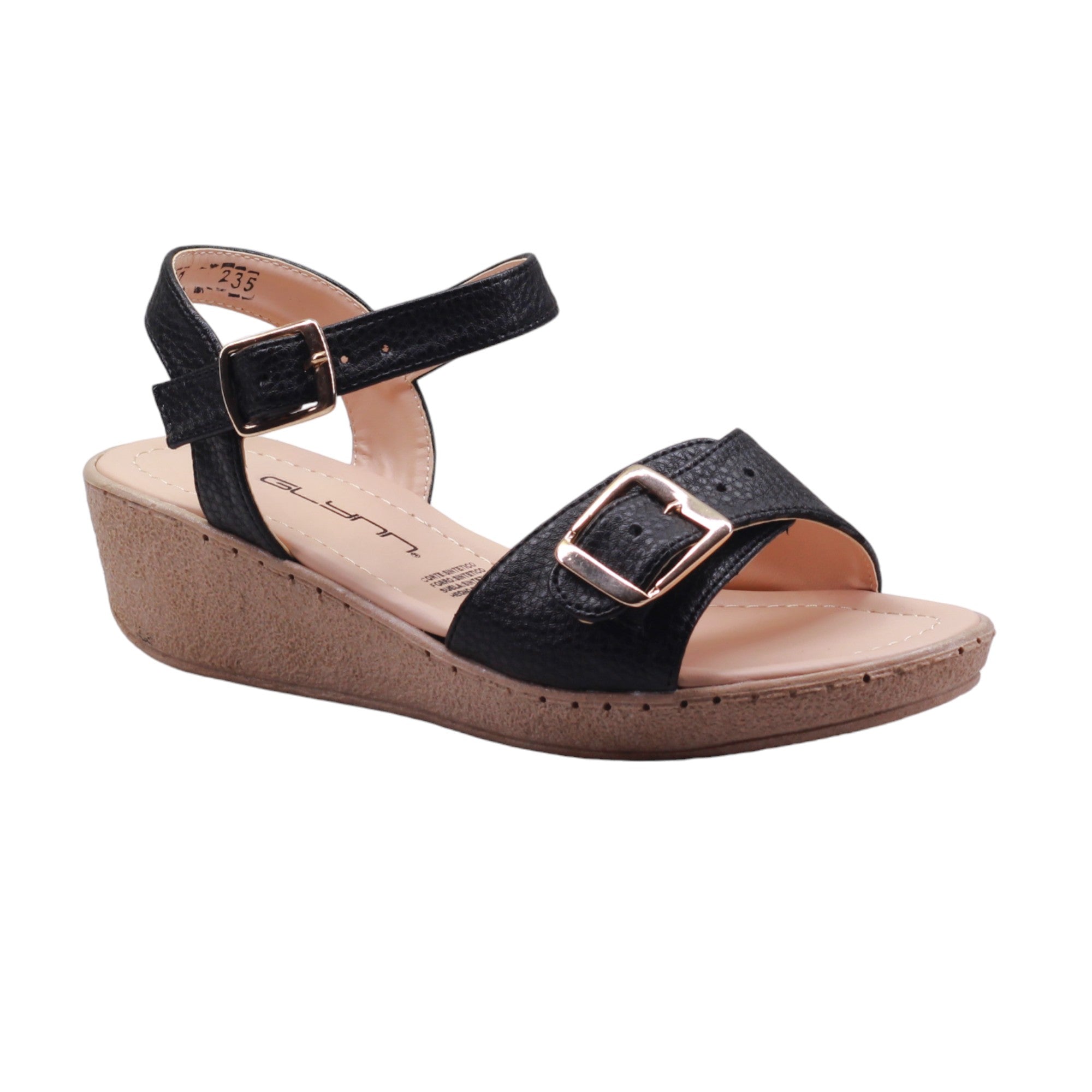 Sandalia para dama marca Glynn en colores Came y negro. Este modelo cuenta con tiras delgadas al tobillo que se pueden ajustar con una hebilla, brindando un ajuste personalizado y cómodo. Además, su tira ancha en el corte proporciona mayor seguridad al caminar. Su plataforma media de 4.5 cm te dará una altura adicional sin sacrificar comodidad.