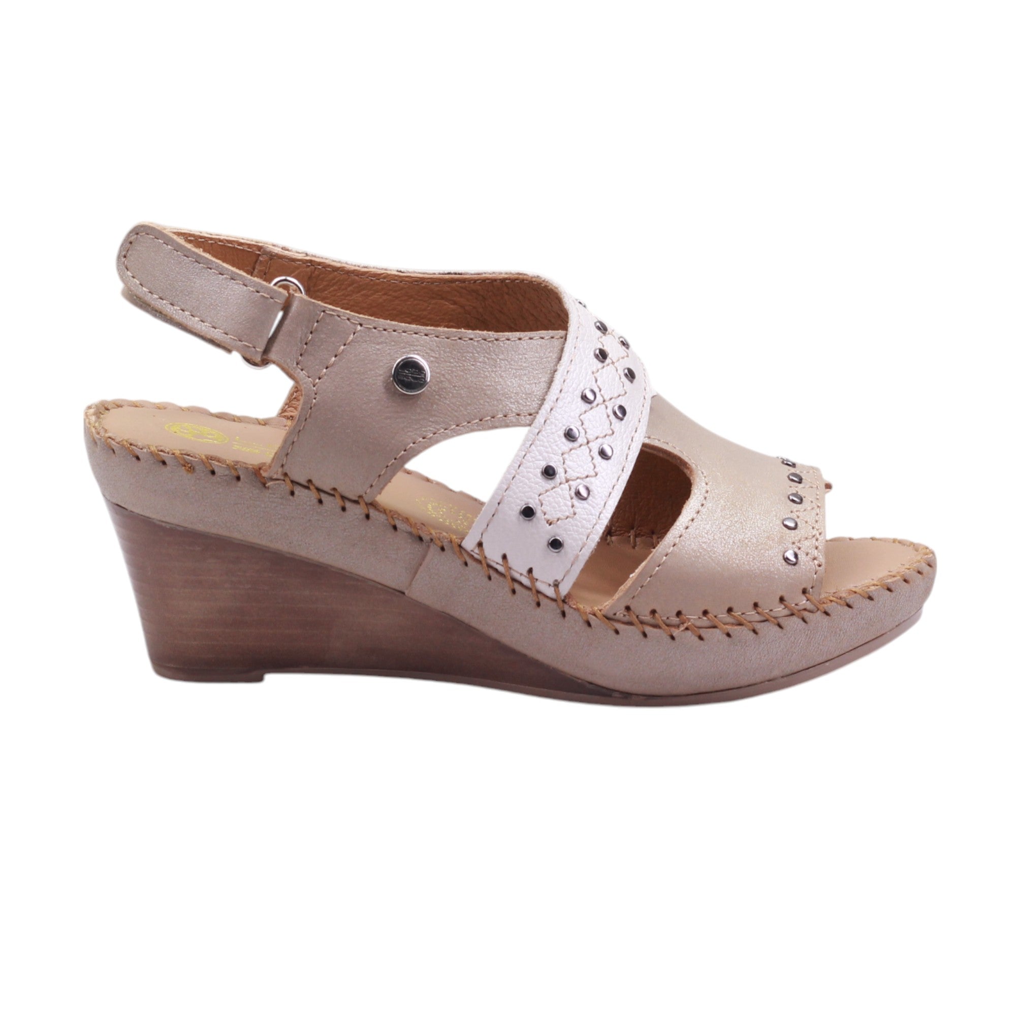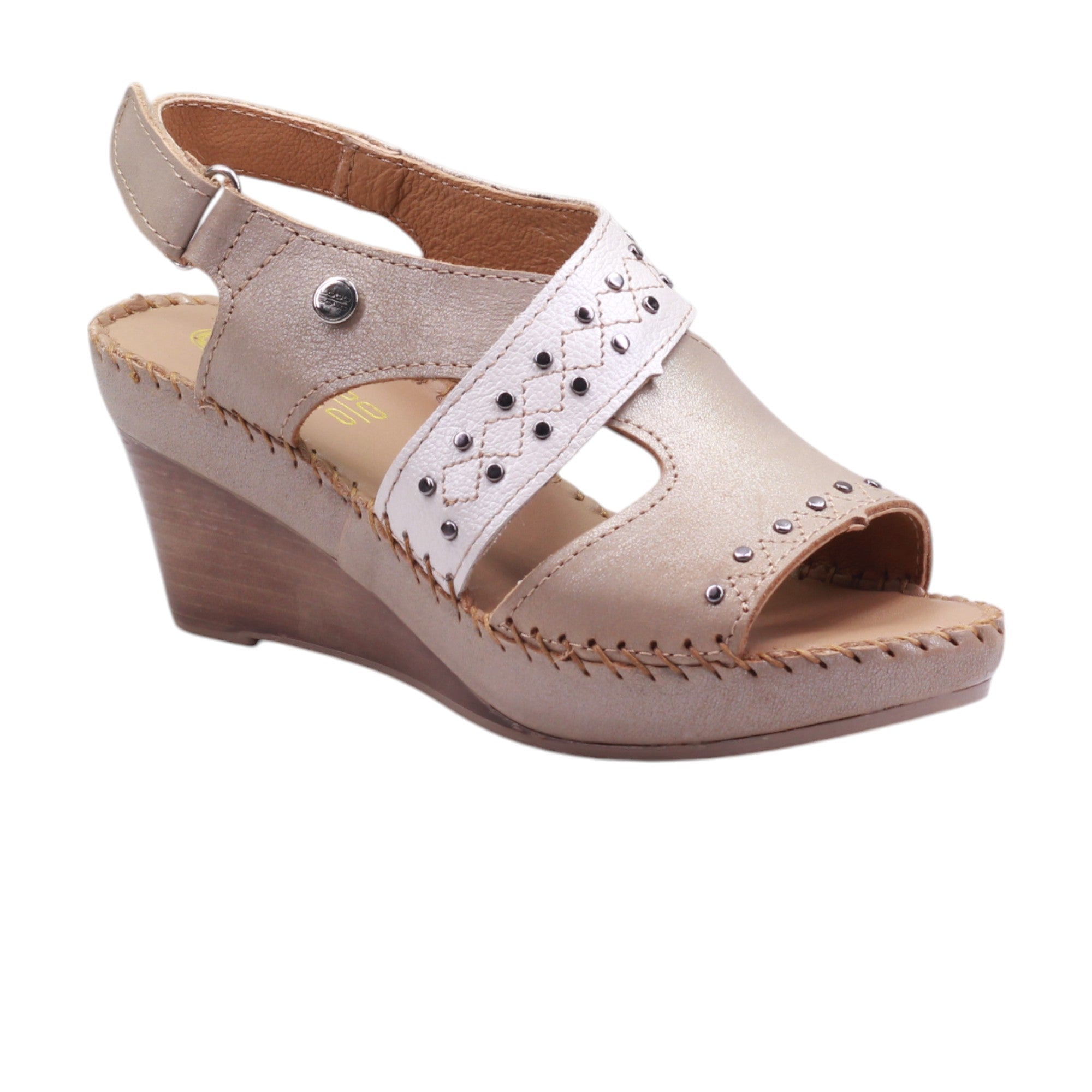 Sandalia para dama marca Lobo Solo en colores sand y orange. Es un modelo de confort. Terminado de piel suave 100% natural. Plantilla acojinada de piel y plataforma con altura de 6.5 cm. Este calzado se caracteriza por su piel adaptable y comodidad para todo tipo de pies.