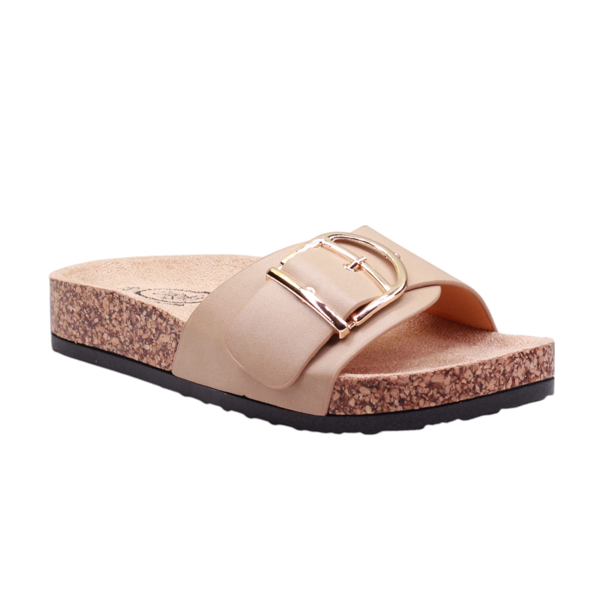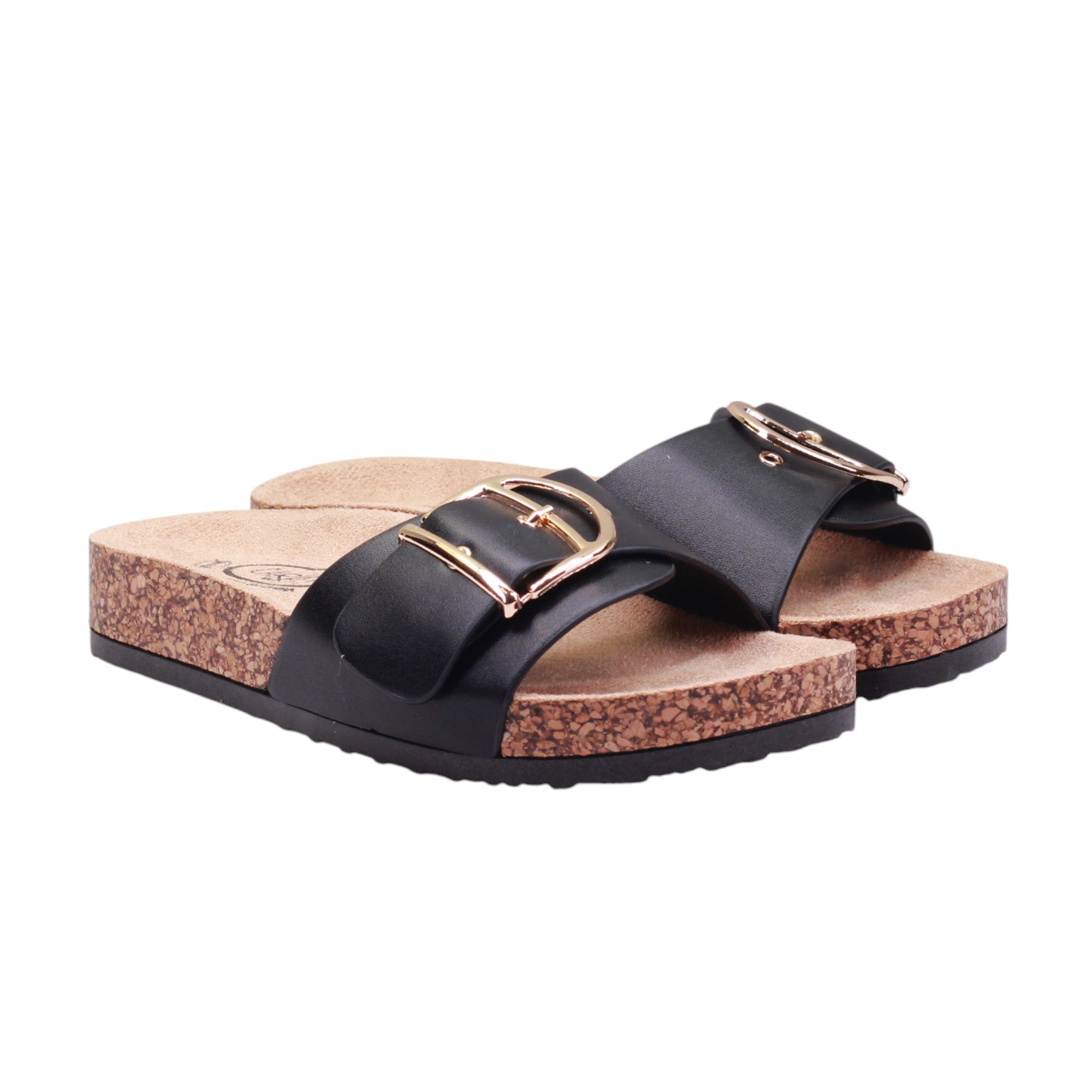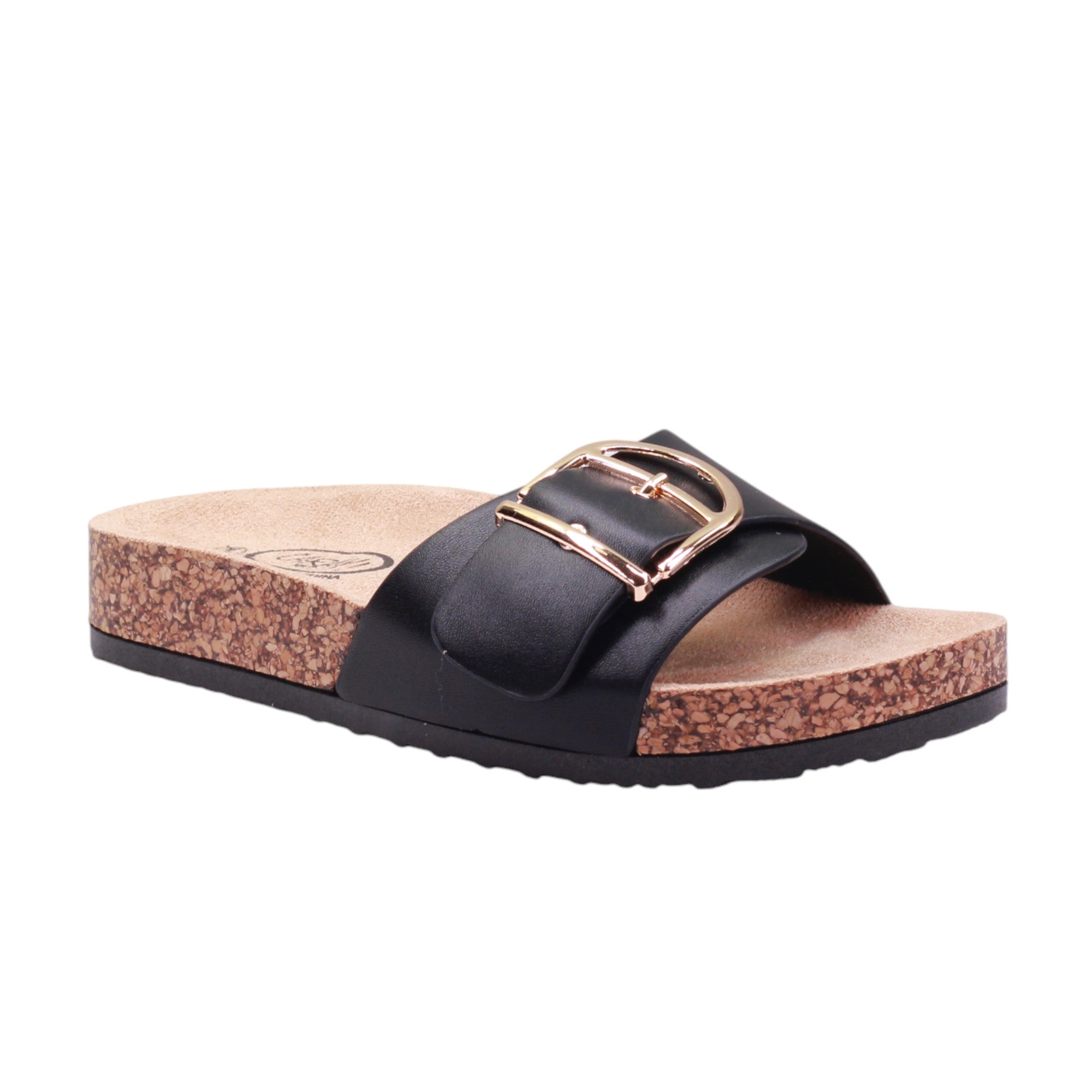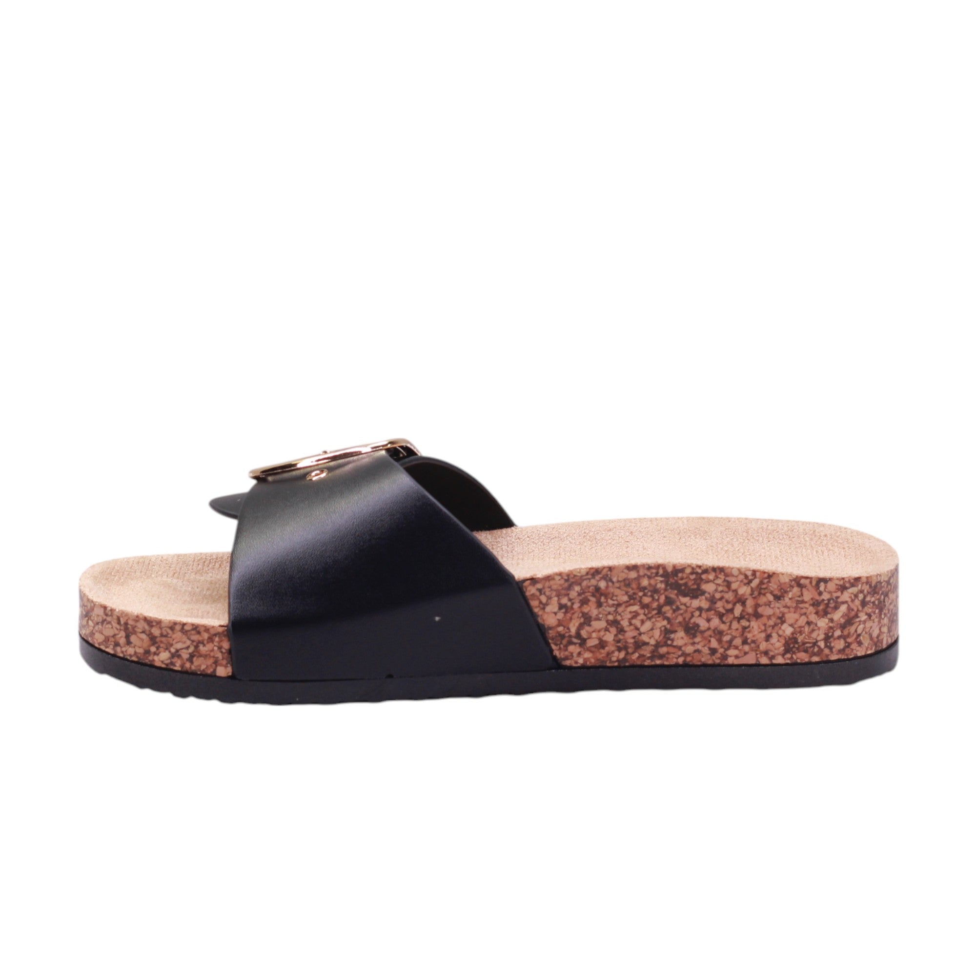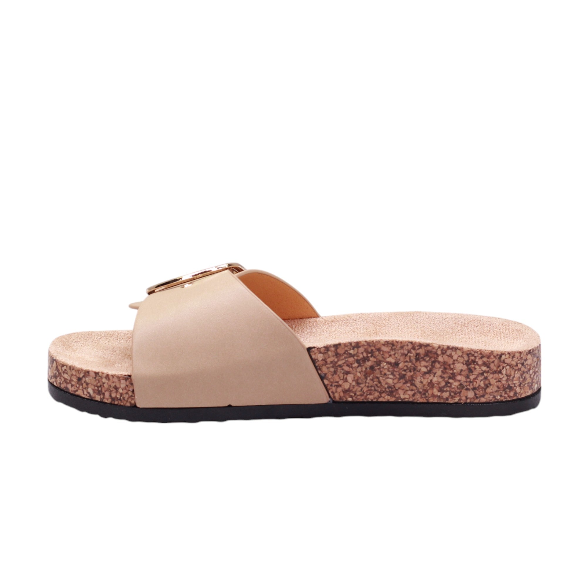 Sandalia para dama marca Caray en colores negro, blanco y natural. Este modelo cuenta con una altura de 2.5 centímetros y corte con una hebilla grande, proporcionando comodidad y un ajuste seguro. Además, su suela ergonómica tipo corcho brinda un soporte óptimo para los pies, evitando la fatiga y mejorando la postura al caminar.