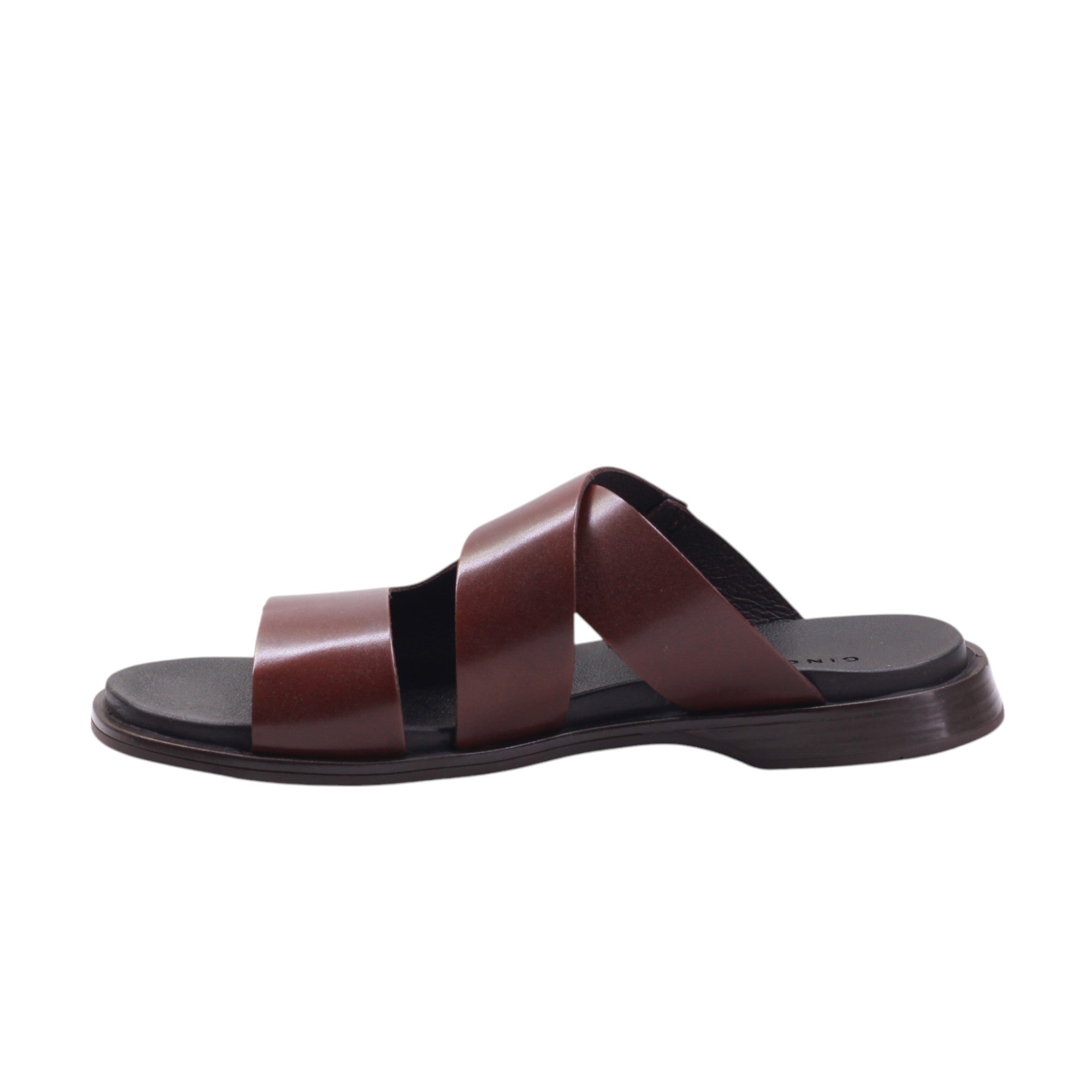 Sandalia para caballero marca Gino Cherruti en color caoba. Modelo de uso casual con terminado en piel lisa, este modelo se distingue por su calidad y comodidad. Lo puedes usar tanto en casa como en caminatas casuales, hará que estés cómodo a cada paso.