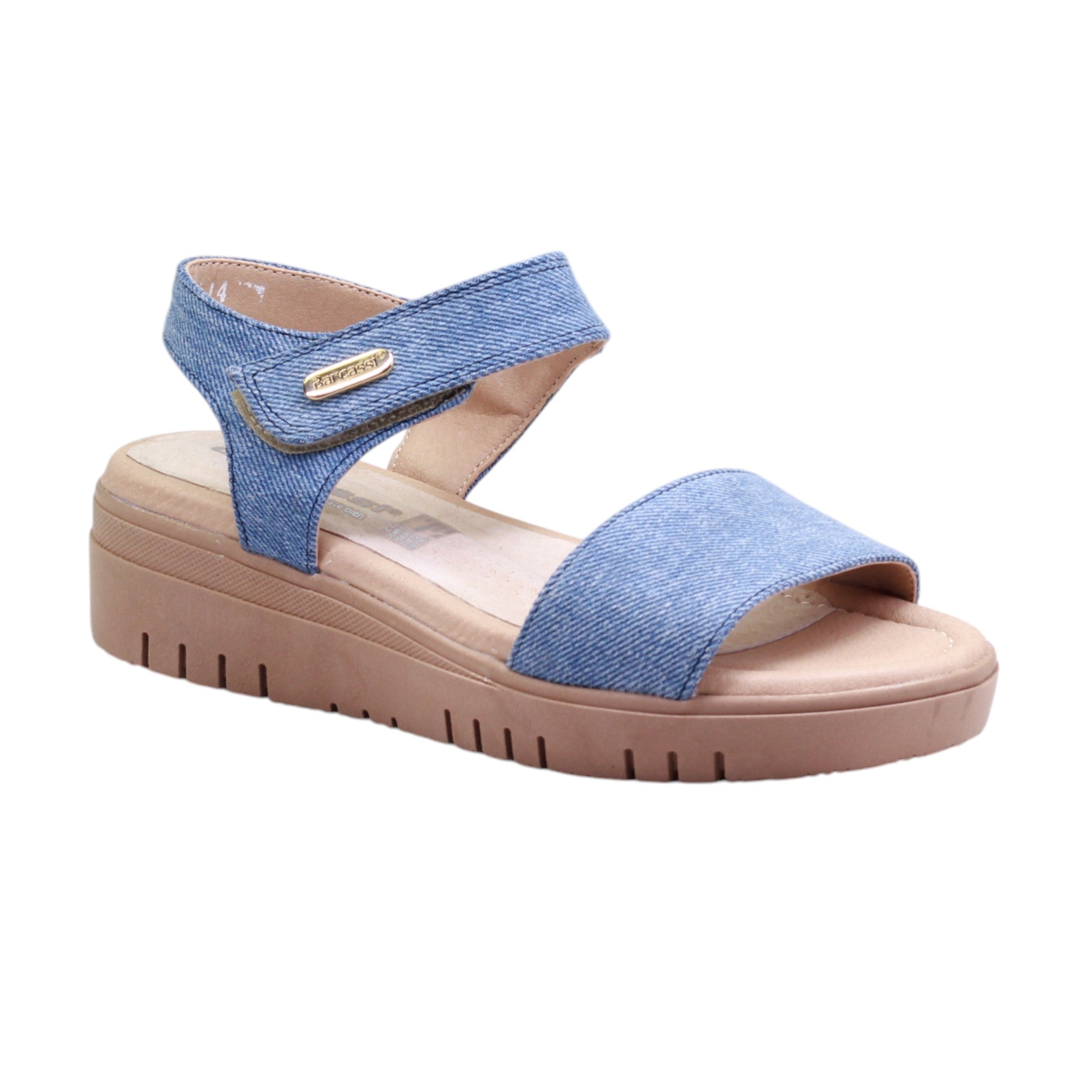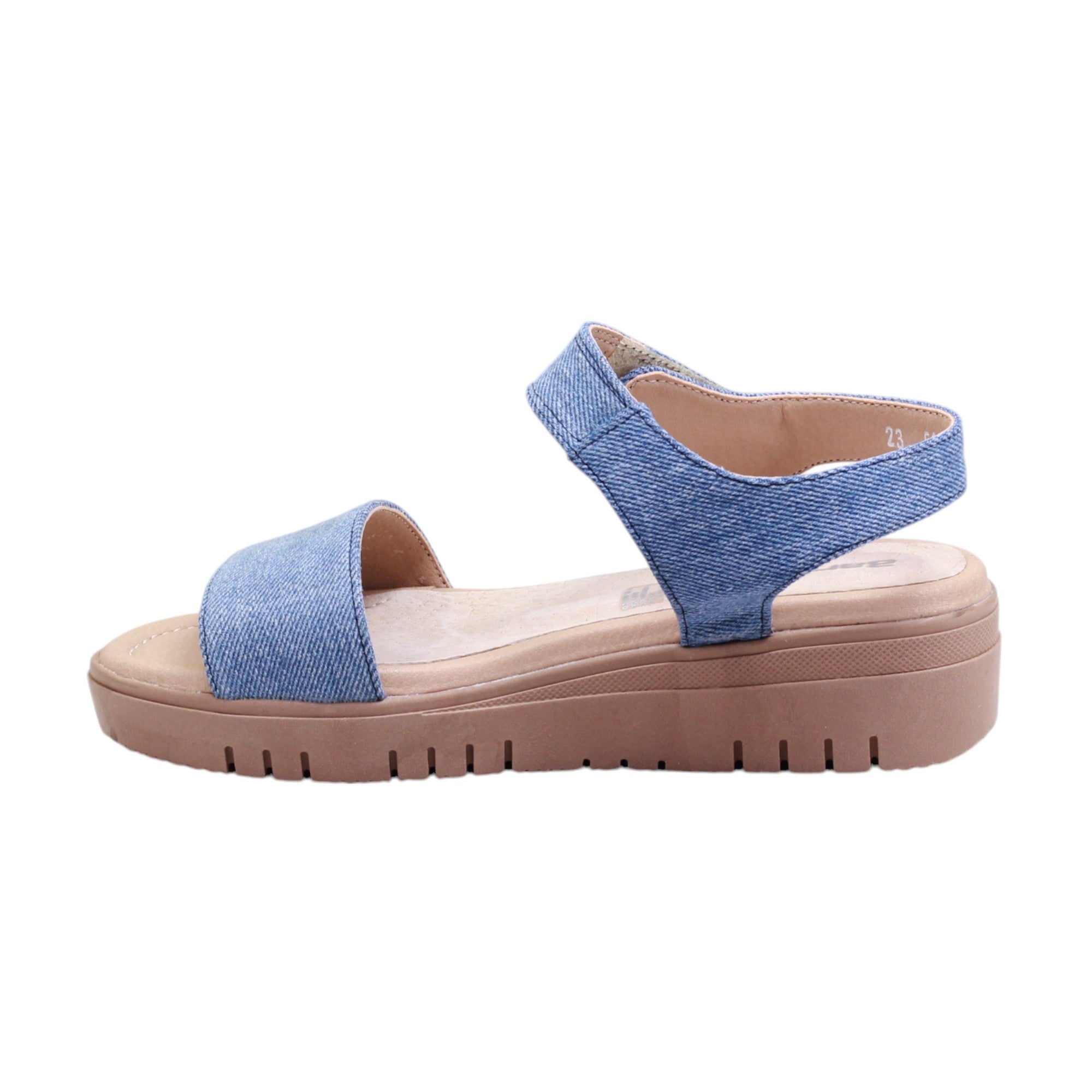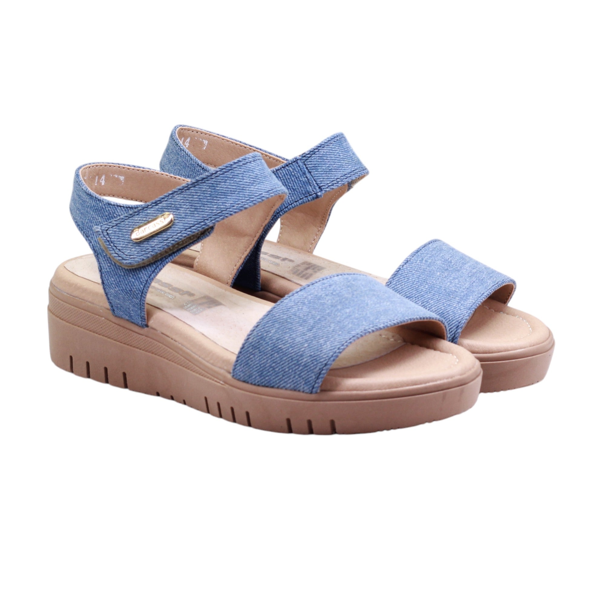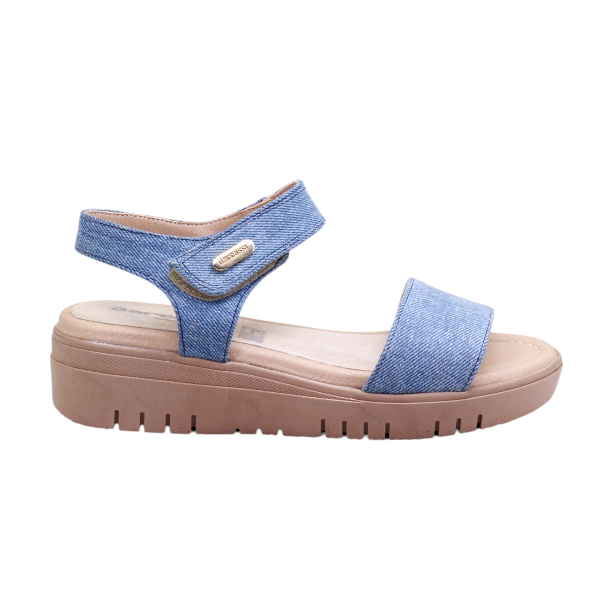Sandalia de plataforma para dama marca Barcassi en color mezclilla, bonito diseño con mezclilla, este modelo te dará la comodidad que necesitas. Cuenta con tira ajustable en velcro y plantilla cómoda más una plataforma de 3.5 centímetros. Es un diseño que no puede faltar en tu guardarropa esta temporada.