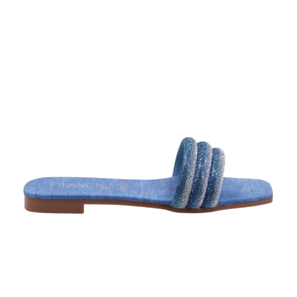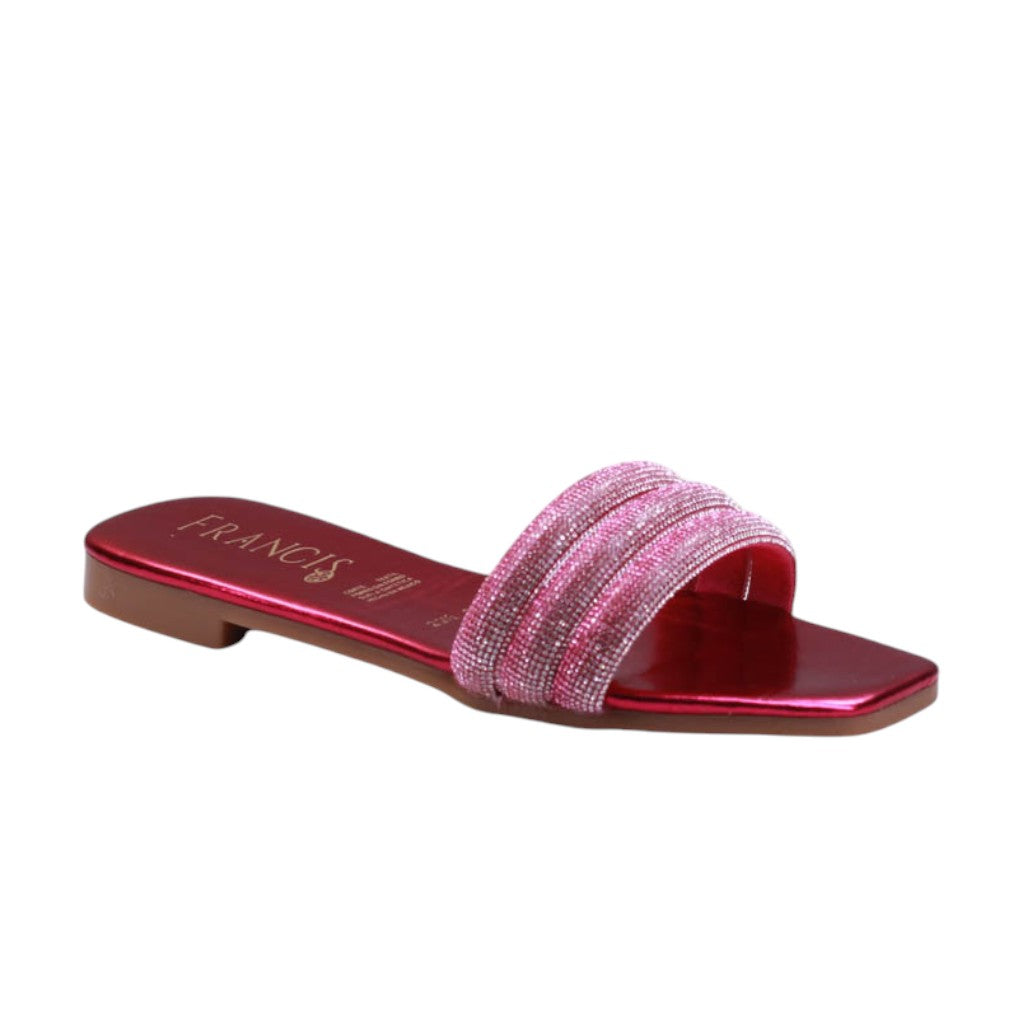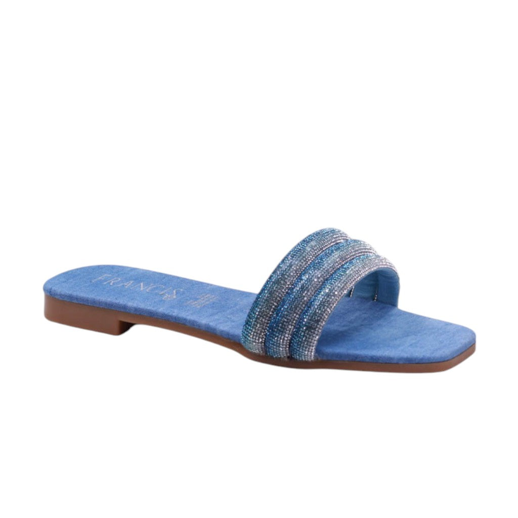Sandalia para dama marca Francis en colores azul y rosa. Este modelo cuenta con corte cubierto en pedrería, es una sandalia clásica, lo cual hace que no pase de moda, su tacón de 1.00 cm es adecuado para el uso diario. Perfectas para casa o playa. Modelo que no puede faltar en tu guardarropa.