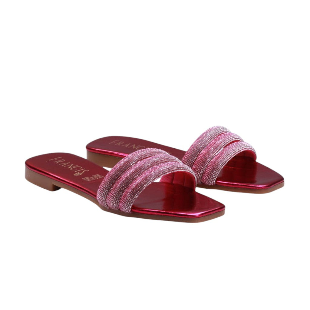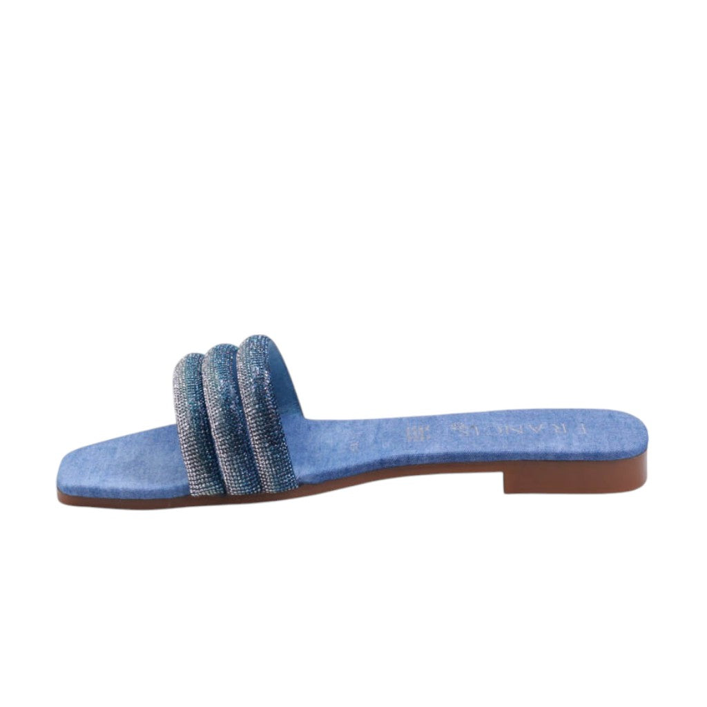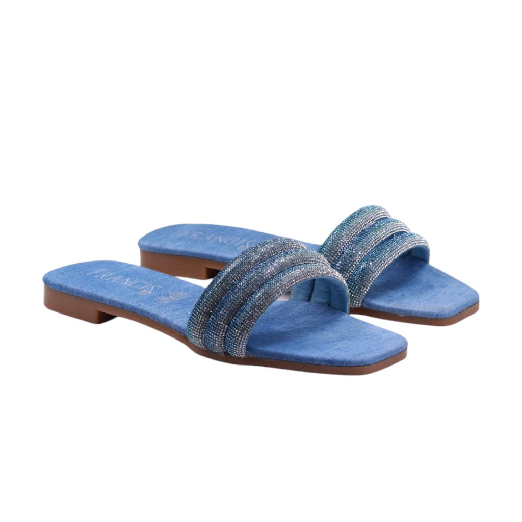 Sandalia para dama marca Francis en colores azul y rosa. Este modelo cuenta con corte cubierto en pedrería, es una sandalia clásica, lo cual hace que no pase de moda, su tacón de 1.00 cm es adecuado para el uso diario. Perfectas para casa o playa. Modelo que no puede faltar en tu guardarropa.