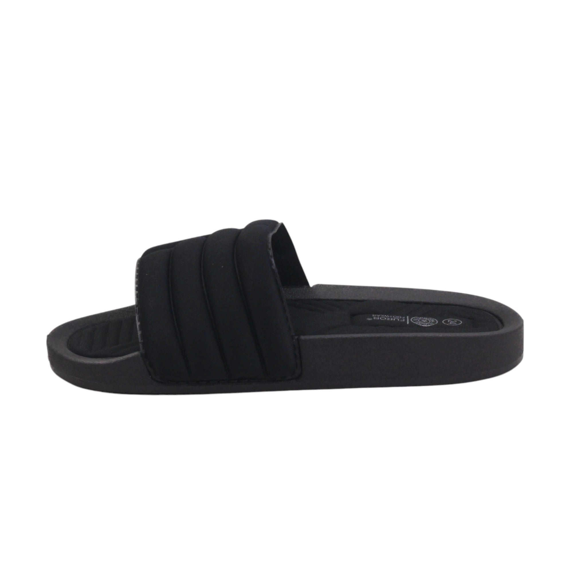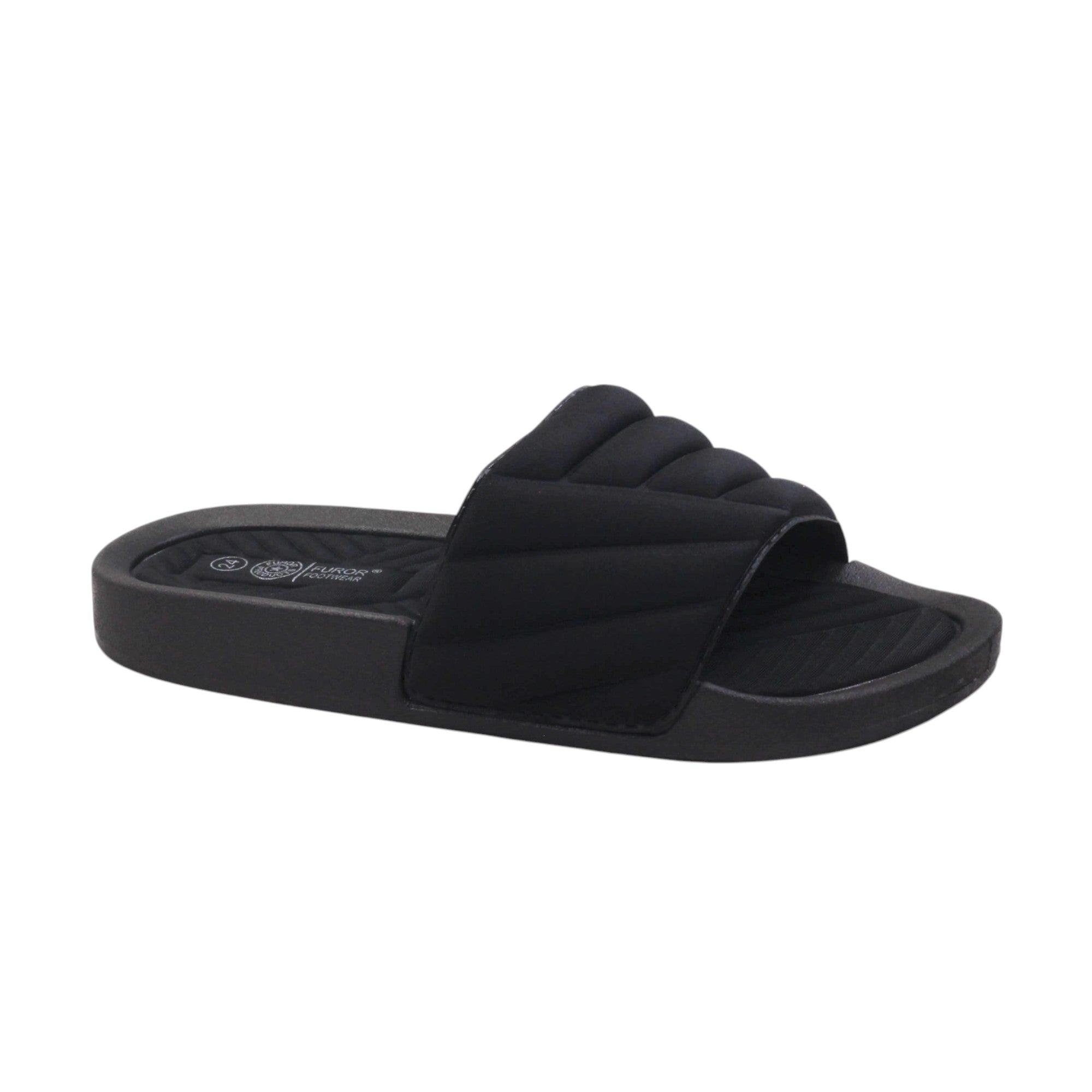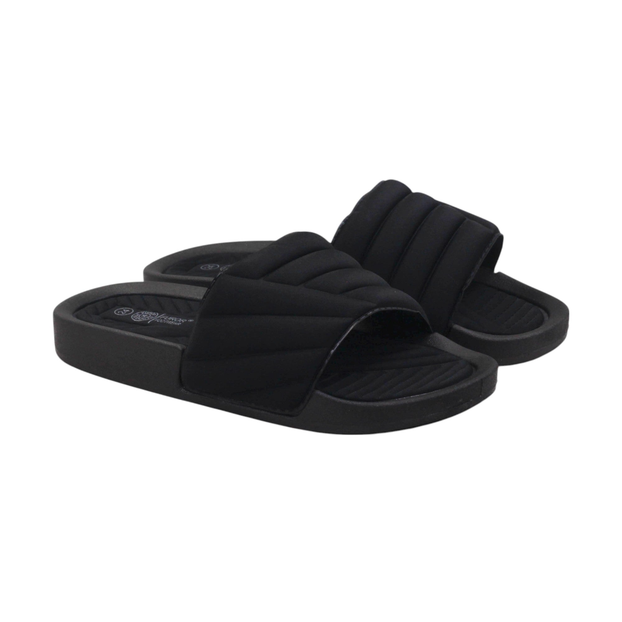 Sandalia para dama marca Furor en color negro. Novedosos diseños super ligeros y cómodos, los puedes usar tanto en agua o en casa, su plataforma de 4.5 cm te dará el equilibrio y la altura perfecta.Son geniales para tu día de descanso.