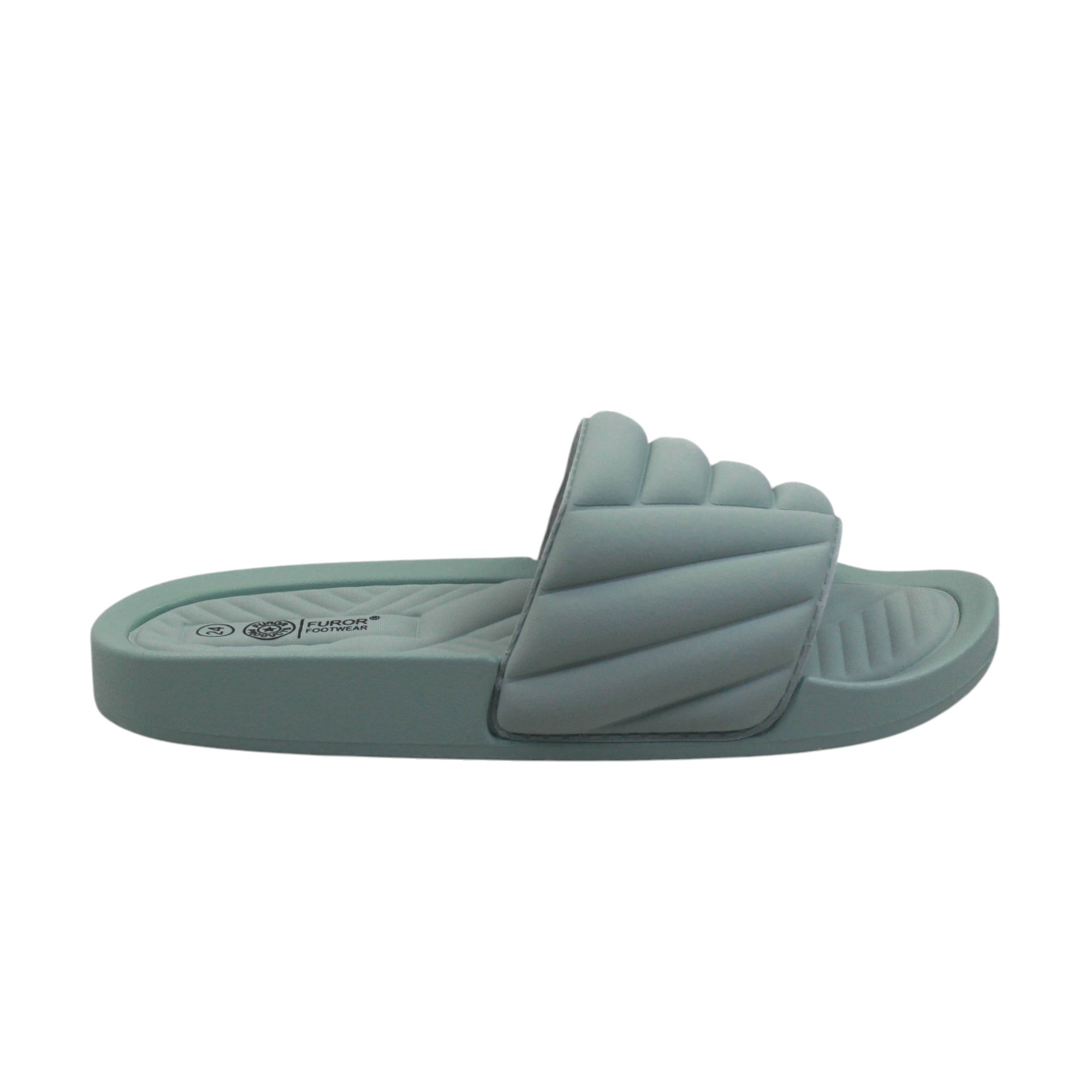 Sandalia para dama marca Furor en color menta. Novedosos diseños super ligeros y cómodos, los puedes usar tanto en agua o en casa, su plataforma de 4.5 cm te dará el equilibrio y la altura perfecta.Son geniales para tu día de descanso.