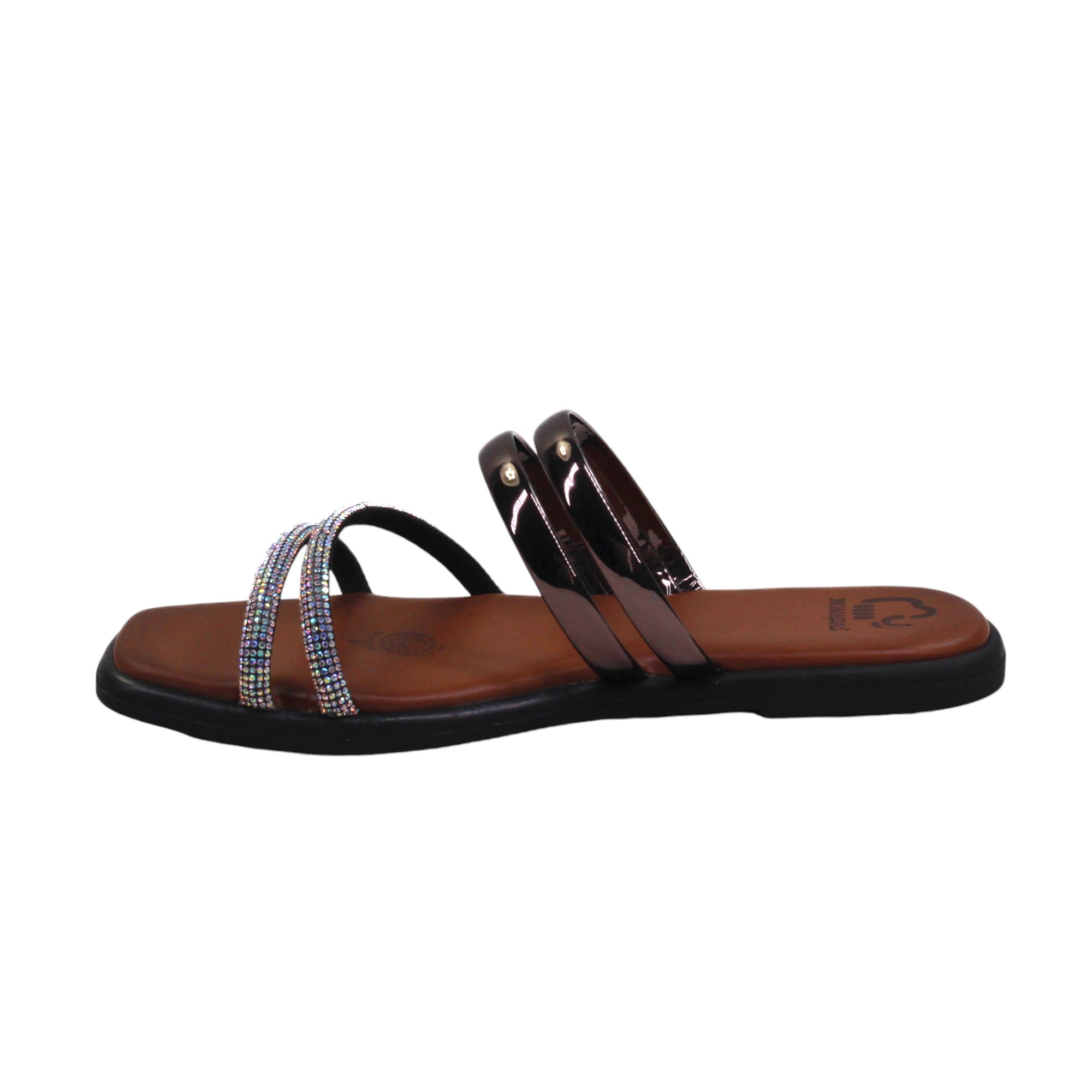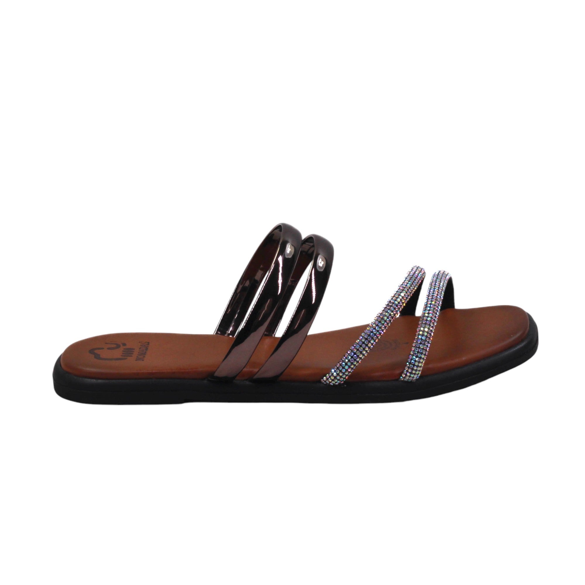 Sandalia para dama con doble tira cubierta en piedras