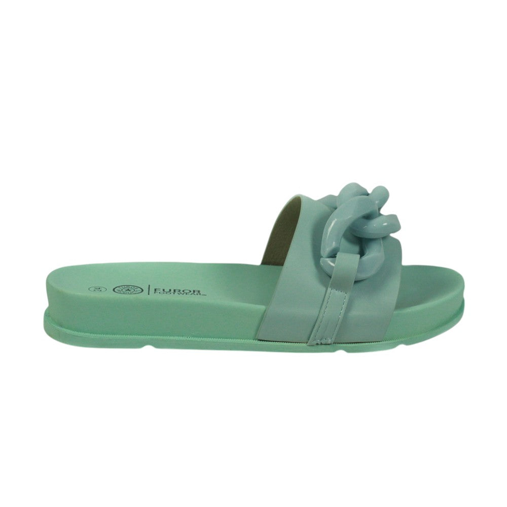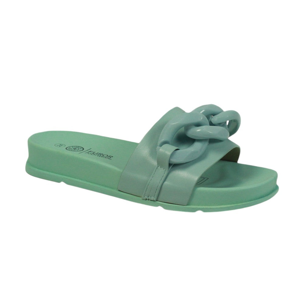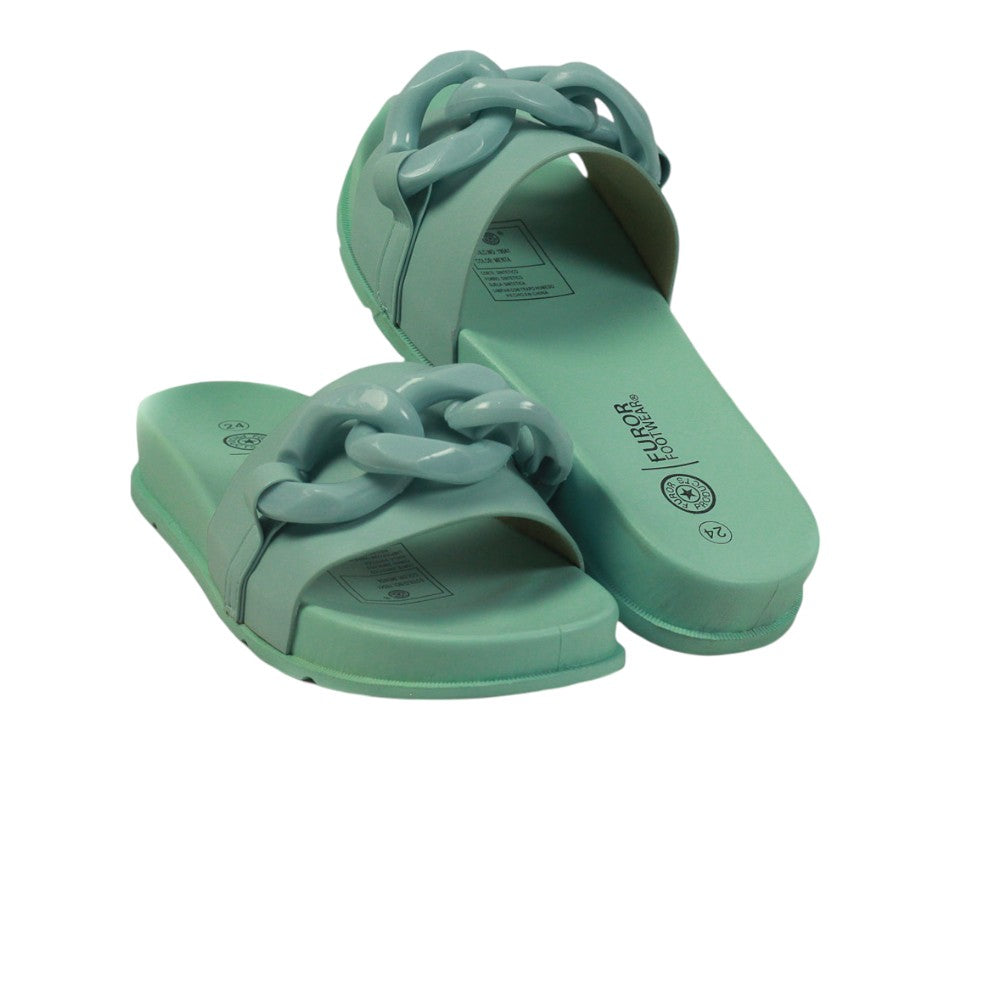 Sandalia para dama marca Furor en color menta. Súper cómoda gracias a su diseño, El detalle de eslabones harán que te veas increíble sin sacrificar tu comodidad y estarás en tendencia esta temporada. Es una sandalia ligera, lo cual brinda bastante comodidad.