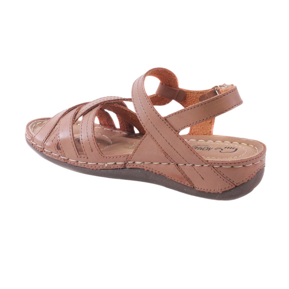 Sandalia para dama marca Nomadas en colores adobe y negro. Bonito diseño con tira ajustable, cuenta con plantilla acojinada y ergonómica.