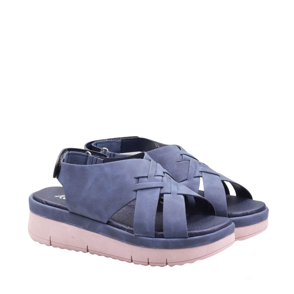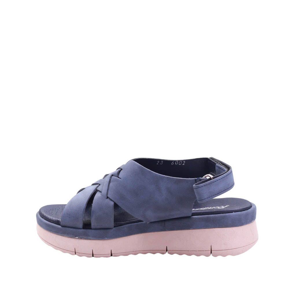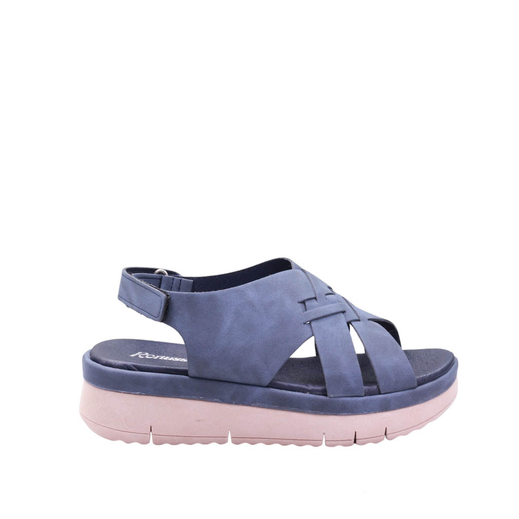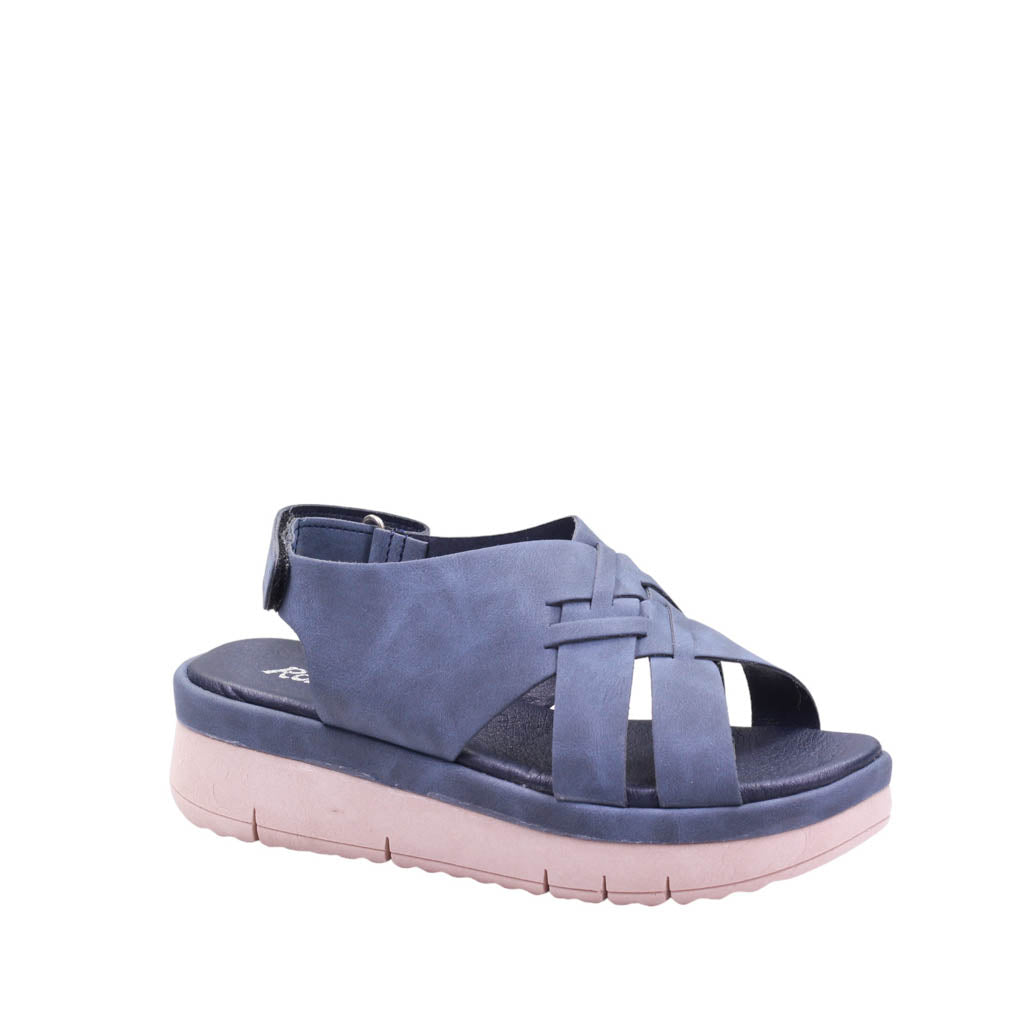 Sandalia para dama marca Ronassi. Descubre la combinación perfecta de estilo y comodidad con nuestra sandalia en clásicos colores Azul. Tira trasera ajustable con velcro, brinda un ajuste personalizado y seguro, mientras que la plantilla de confort garantiza una pisada suave y acolchada.