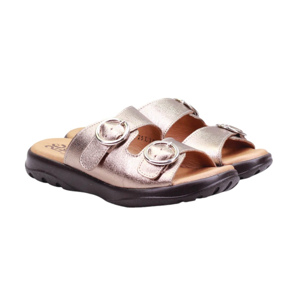 Sandalia para dama de confort con doble tira ajustable con hebilla