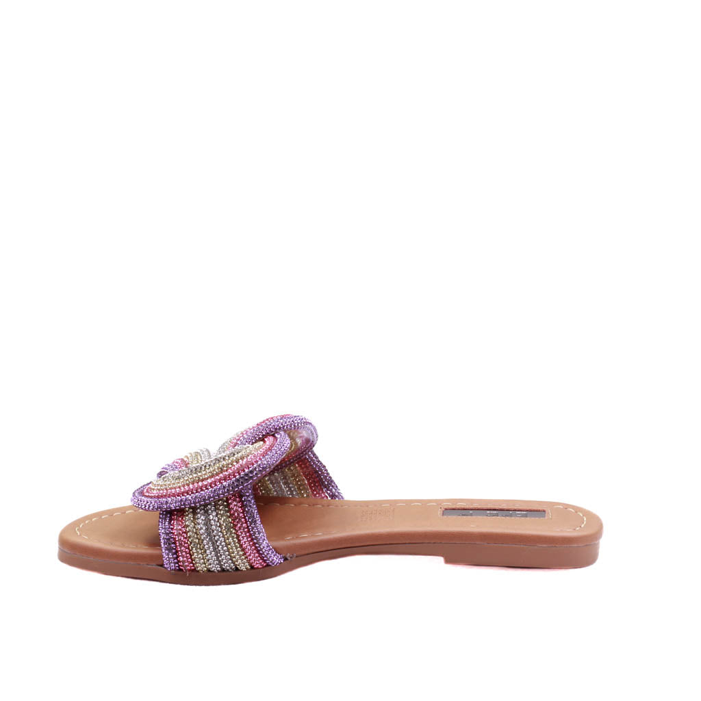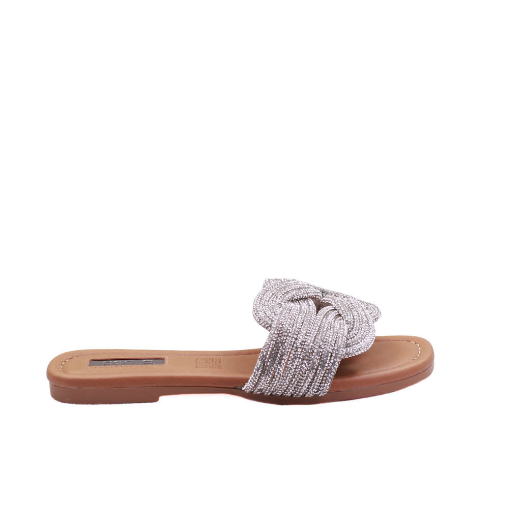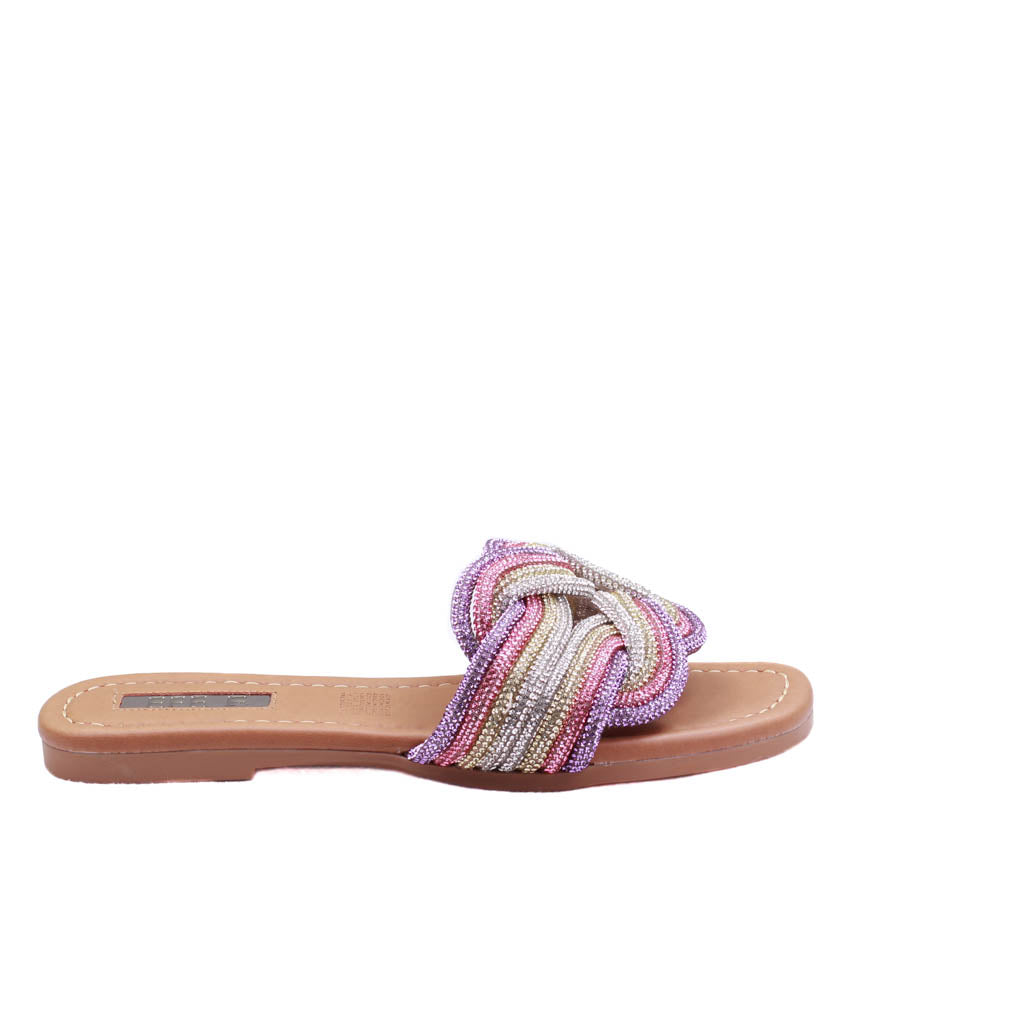 Sandalia para dama marca Efe en colores cristal y multicolor. Bonito diseño de corte único cubierto en pedrería, cuenta con plantilla de confort y suela de hule. Es muy ligera para el uso diario y fácil de combinar.