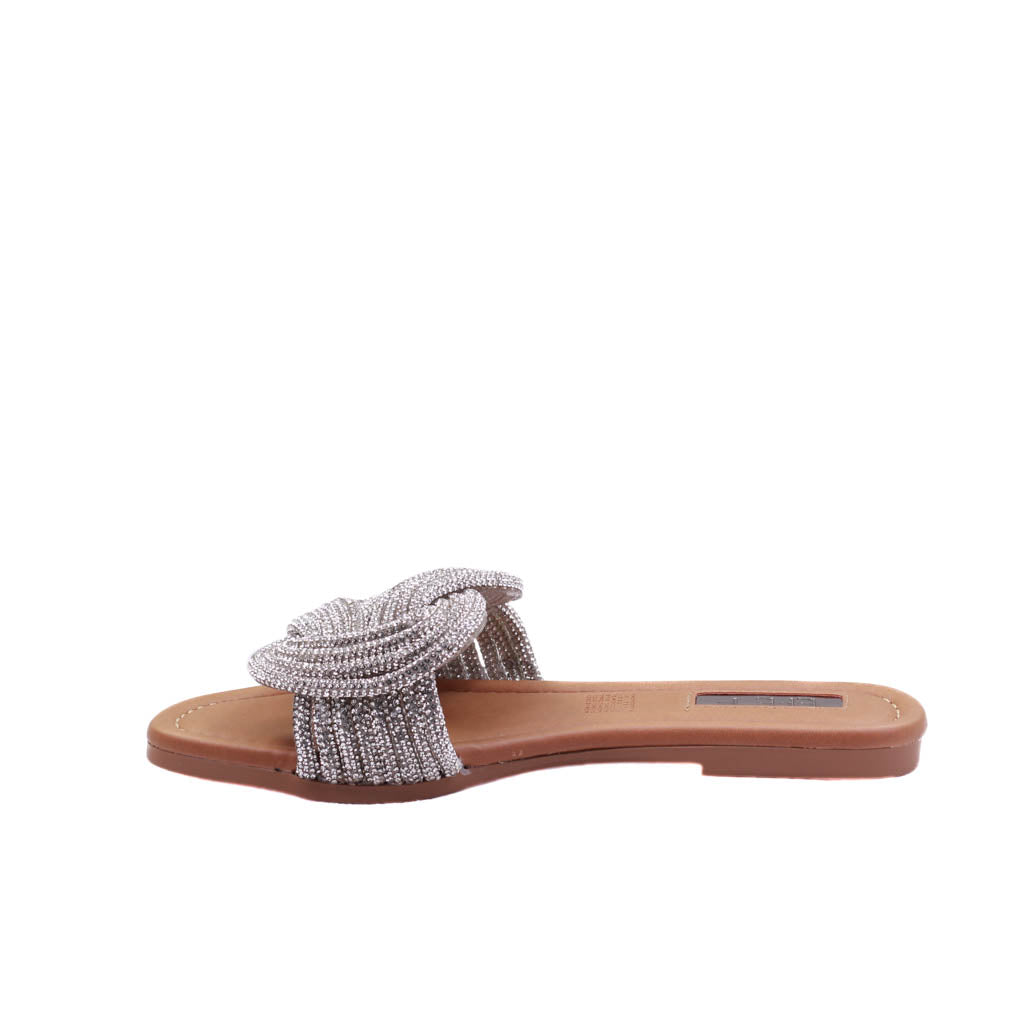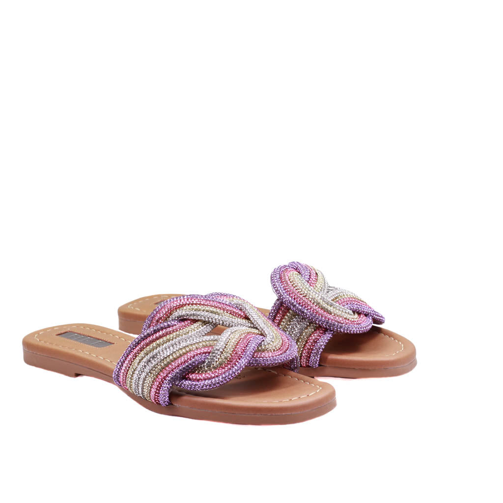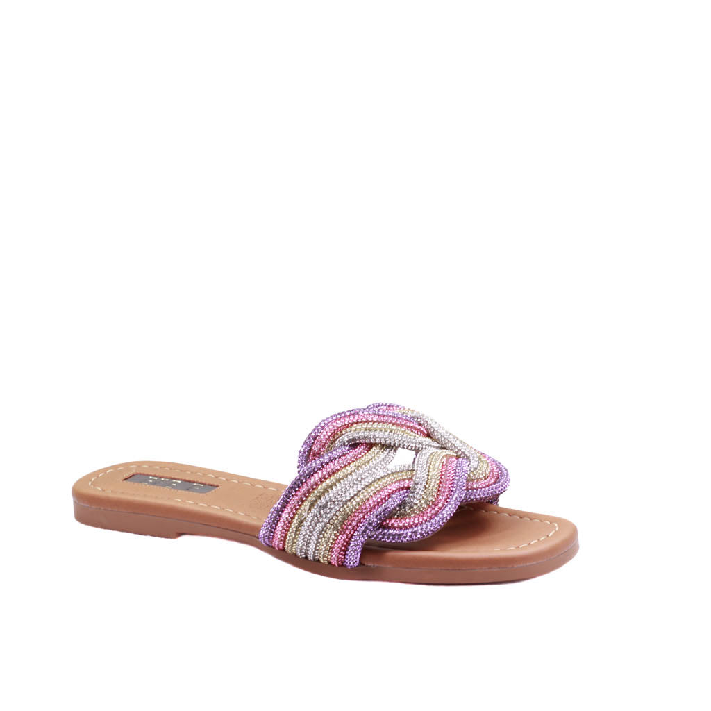 Sandalia para dama marca Efe en colores cristal y multicolor. Bonito diseño de corte único cubierto en pedrería, cuenta con plantilla de confort y suela de hule. Es muy ligera para el uso diario y fácil de combinar.