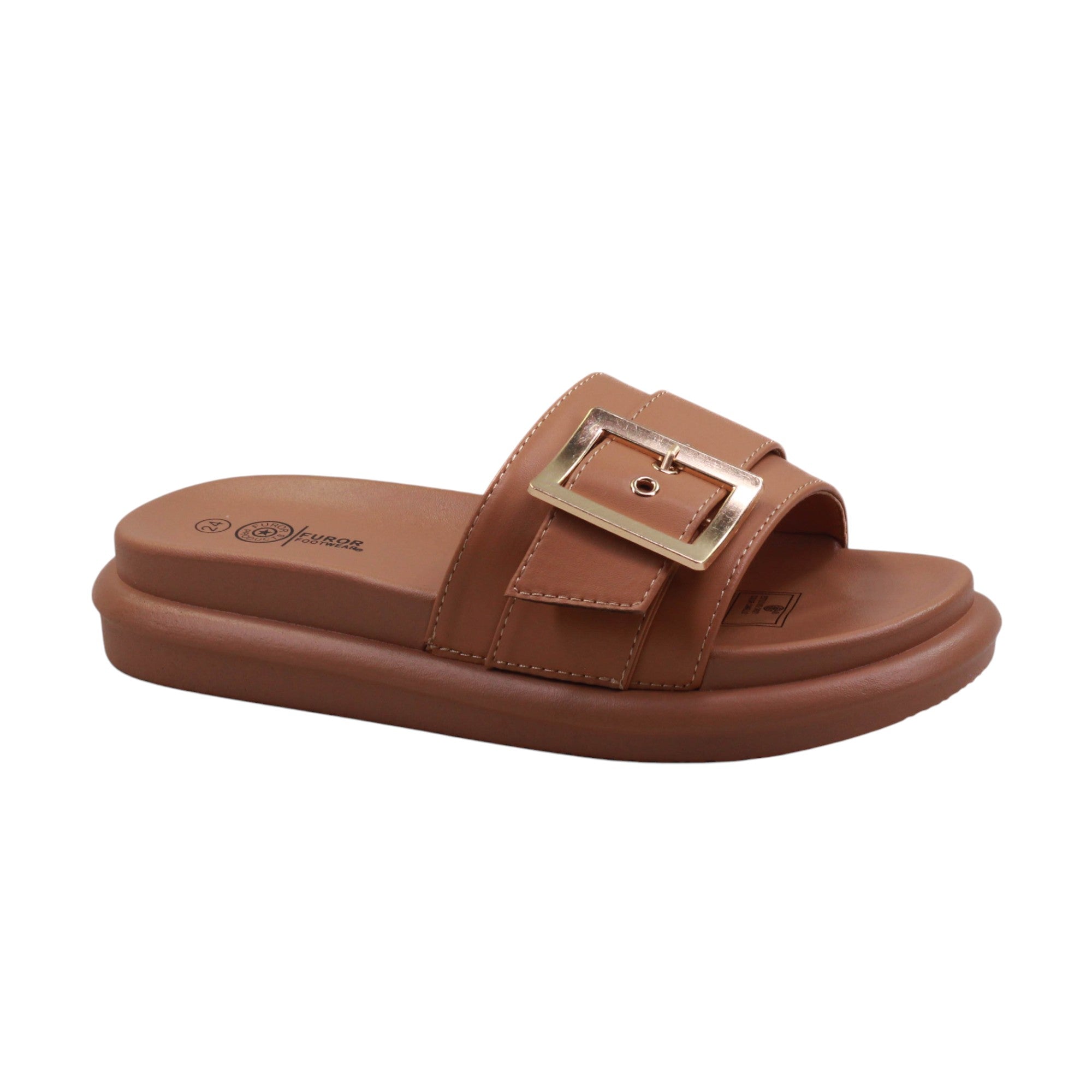 Sandalia para dama marca Furor en color camel. Modelo super cómodo gracias a su diseño, el detalle de hebilla grande harán que te veas increíble sin sacrificar tu comodidad y estarás en tendencia esta temporada. Es una sandalia super ligera, lo cual brinda bastante comodidad.