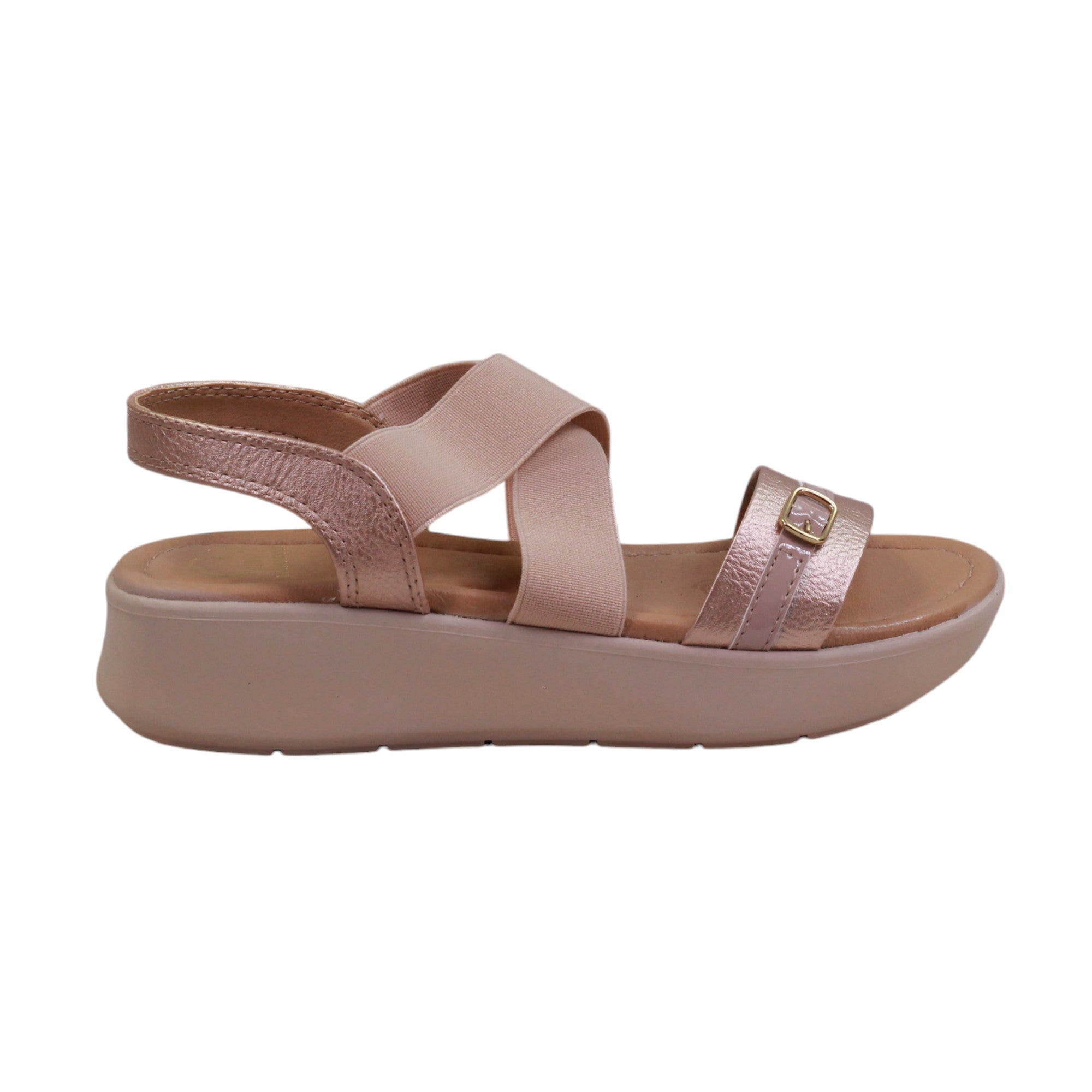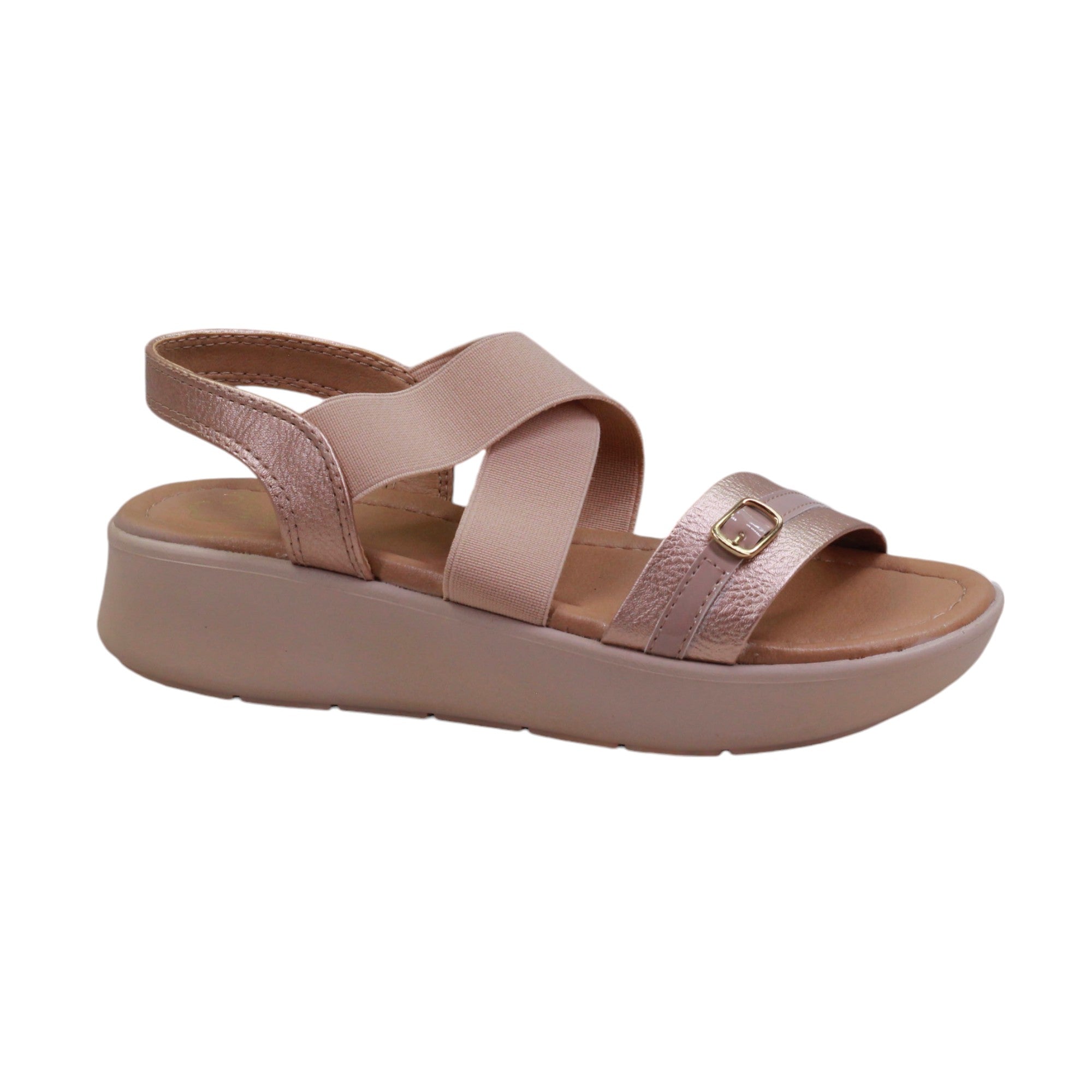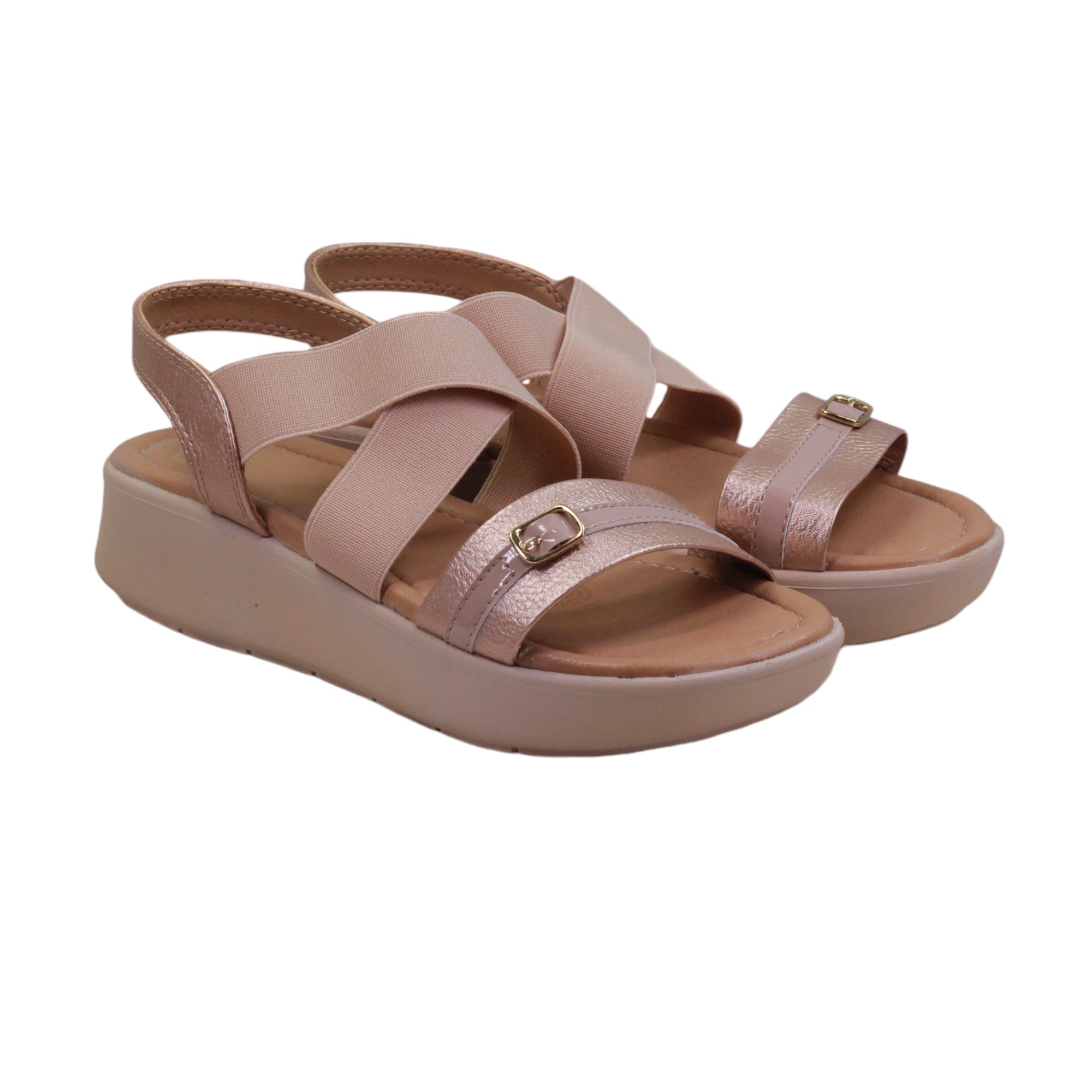 Sandalia para dama de media plataforma con tiras en cruce al tobillo